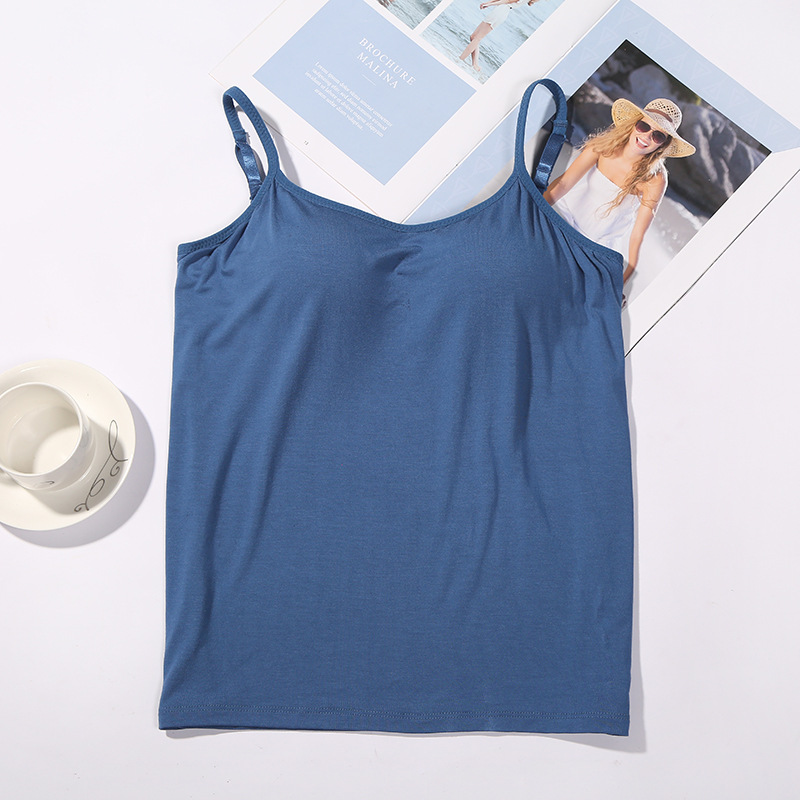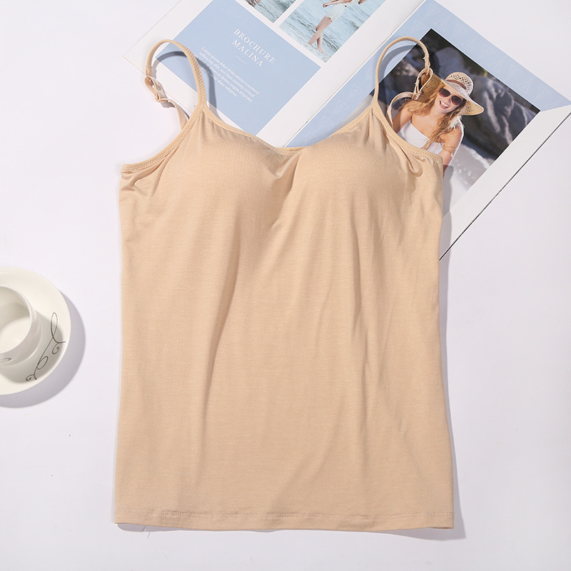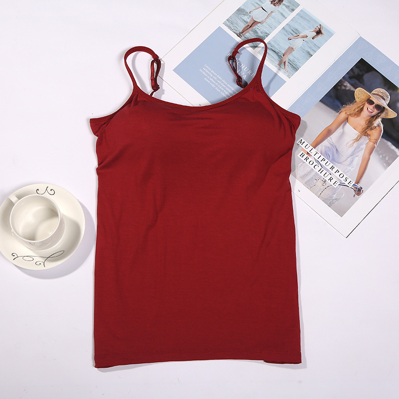 莫代尔带胸垫背心女一体式无钢圈吊带背心抹胸防走光可调节肩带