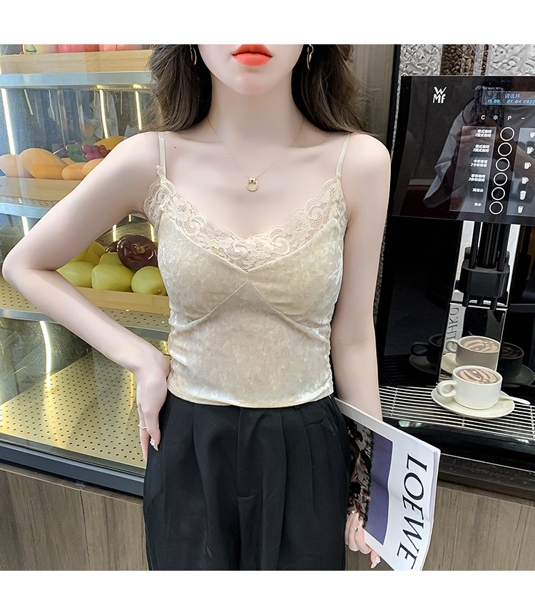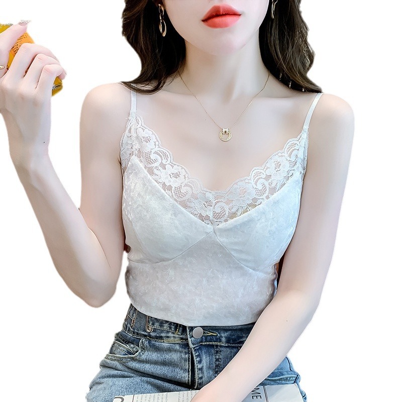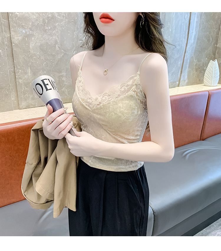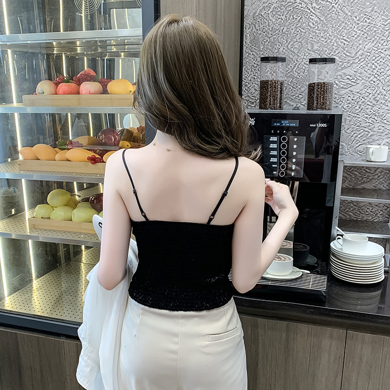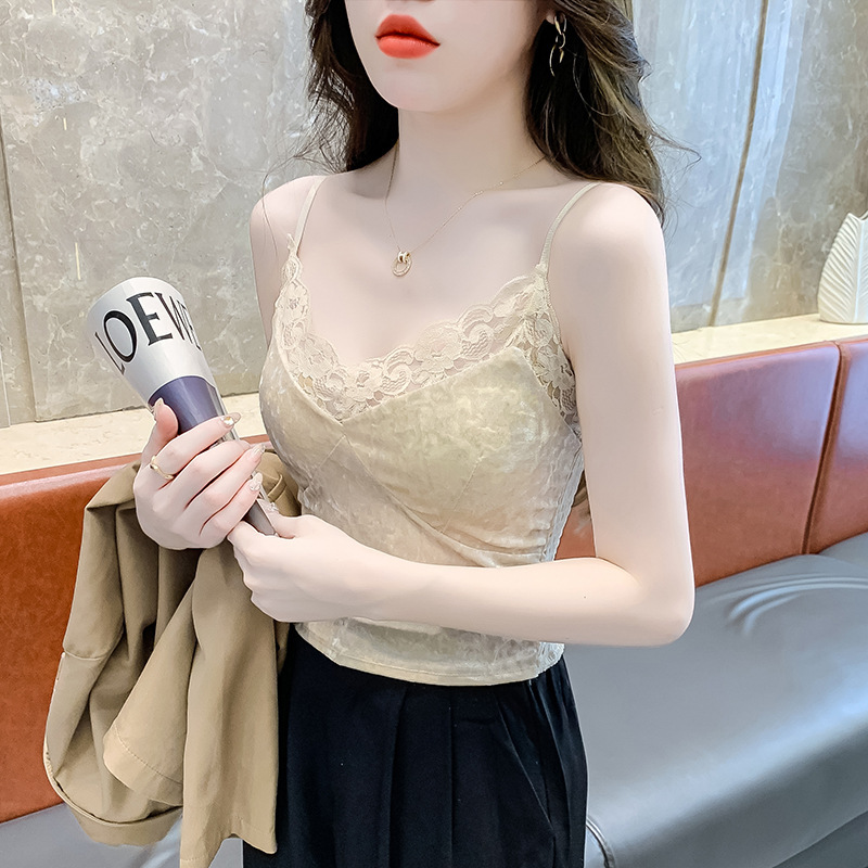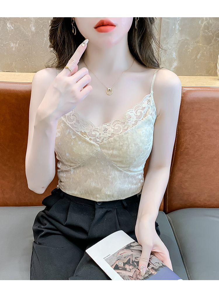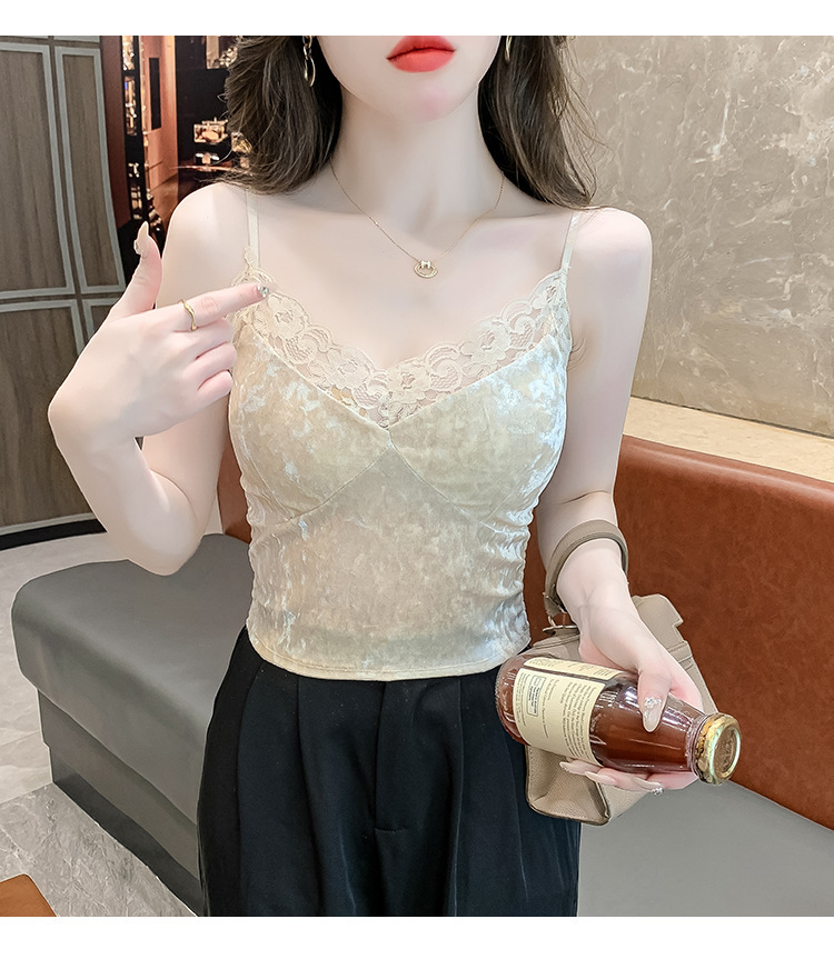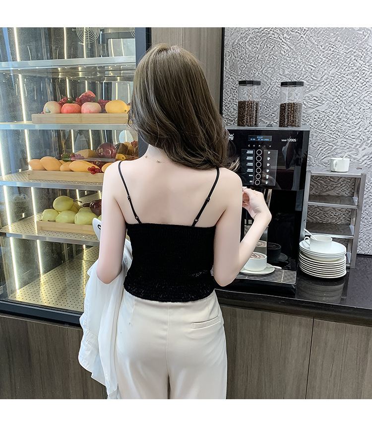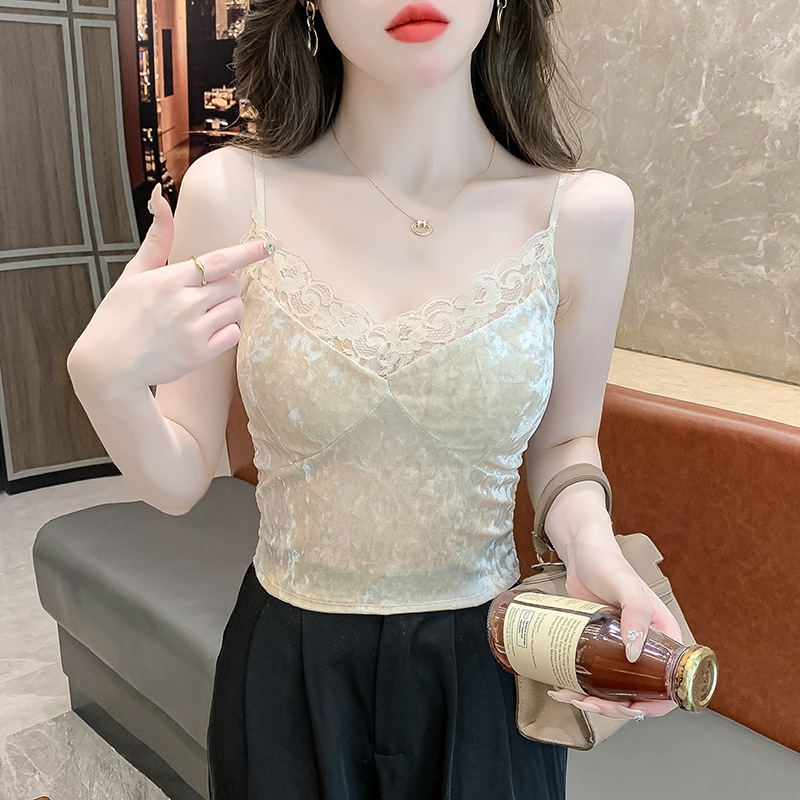 2023法式性感金丝绒吊带背心秋冬内搭打底美背带胸垫一体裹胸抹胸