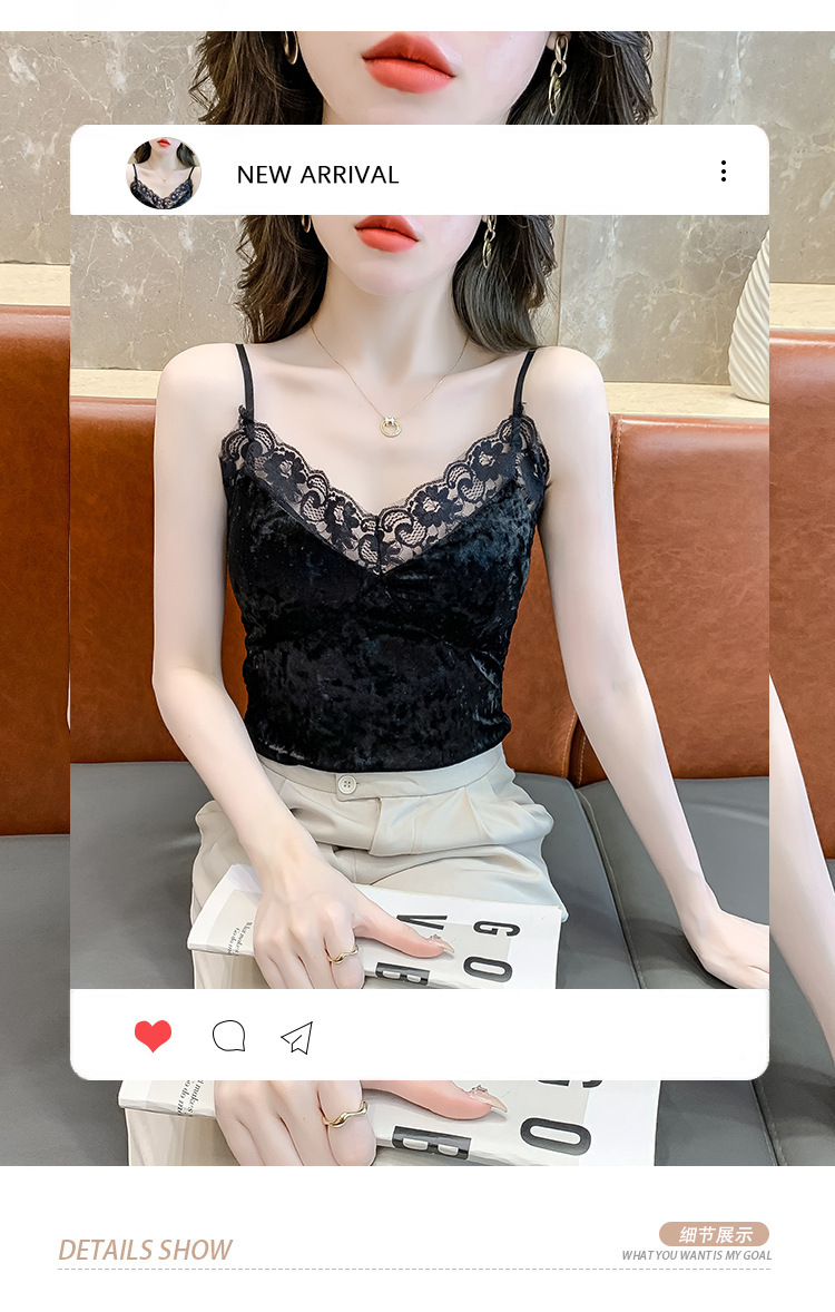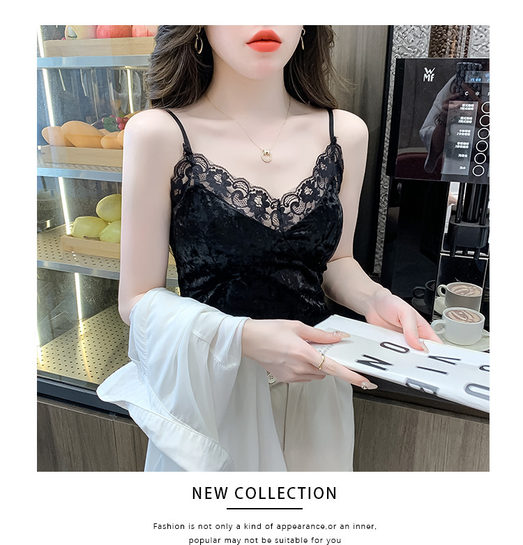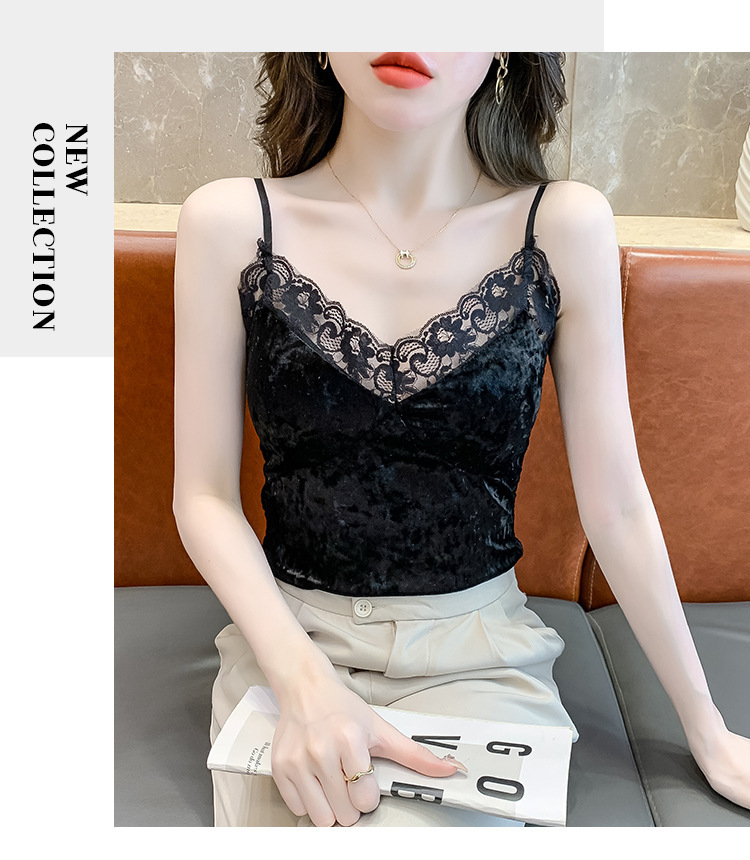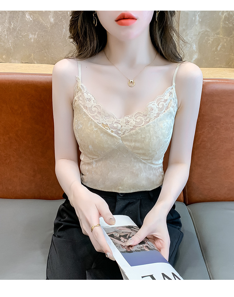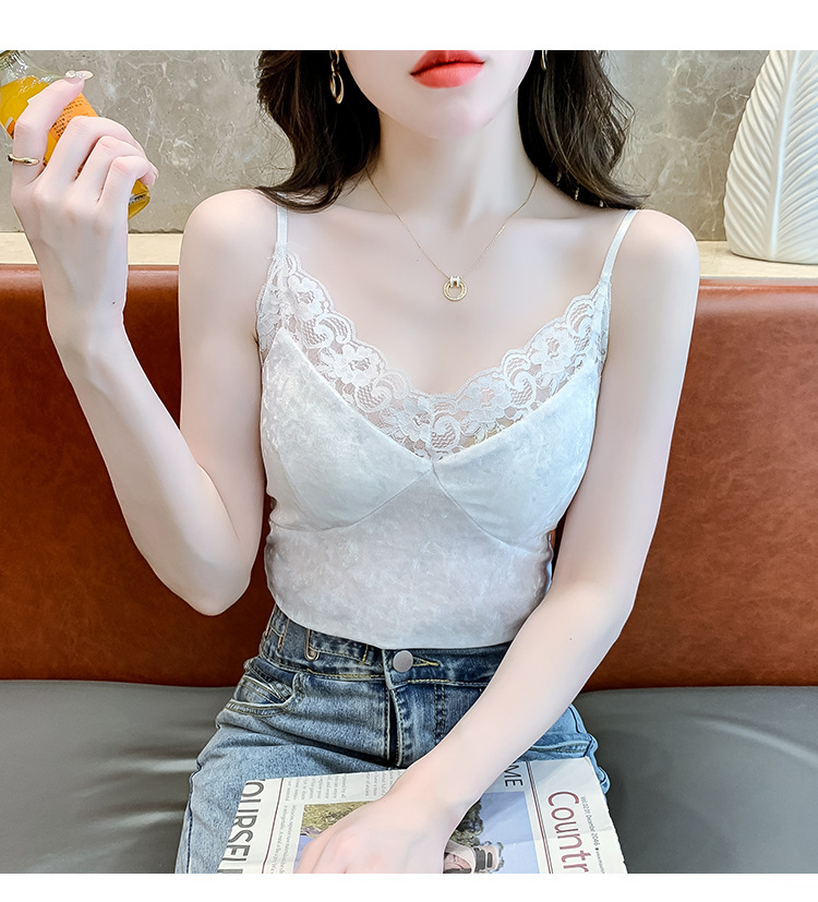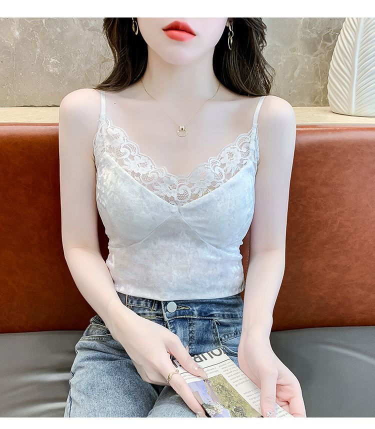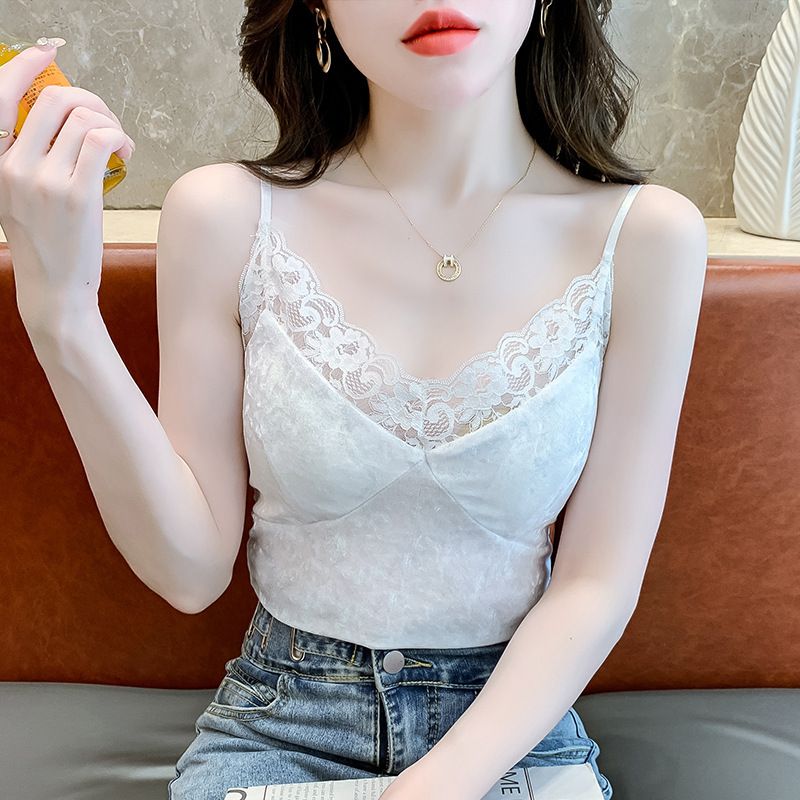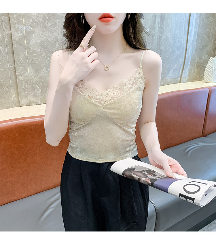 2023法式性感金丝绒吊带背心秋冬内搭打底美背带胸垫一体裹胸抹胸