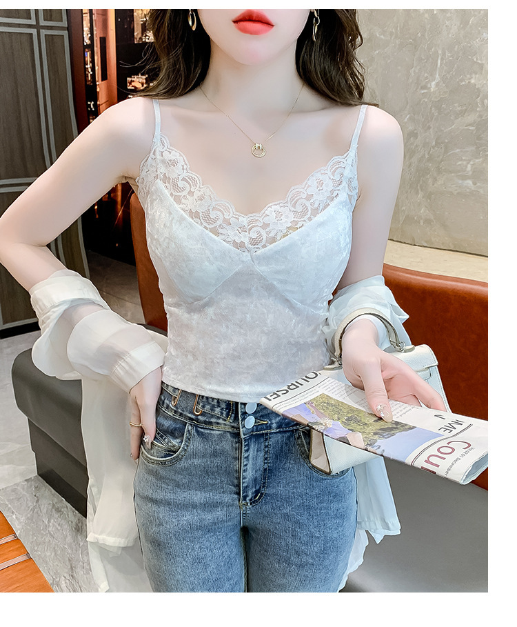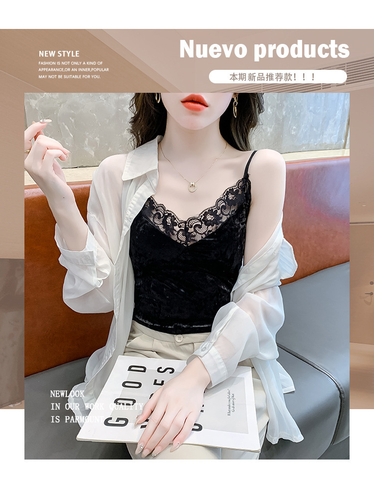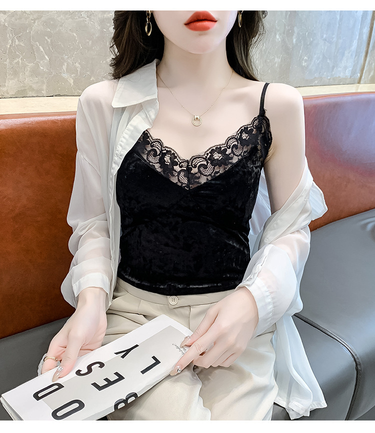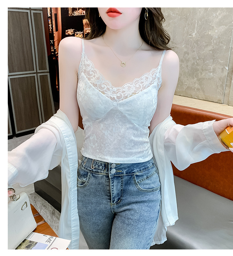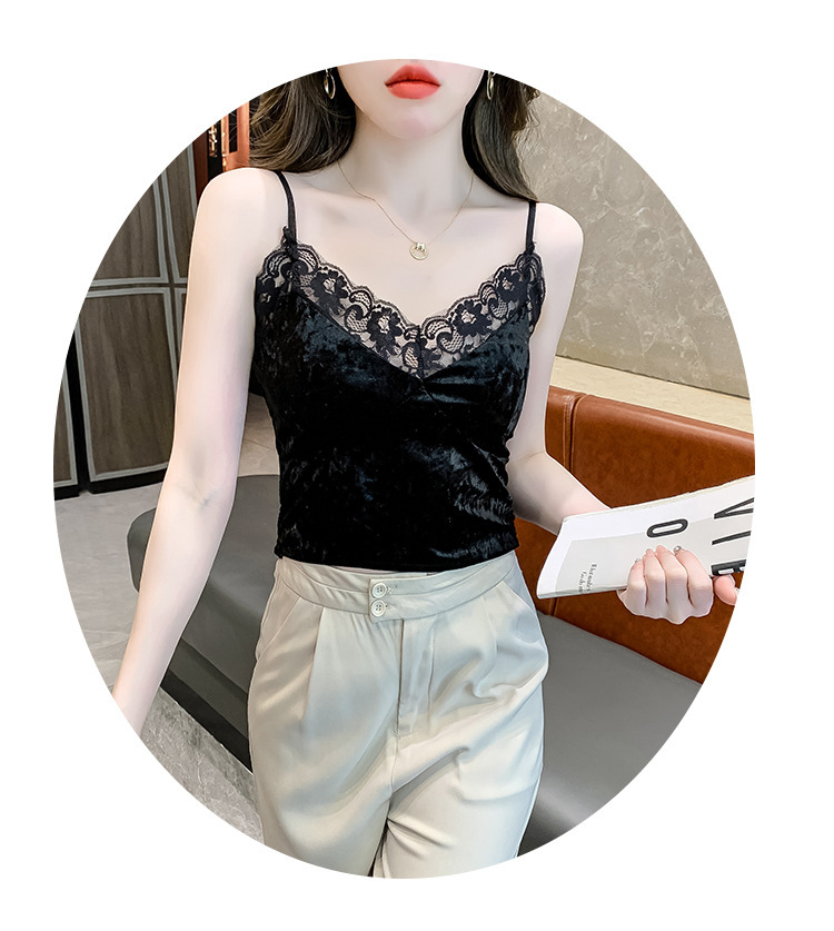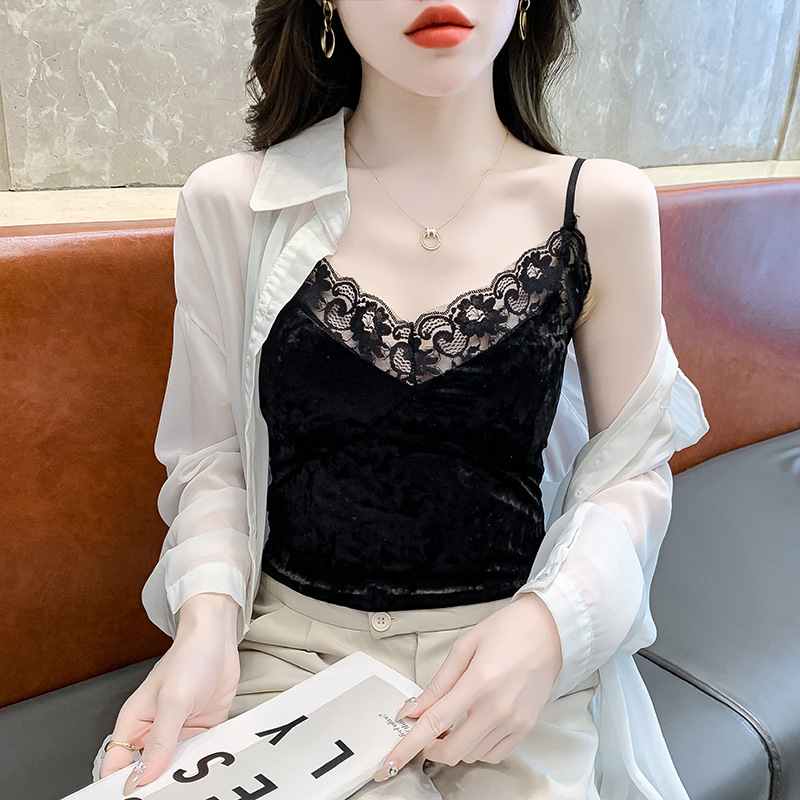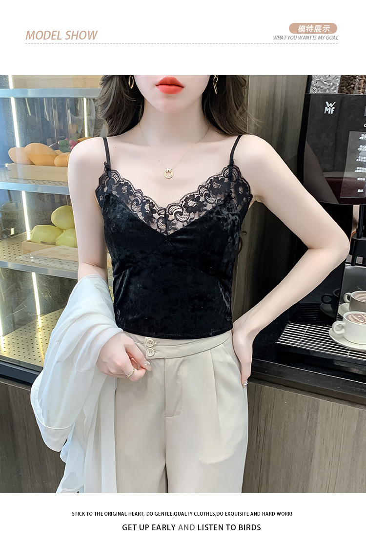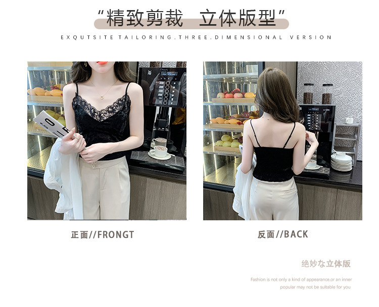 2023法式性感金丝绒吊带背心秋冬内搭打底美背带胸垫一体裹胸抹胸