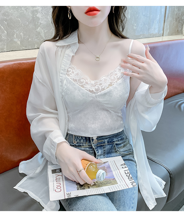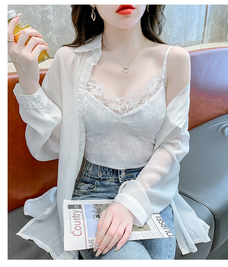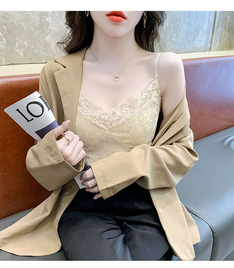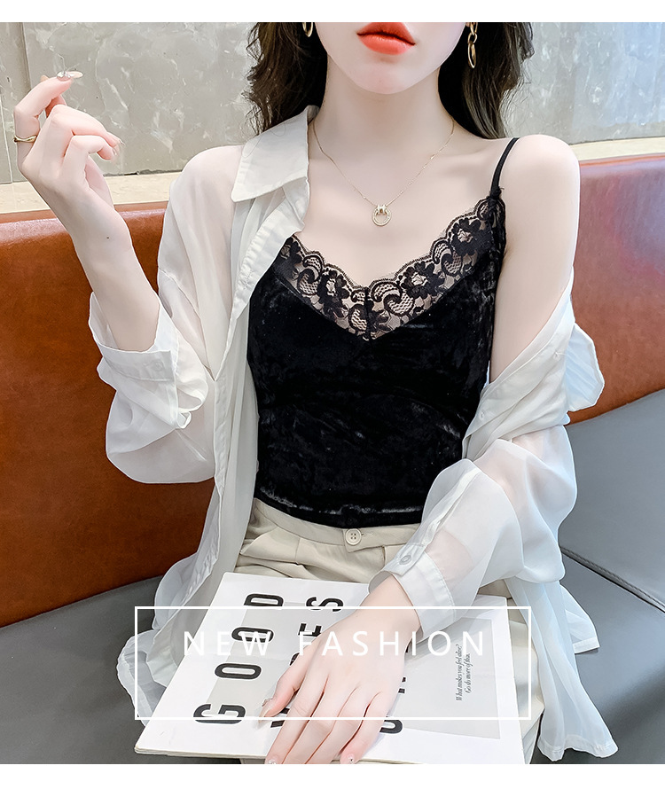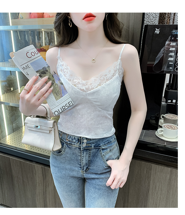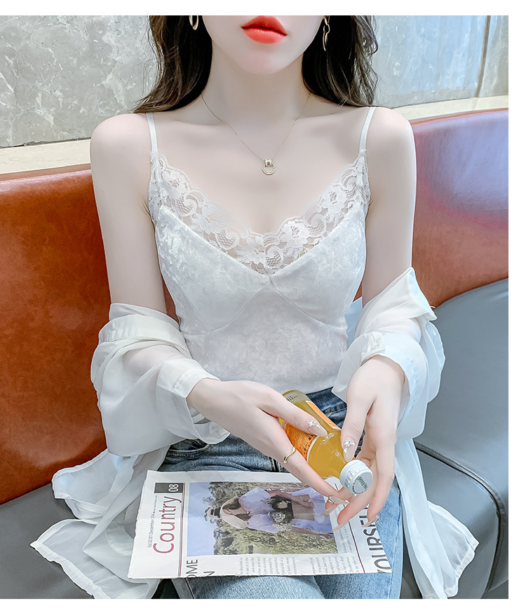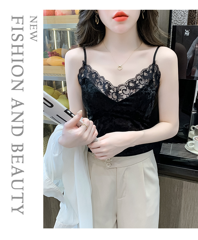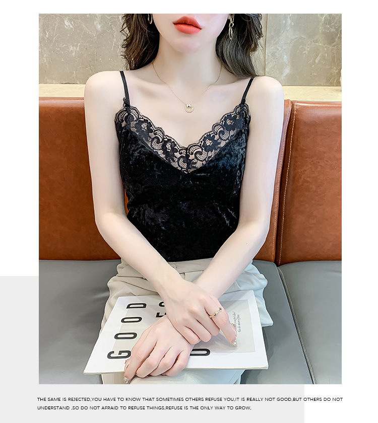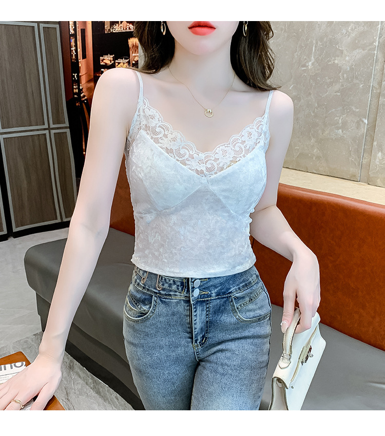 2023法式性感金丝绒吊带背心秋冬内搭打底美背带胸垫一体裹胸抹胸