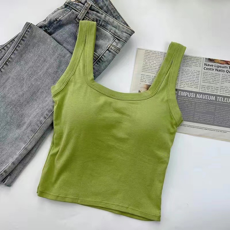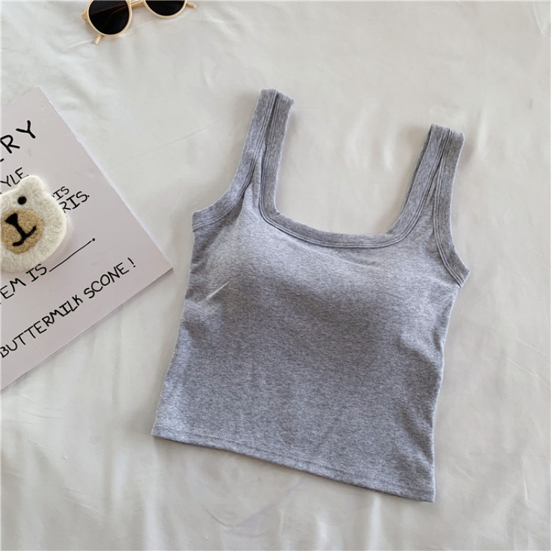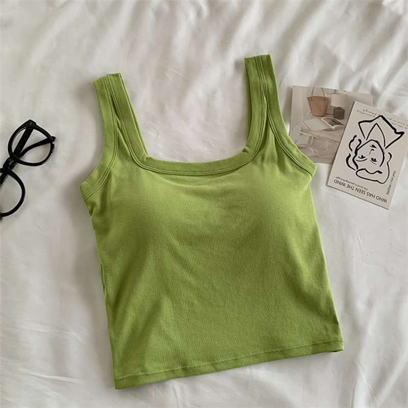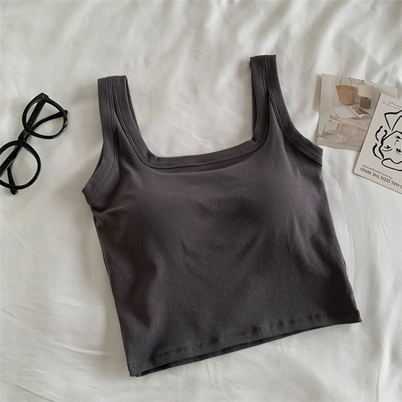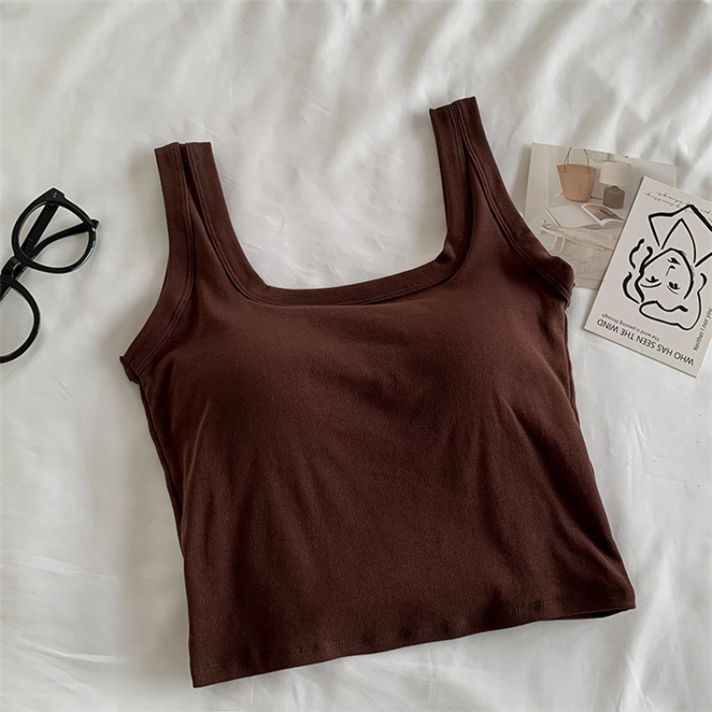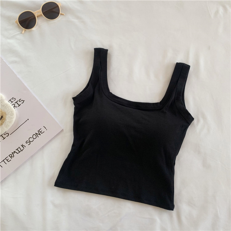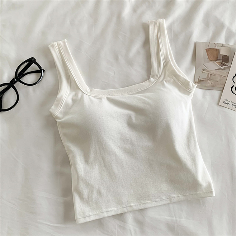 带胸垫方领性感美背大U露背吊带背心女外穿固定杯一体式内搭裹胸