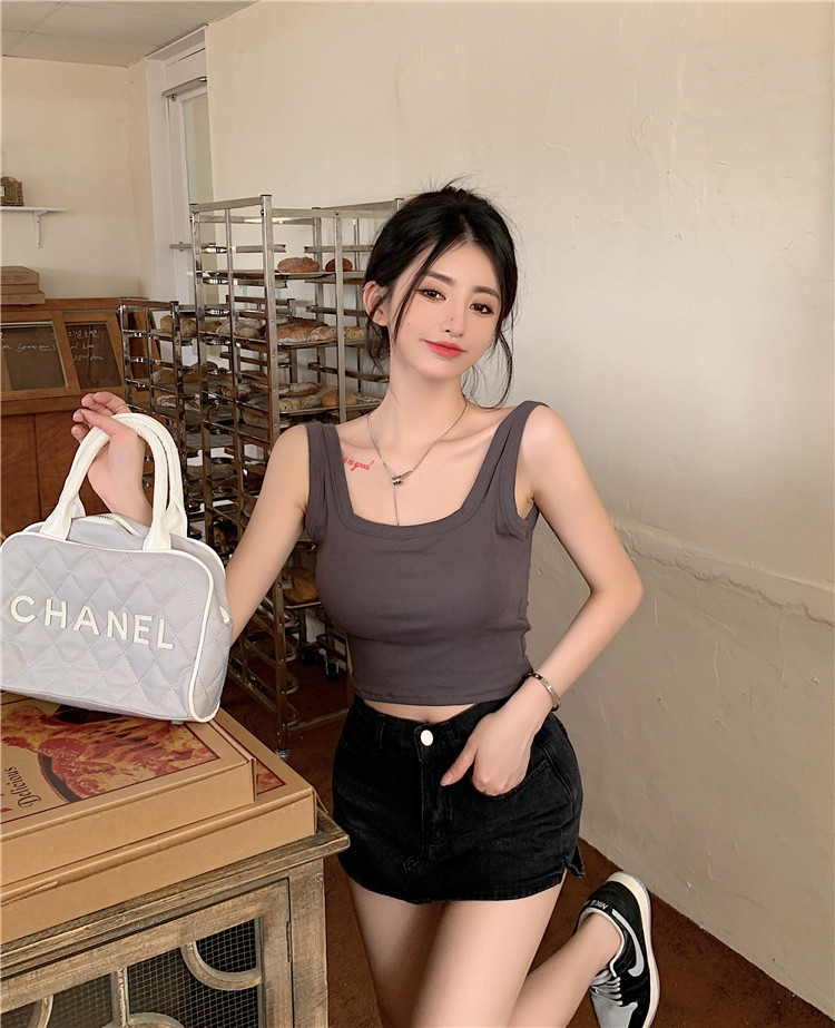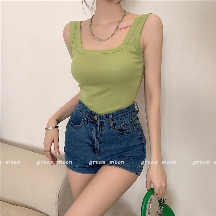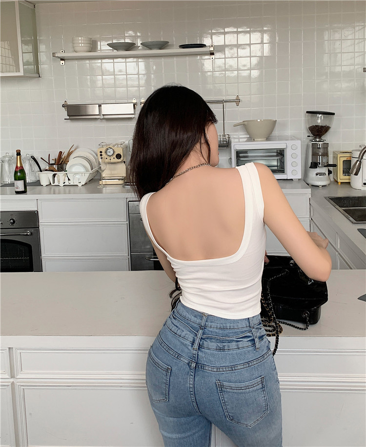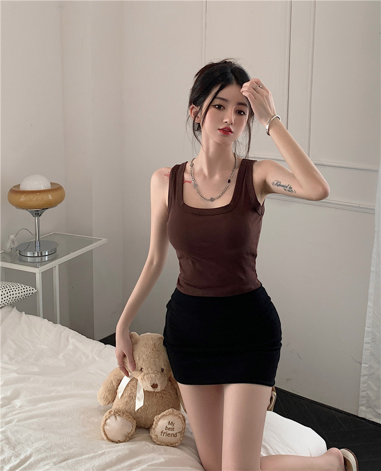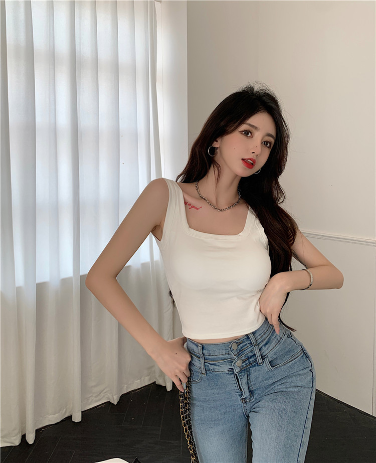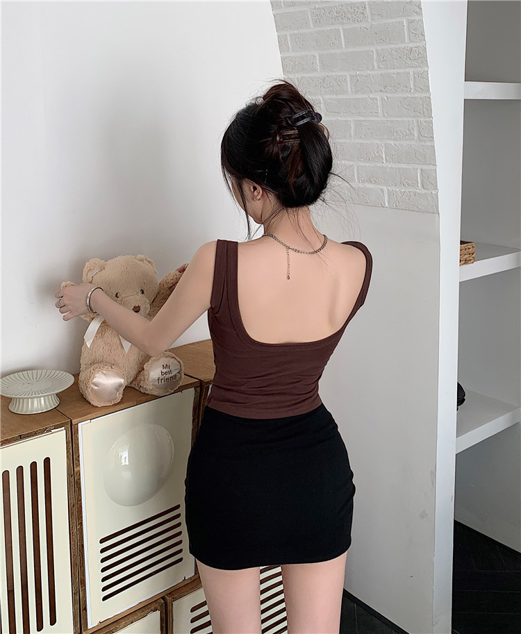 带胸垫方领性感美背大U露背吊带背心女外穿固定杯一体式内搭裹胸