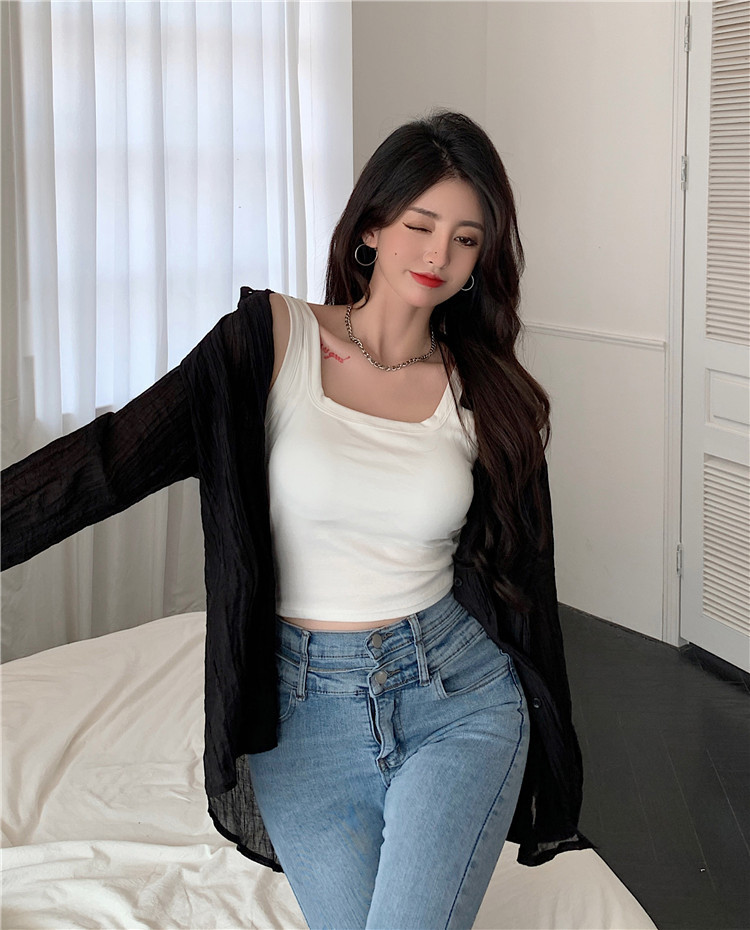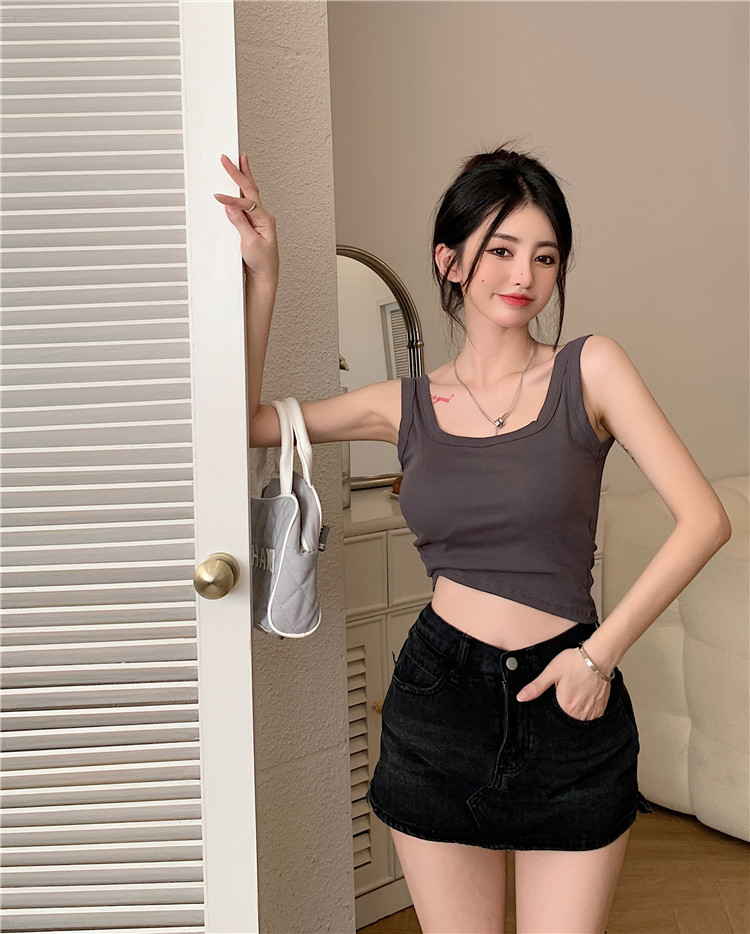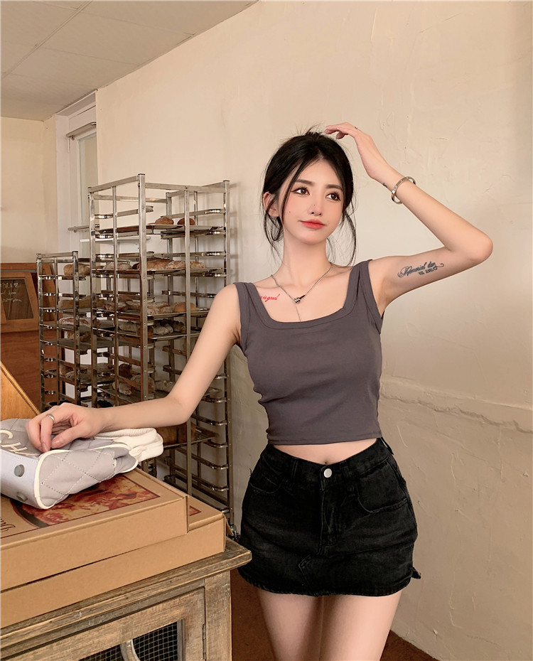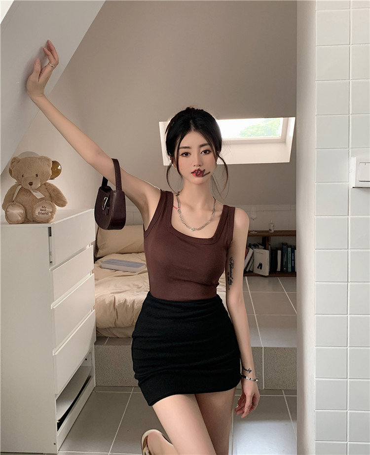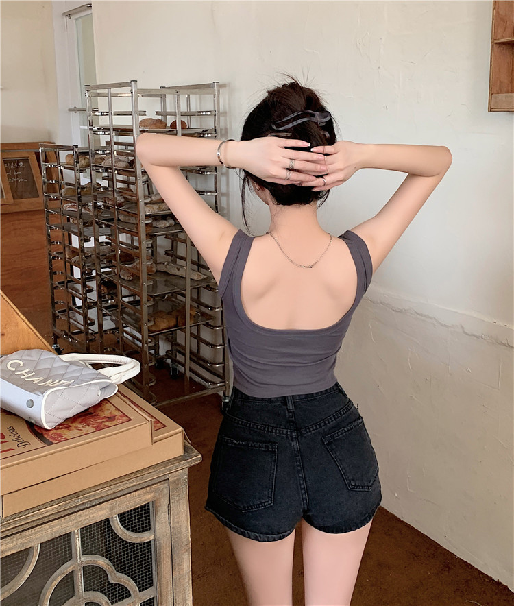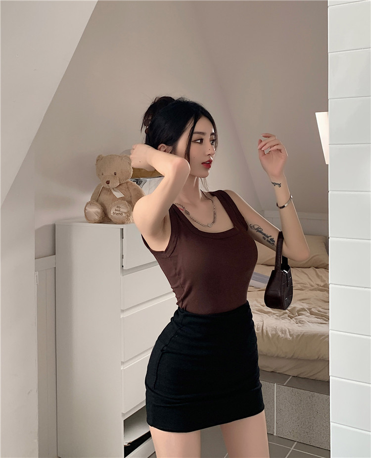 带胸垫方领性感美背大U露背吊带背心女外穿固定杯一体式内搭裹胸