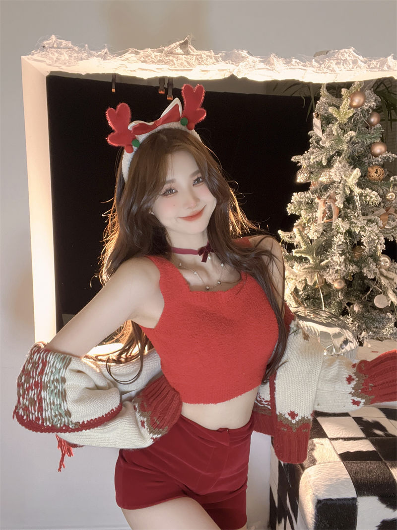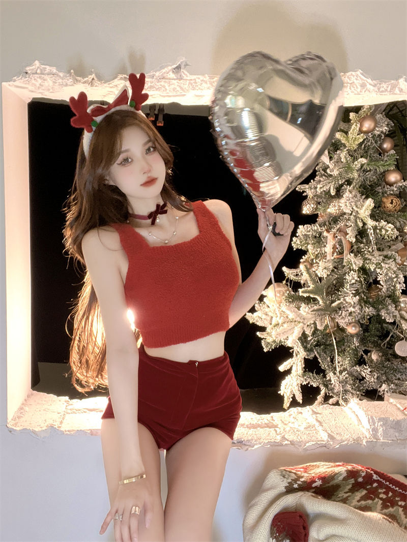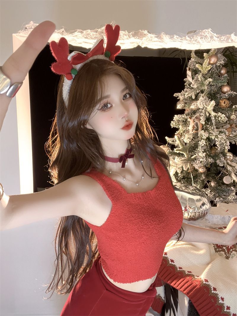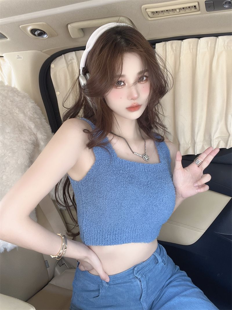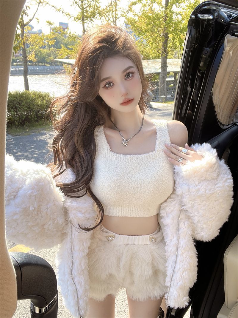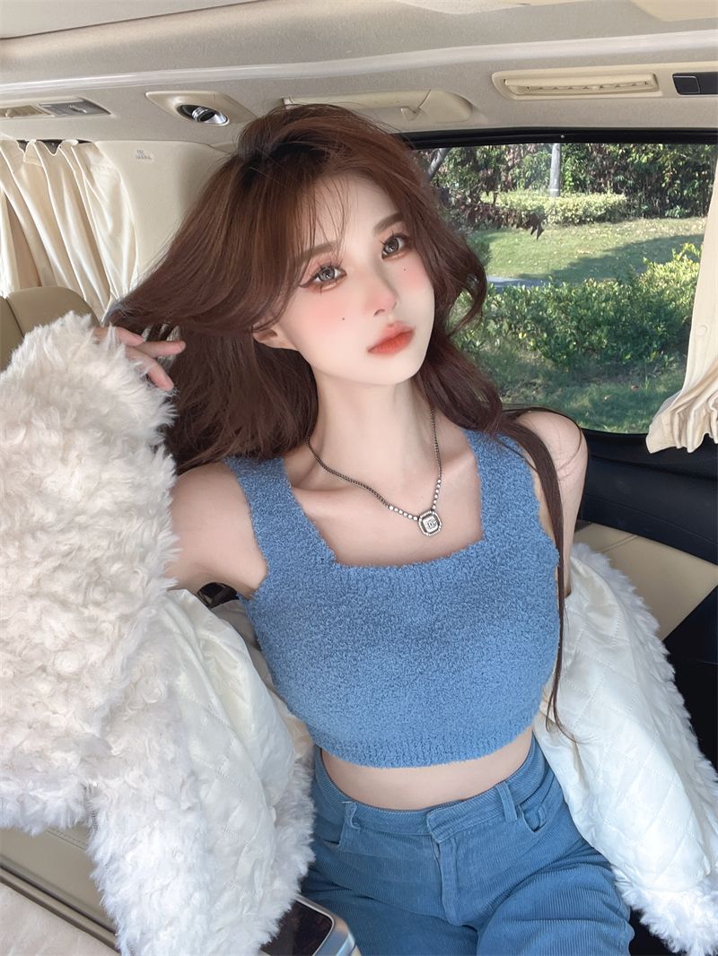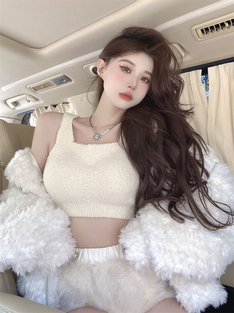 保暖毛绒吊带背心外穿女2023秋冬新款带胸垫加厚短款羊羔绒上衣潮