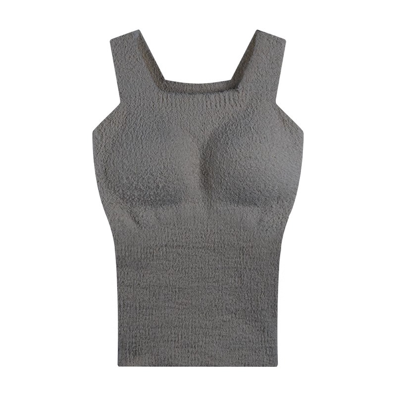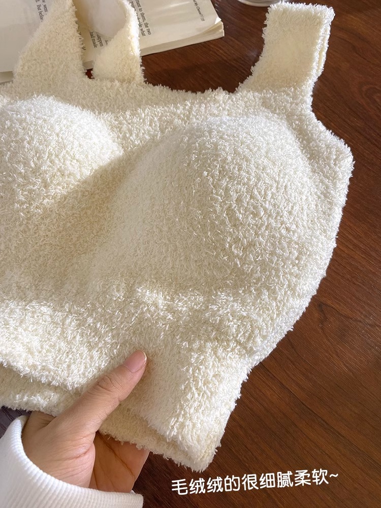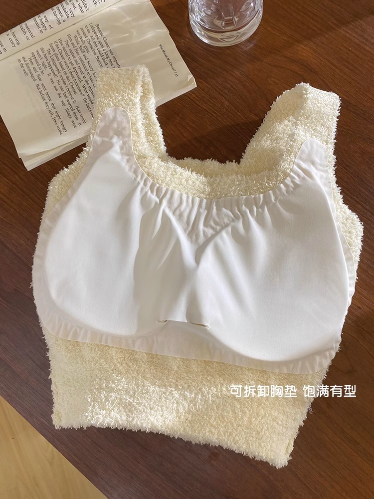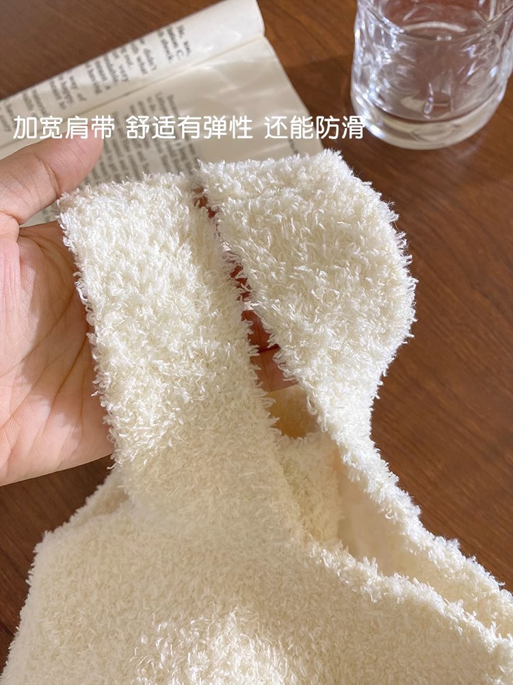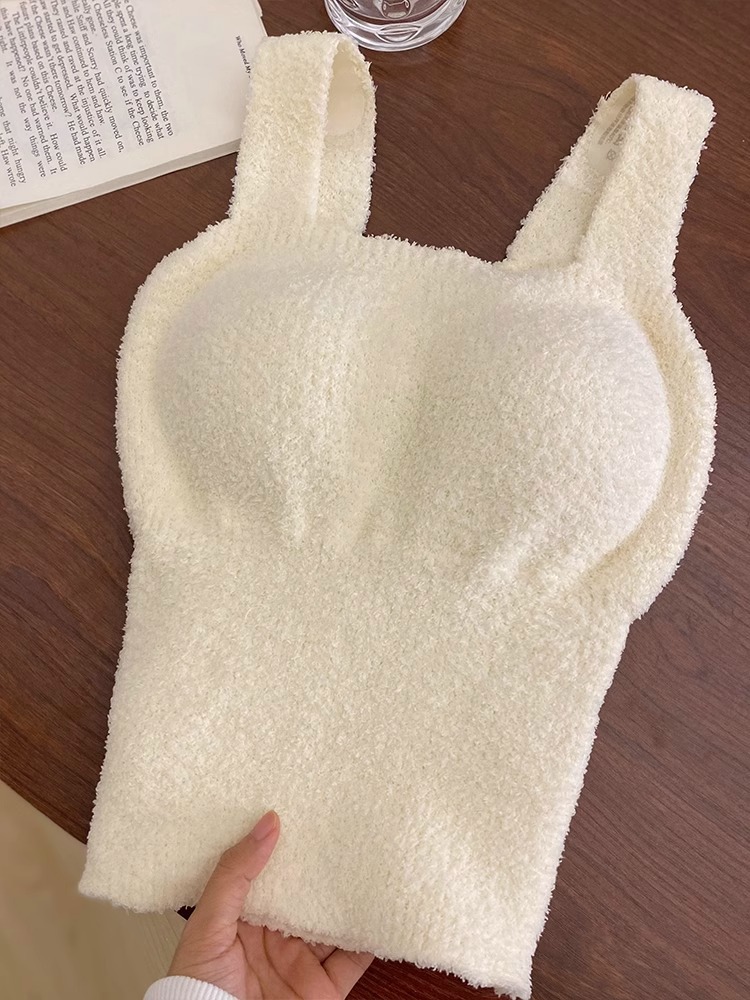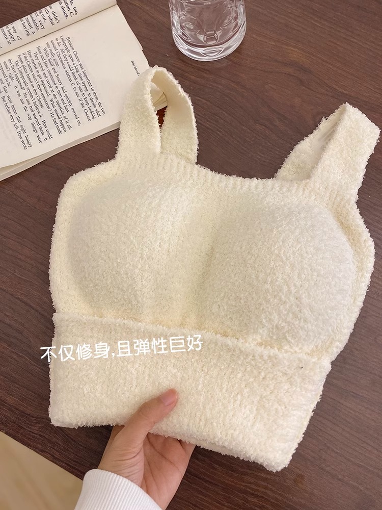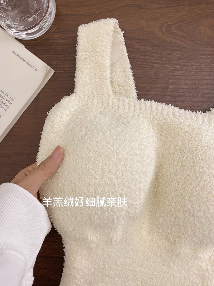 保暖毛毛绒小吊带背心外穿女春秋季带胸垫加厚短款内搭羊羔绒上衣
