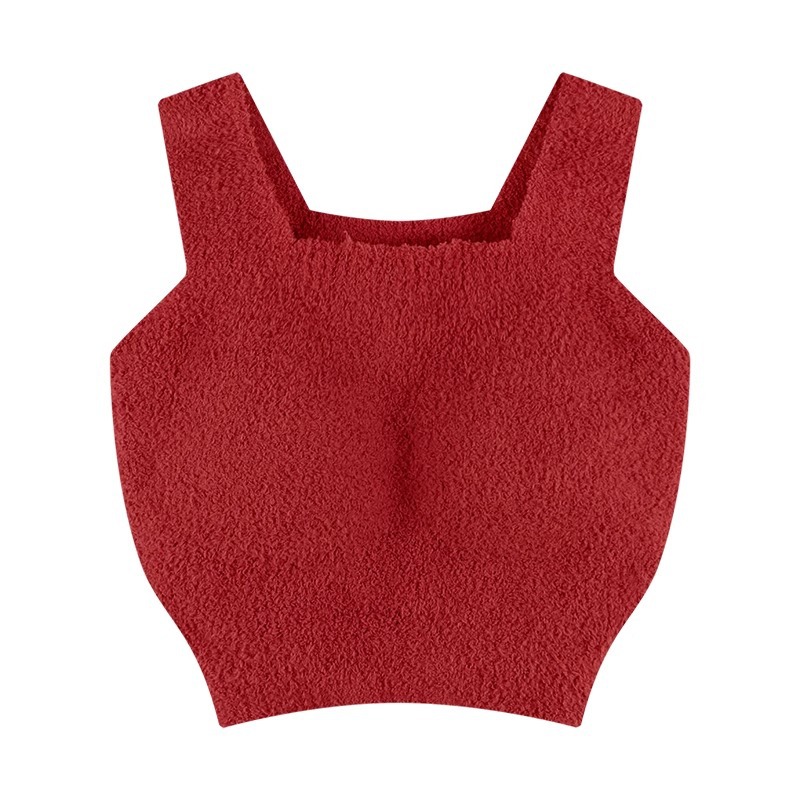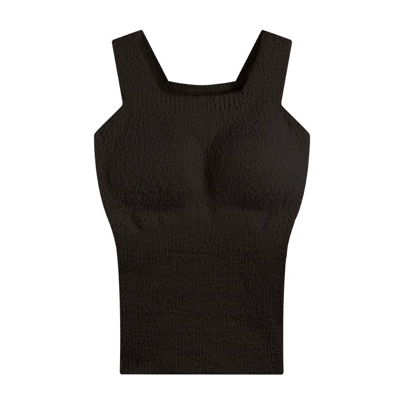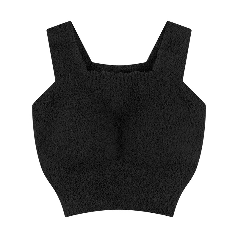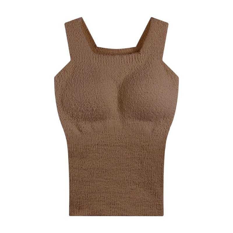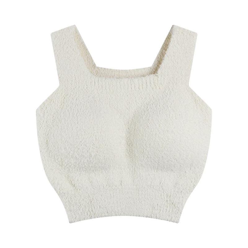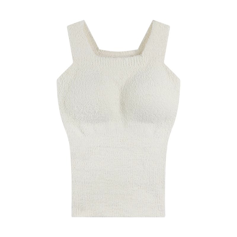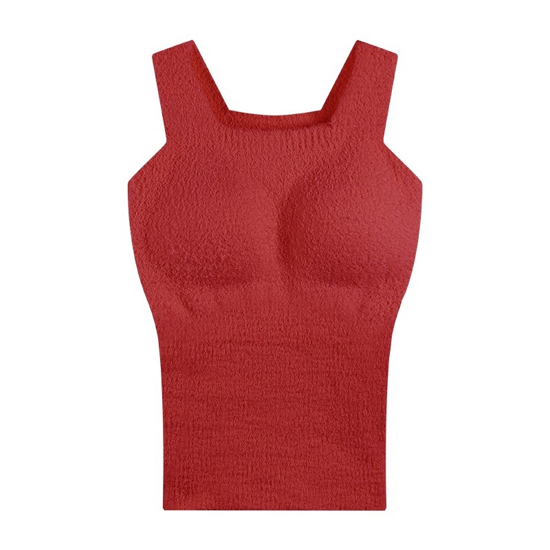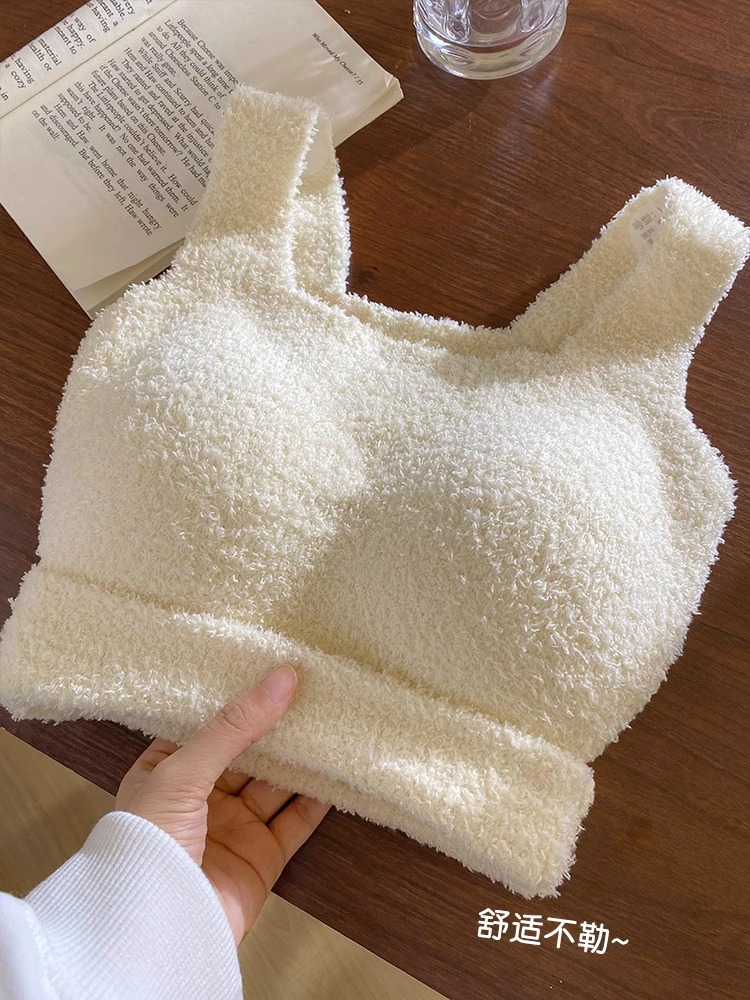 保暖毛毛绒小吊带背心外穿女春秋季带胸垫加厚短款内搭羊羔绒上衣