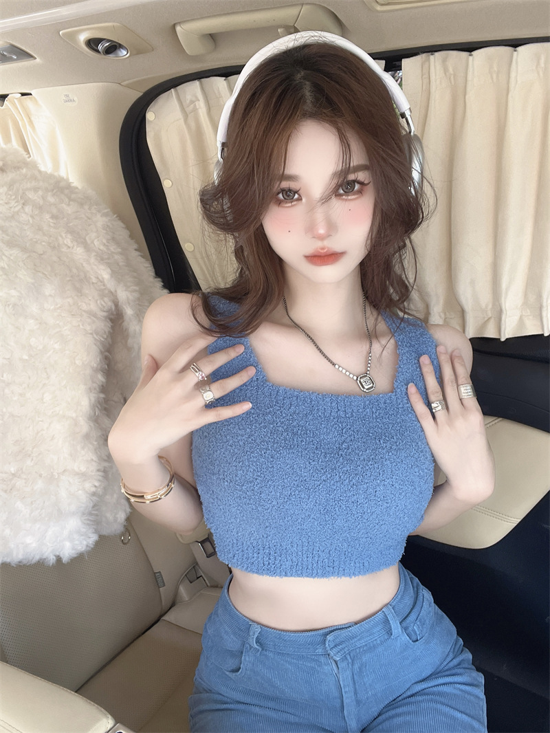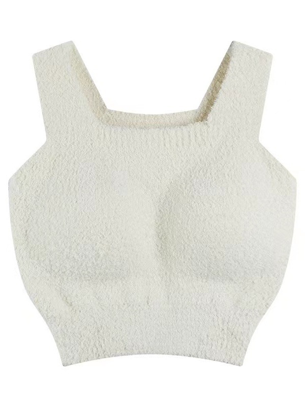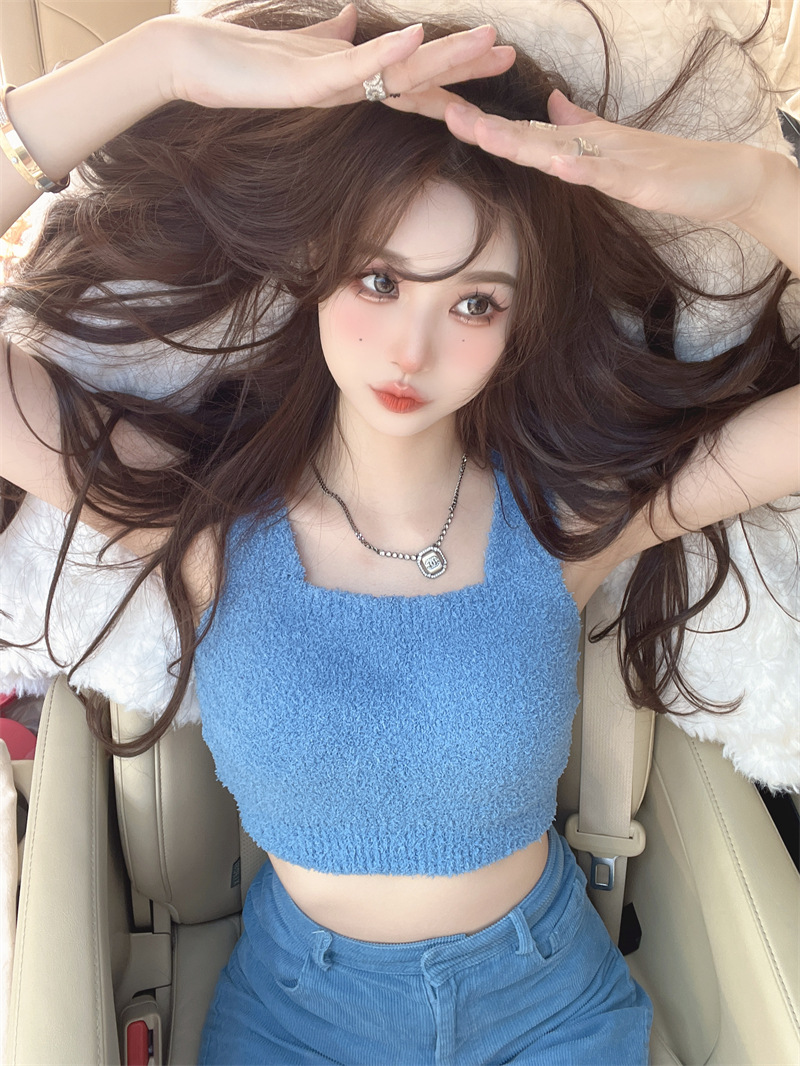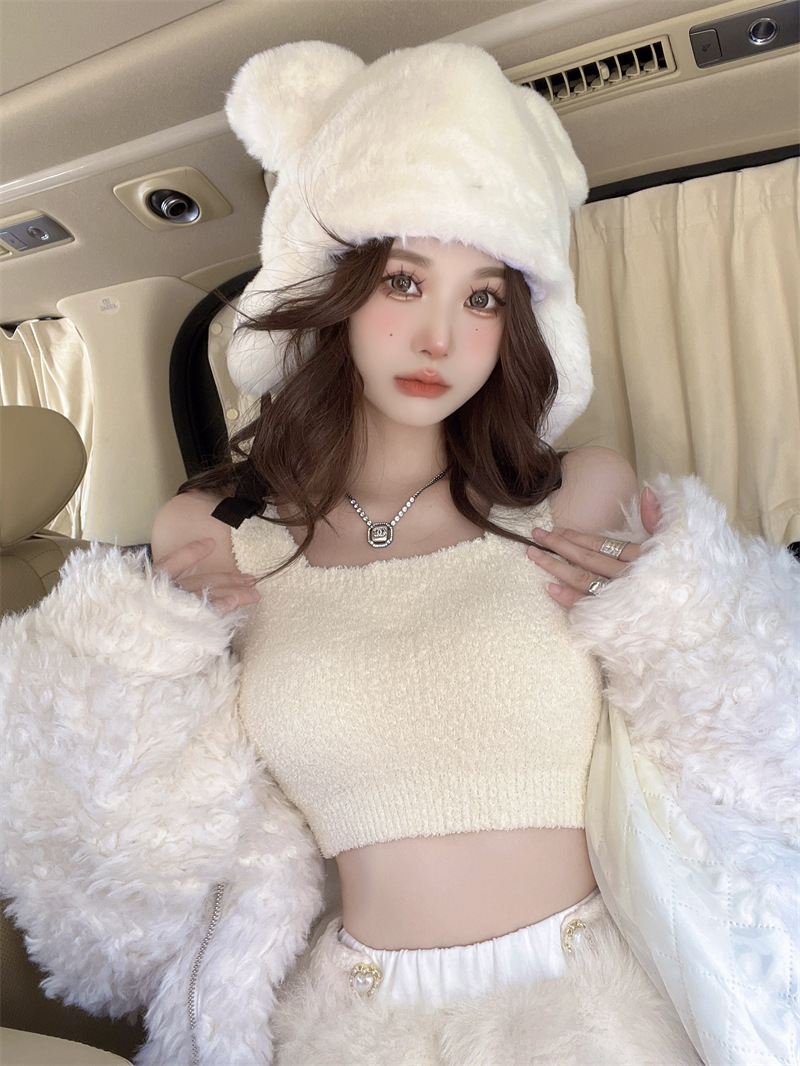 保暖毛绒小吊带背心外穿女秋冬新款带胸垫加厚短款内搭羊羔绒上衣
