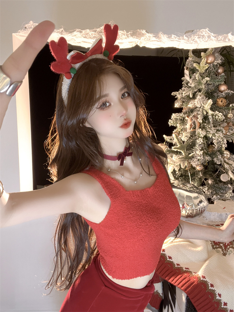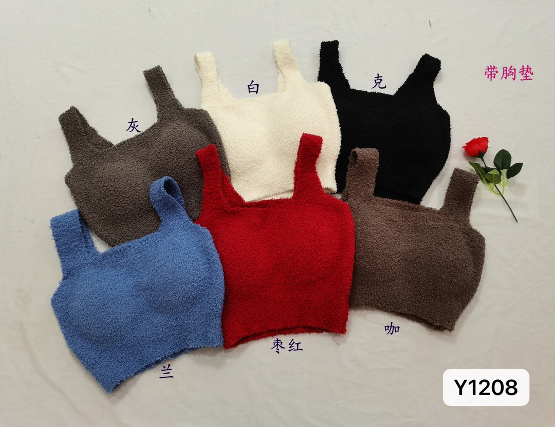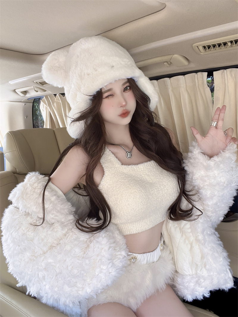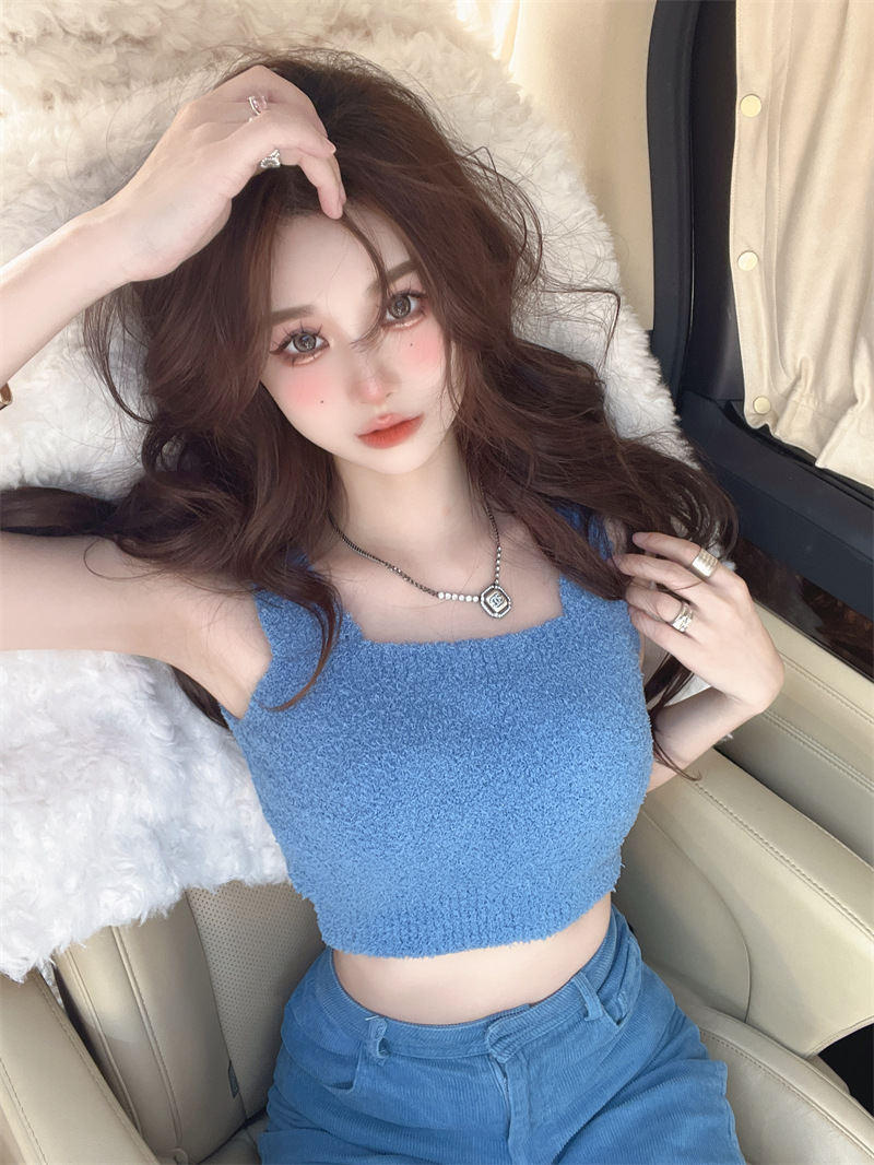 保暖毛绒小吊带背心外穿女秋冬新款带胸垫加厚短款内搭羊羔绒上衣