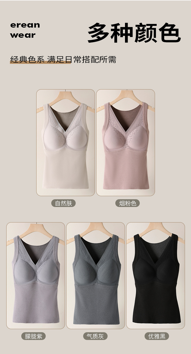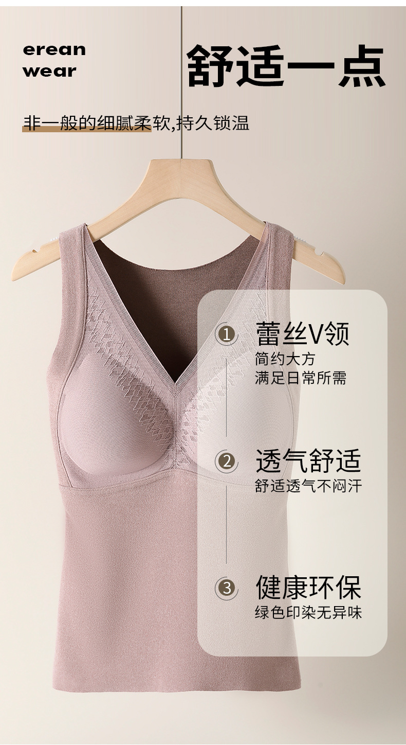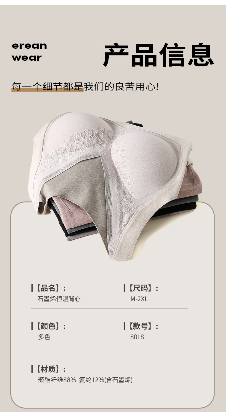 秋冬季石墨烯保暖内衣女恒温自发热吊带背心无痕胸垫一体式打底