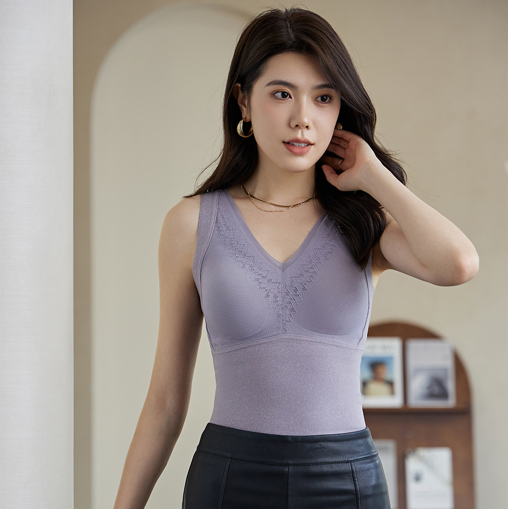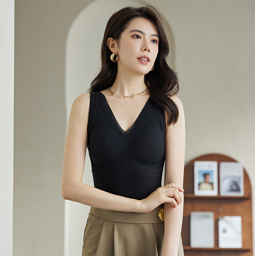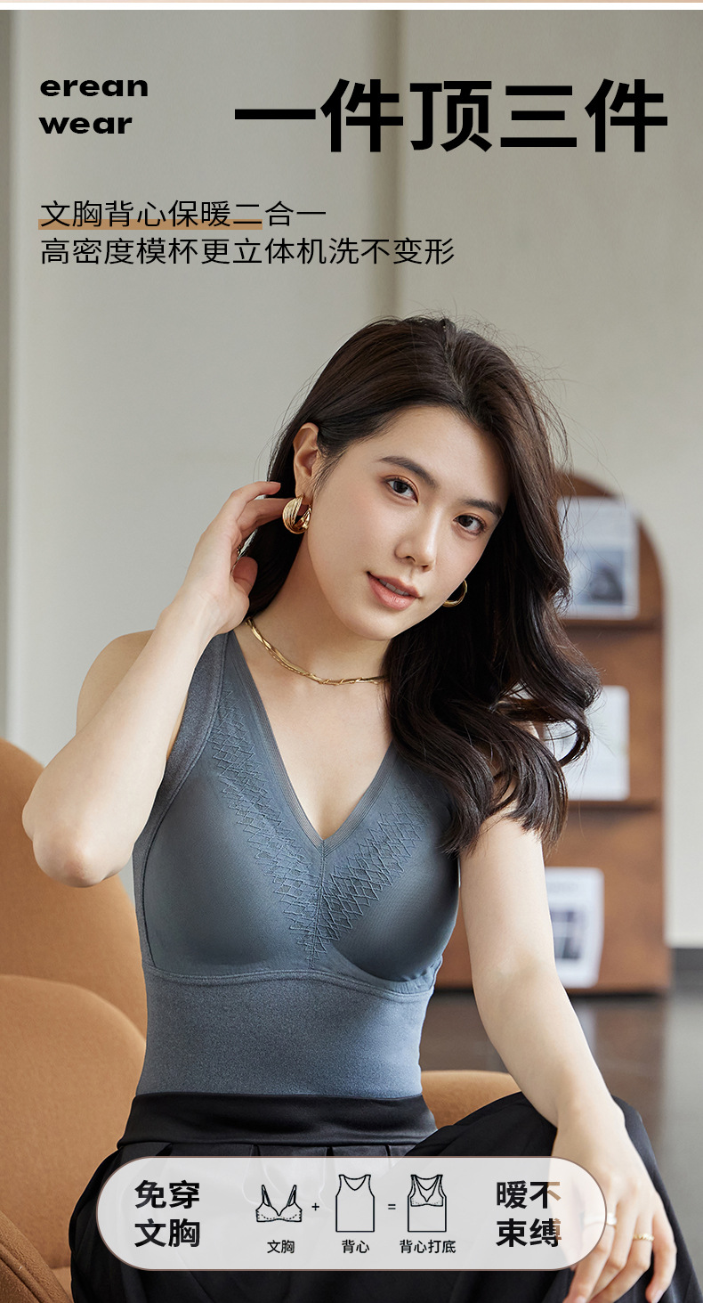 秋冬季石墨烯保暖内衣女恒温自发热吊带背心无痕胸垫一体式打底