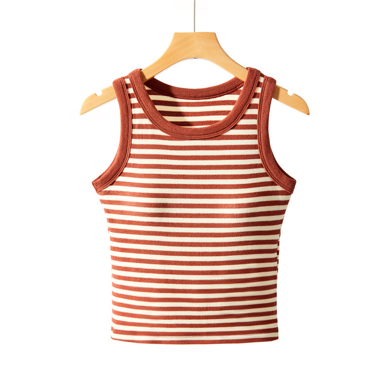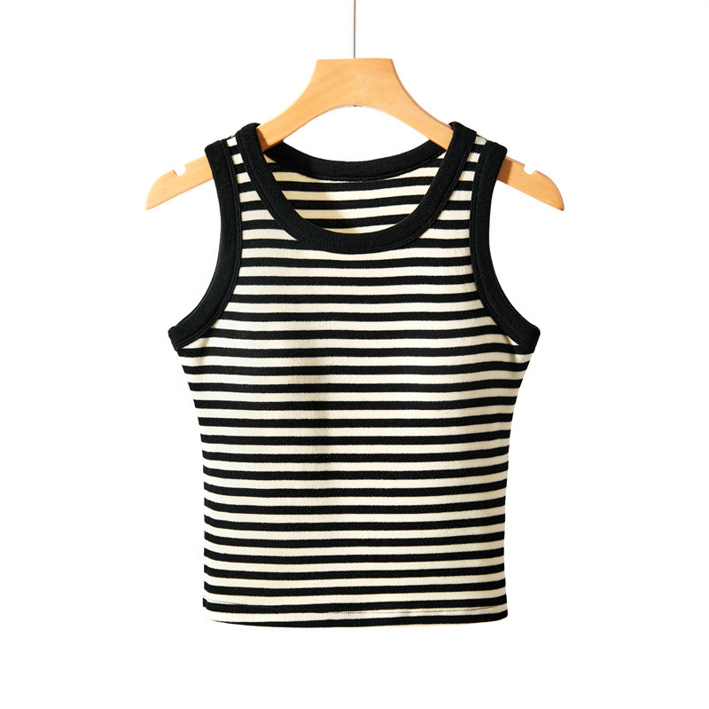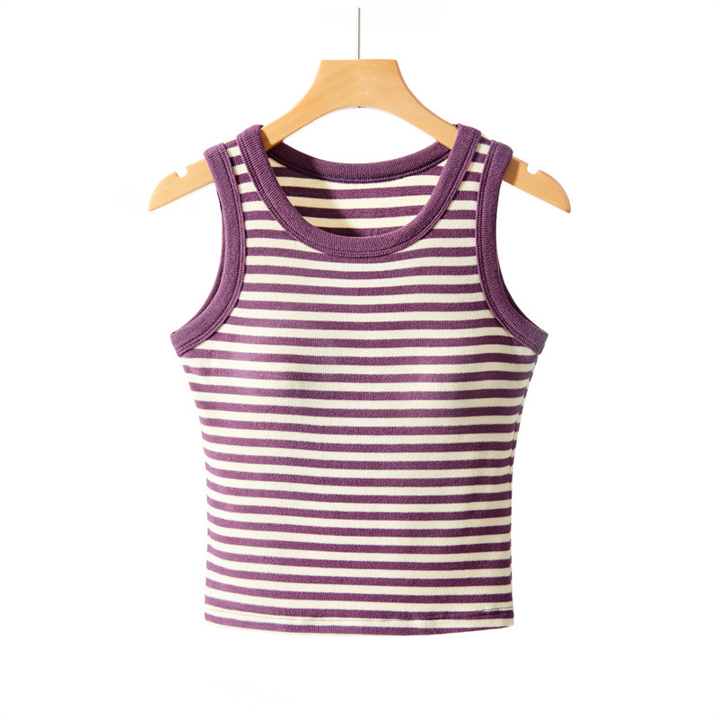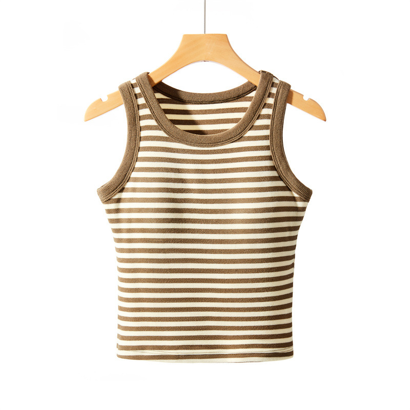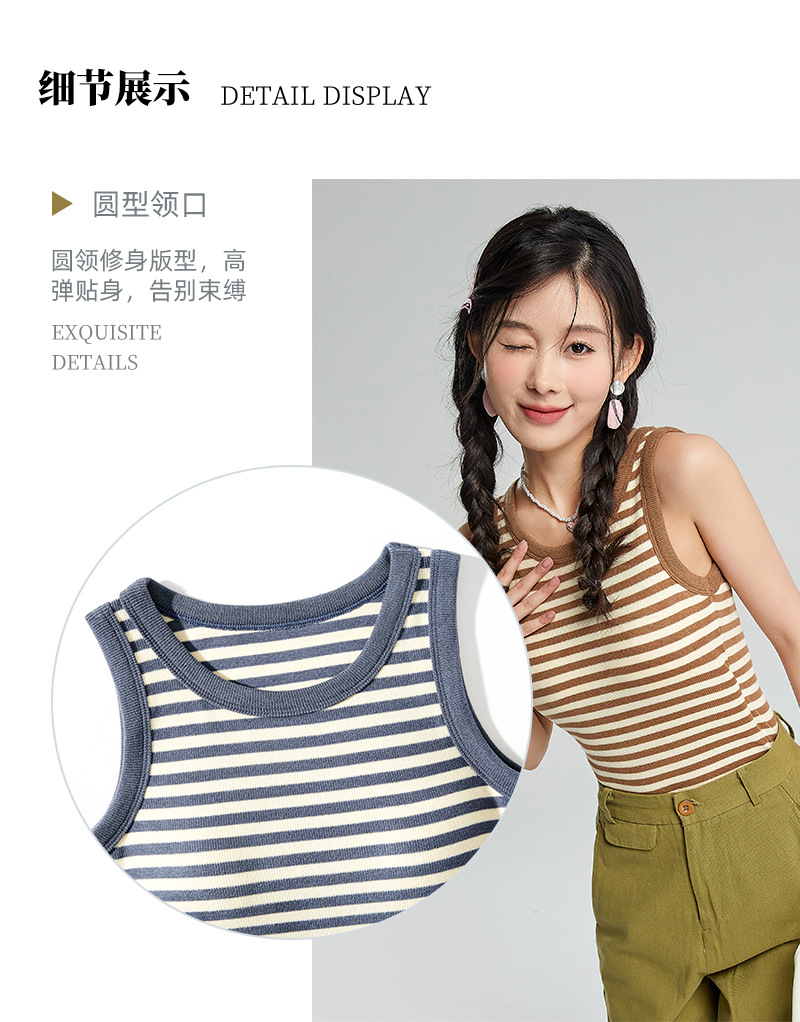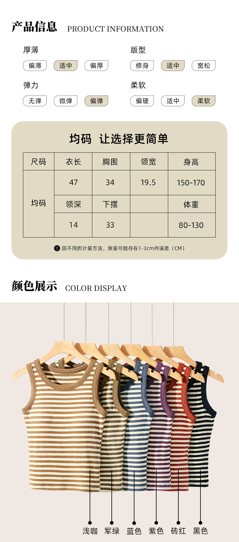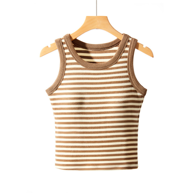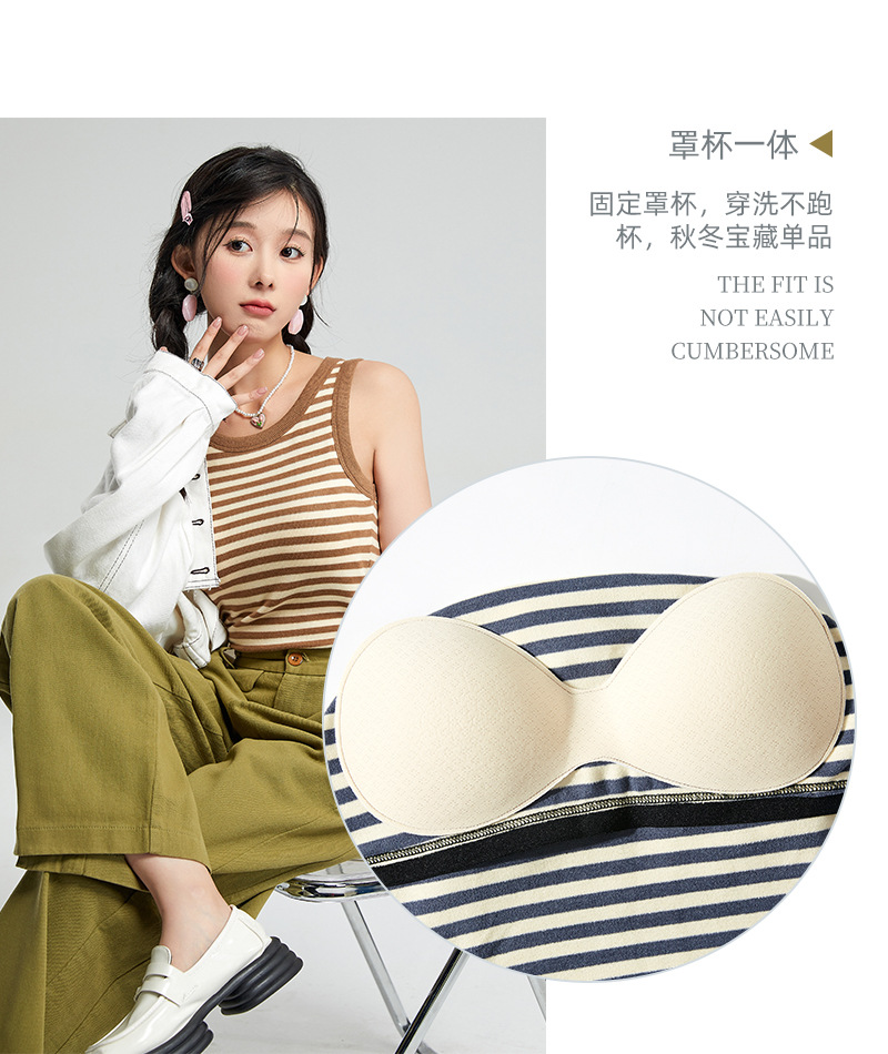 德绒保暖背心女发热秋冬修身圆领内搭胸垫外穿撞色条纹吊带打底衫