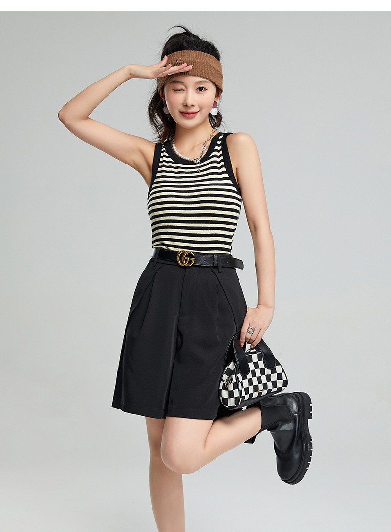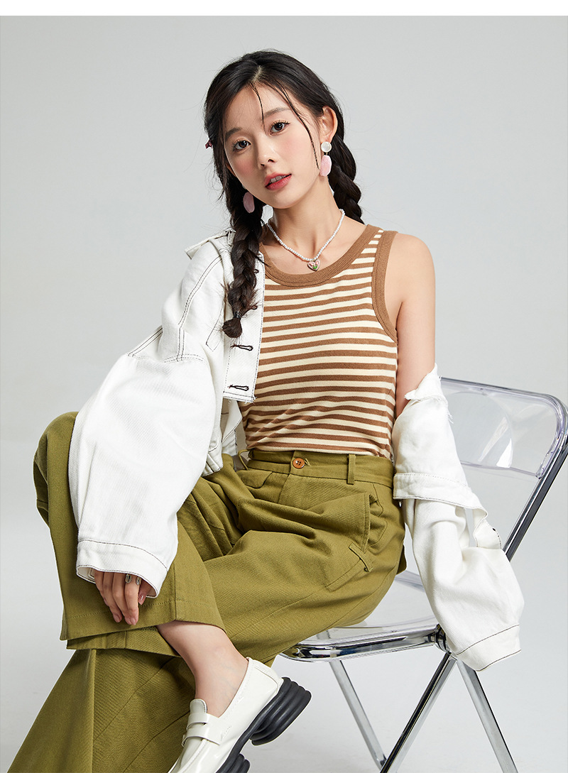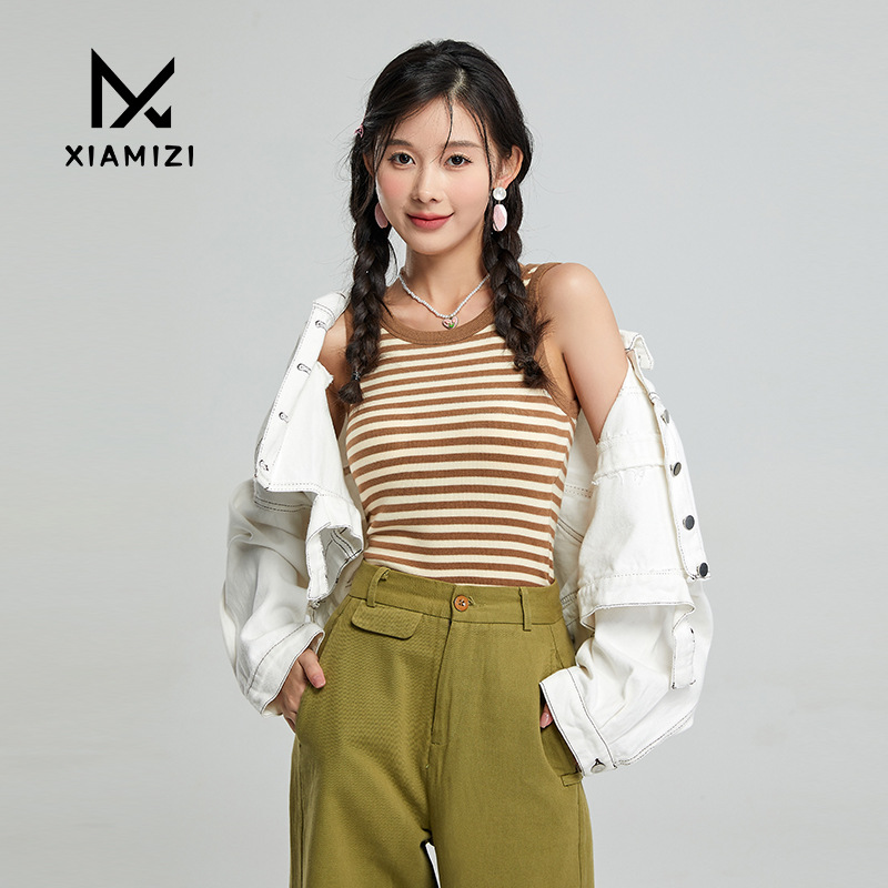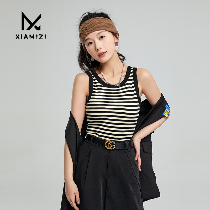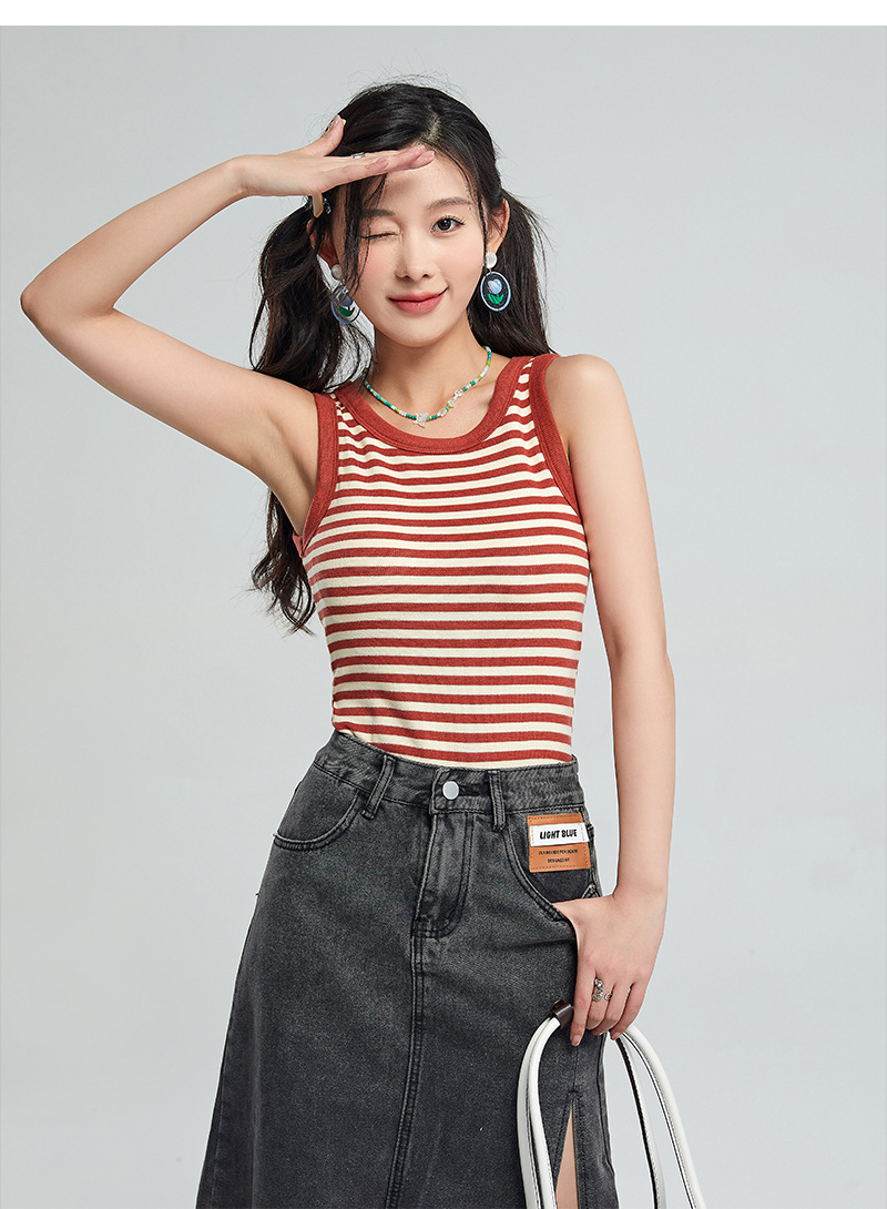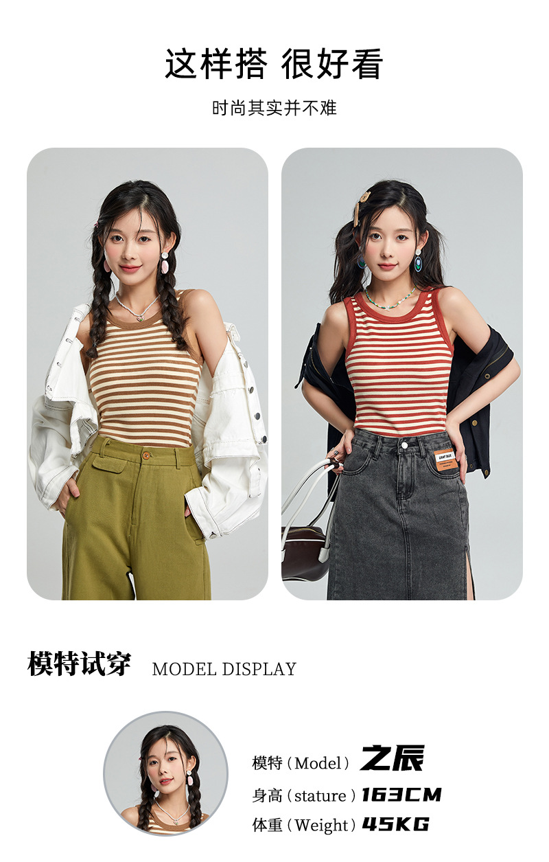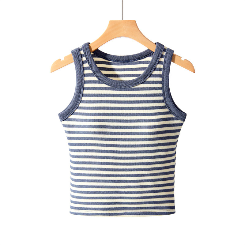 德绒保暖背心女发热秋冬修身圆领内搭胸垫外穿撞色条纹吊带打底衫