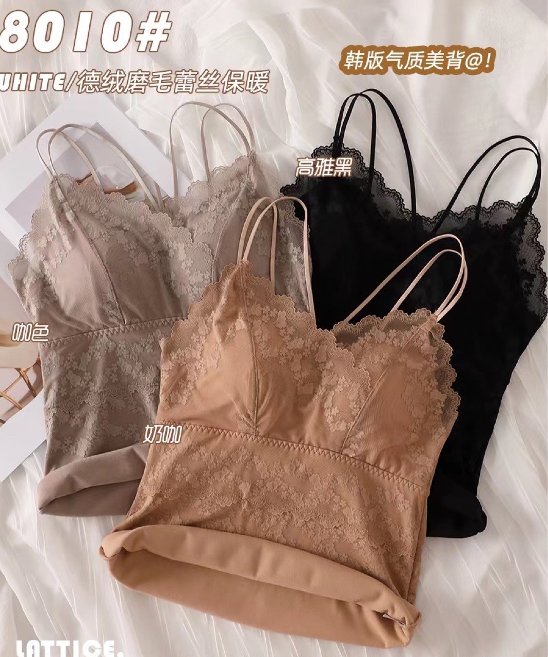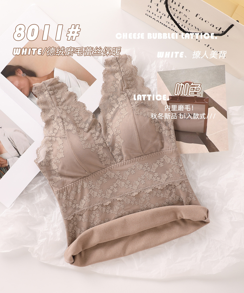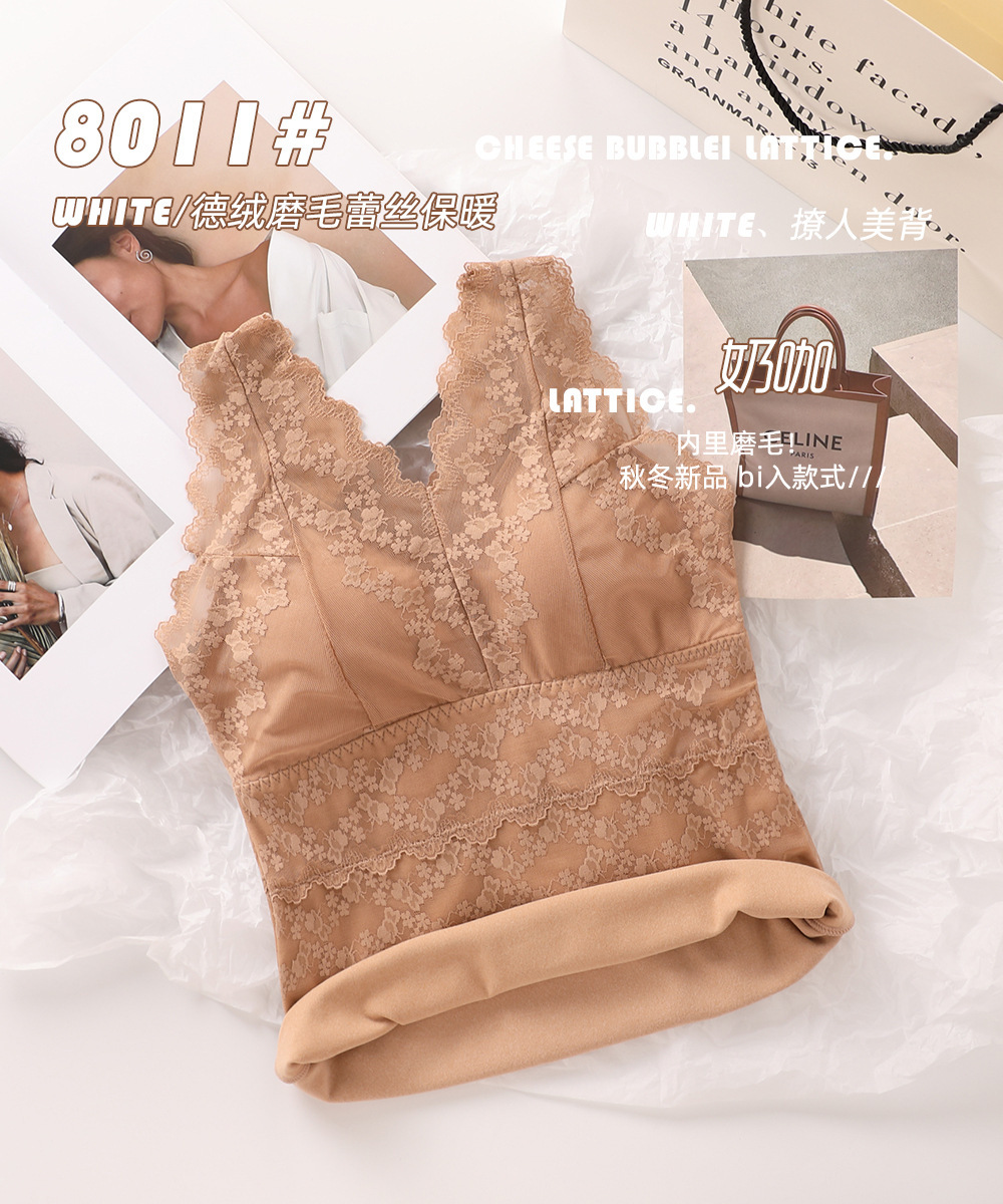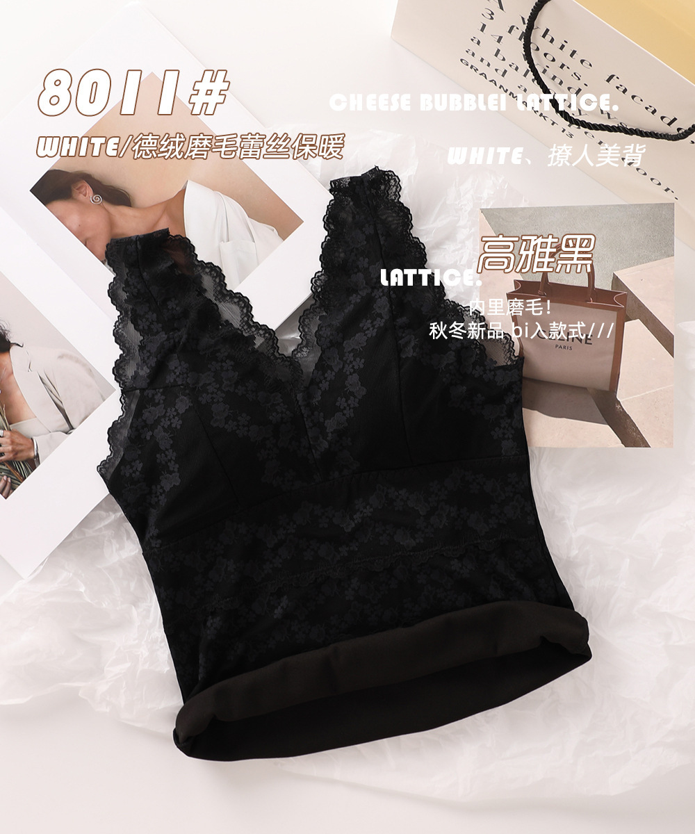 2023秋冬新款蕾丝德绒保暖背心女加绒带胸垫打底保暖吊带背心内衣