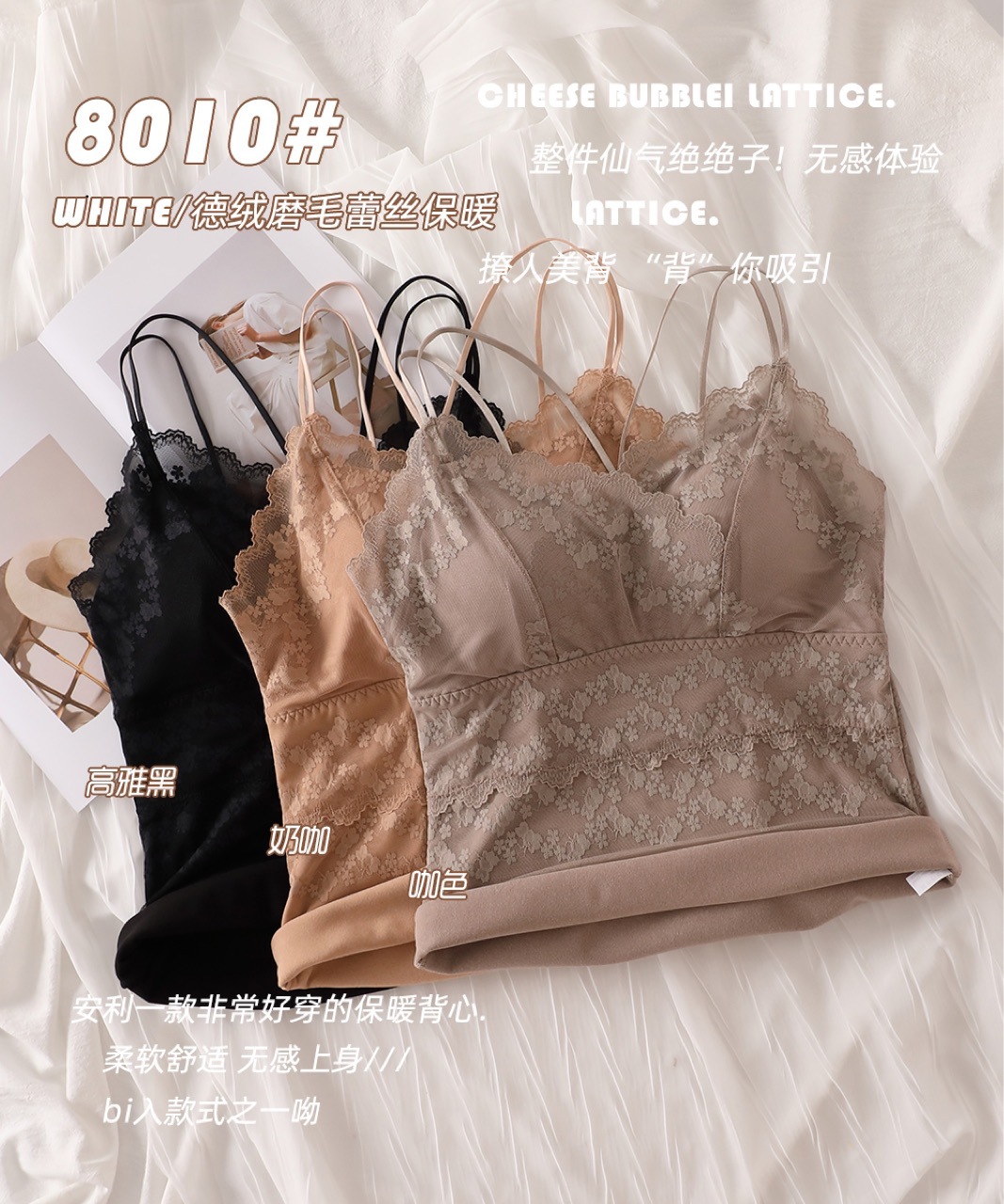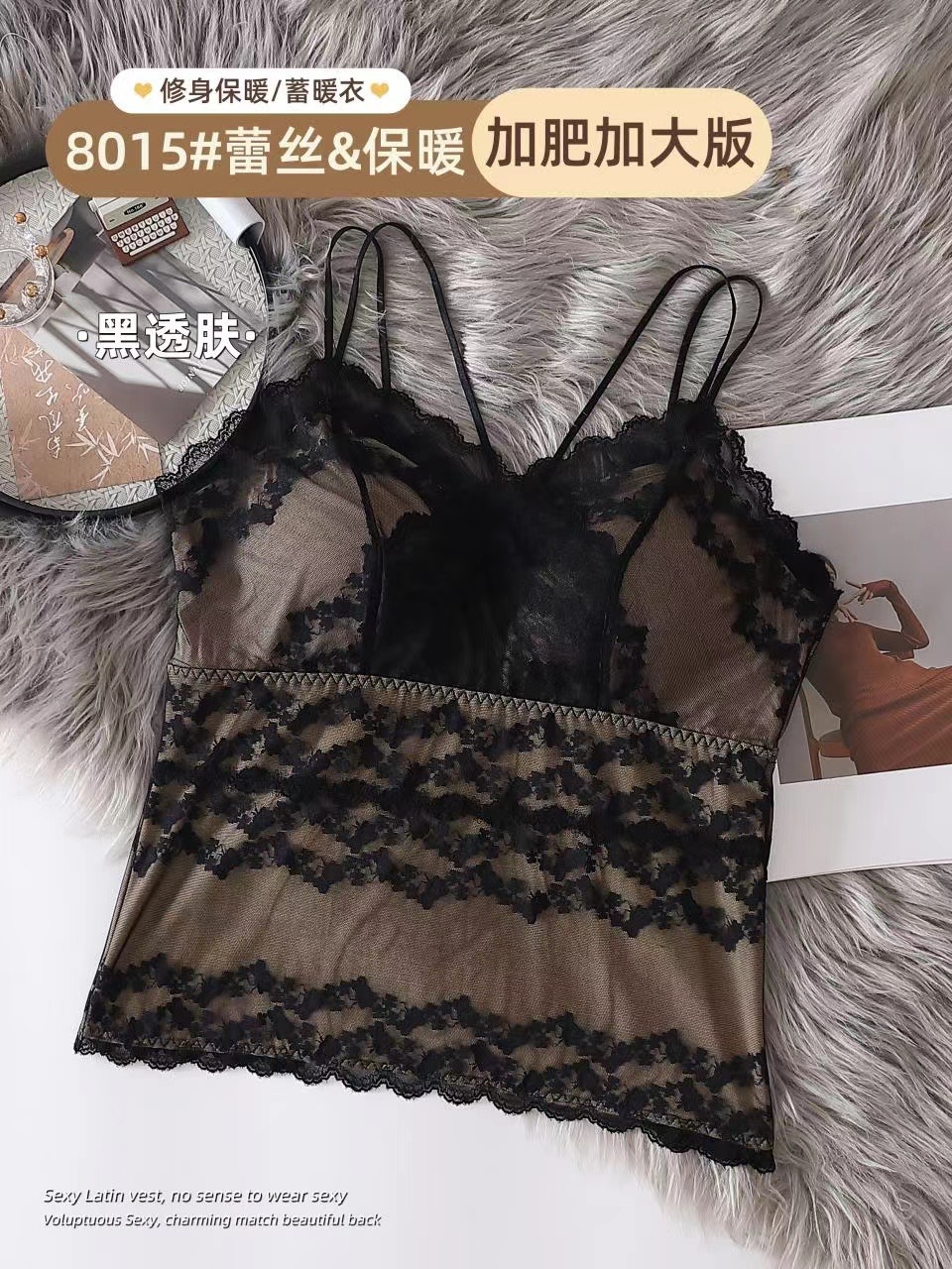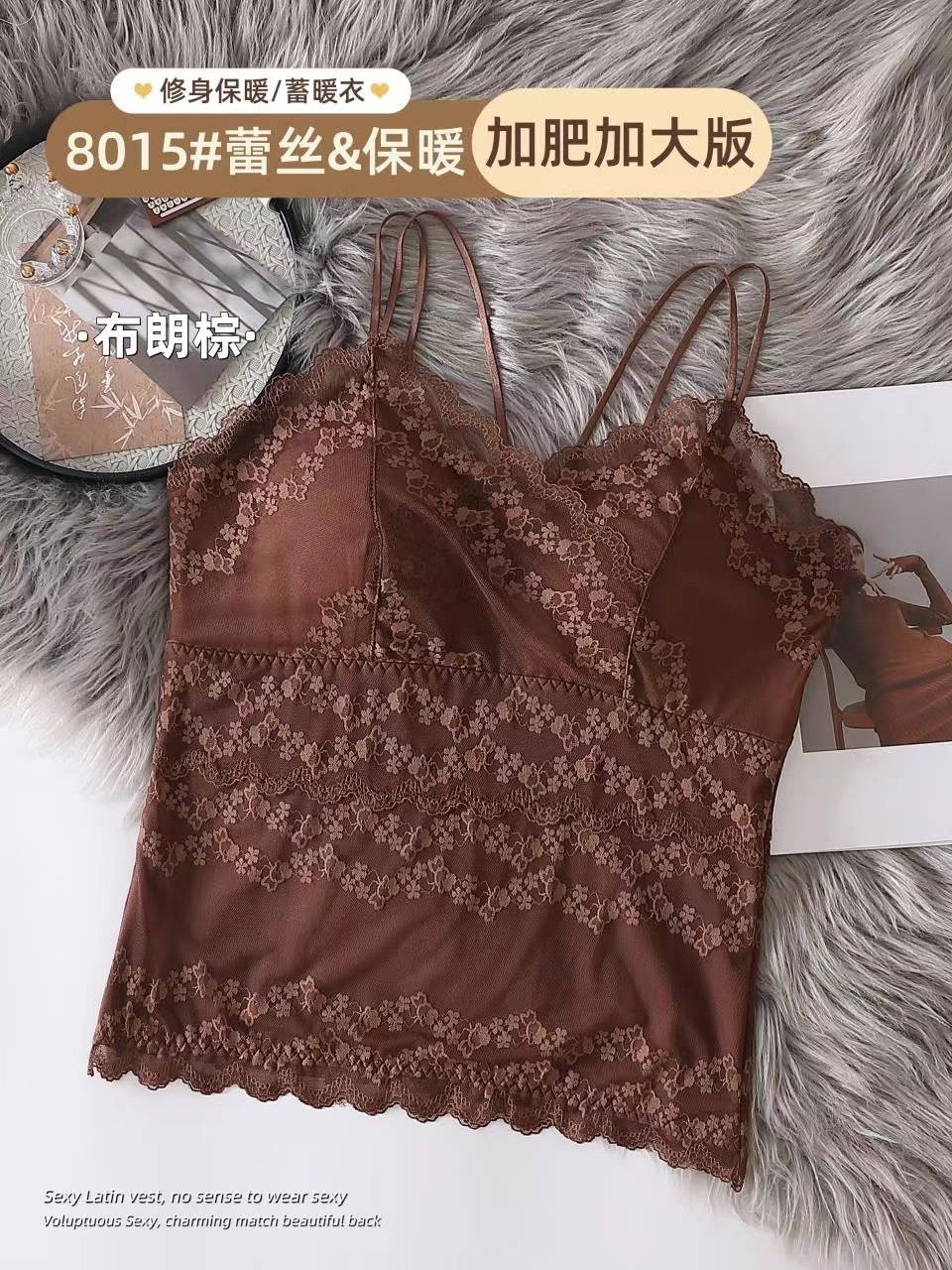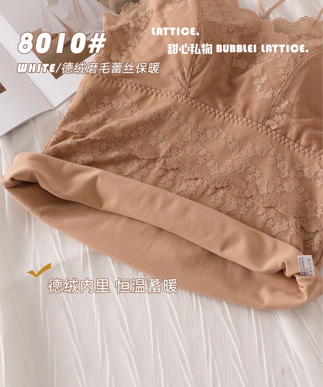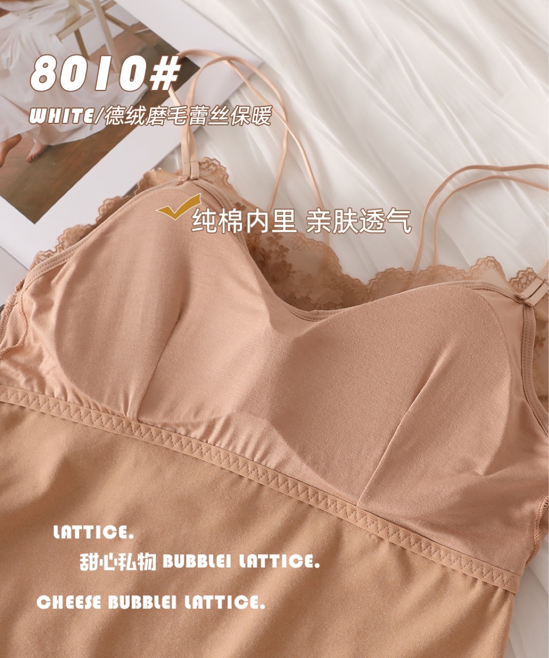 2023秋冬新款蕾丝德绒保暖背心女加绒带胸垫打底保暖吊带背心内衣