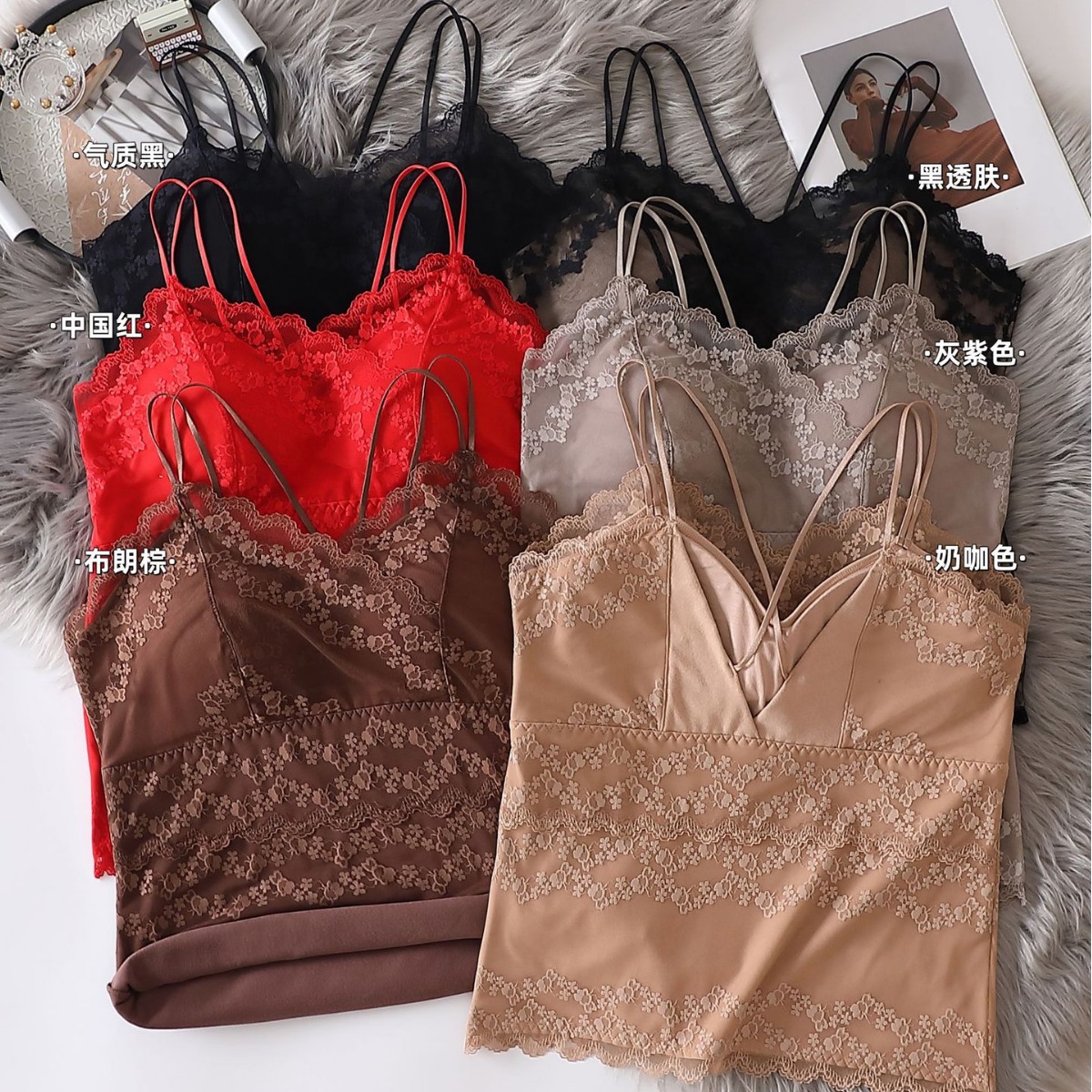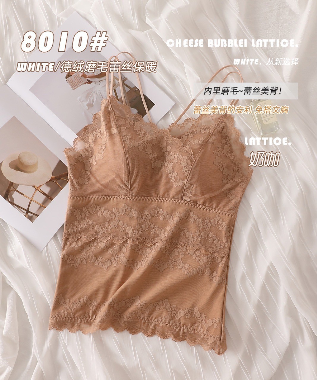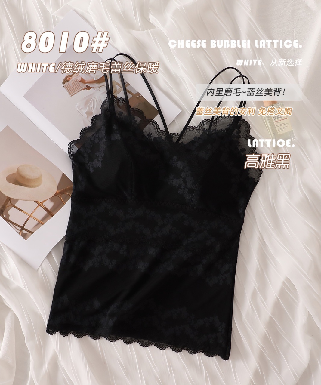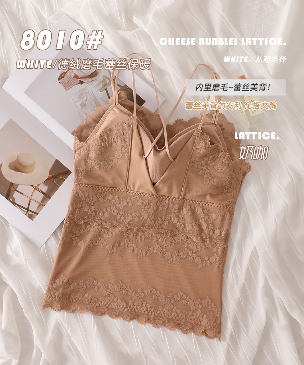 2023秋冬新款蕾丝德绒保暖背心女加绒带胸垫打底保暖吊带背心内衣