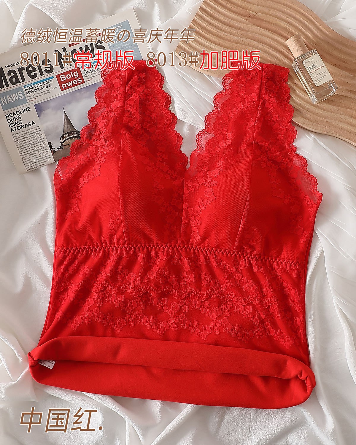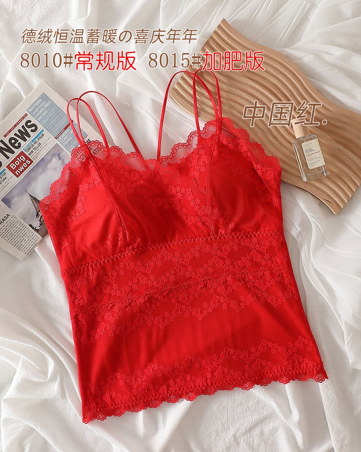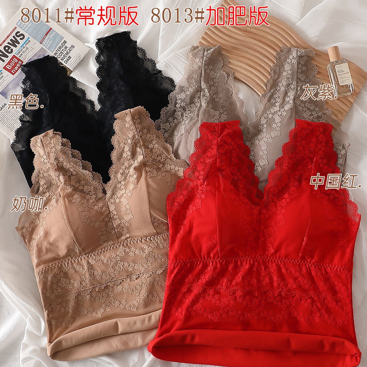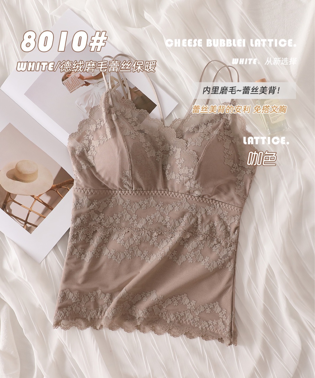 2023秋冬新款蕾丝德绒保暖背心女加绒带胸垫打底保暖吊带背心内衣