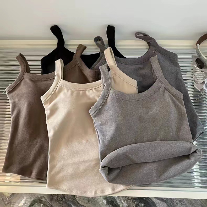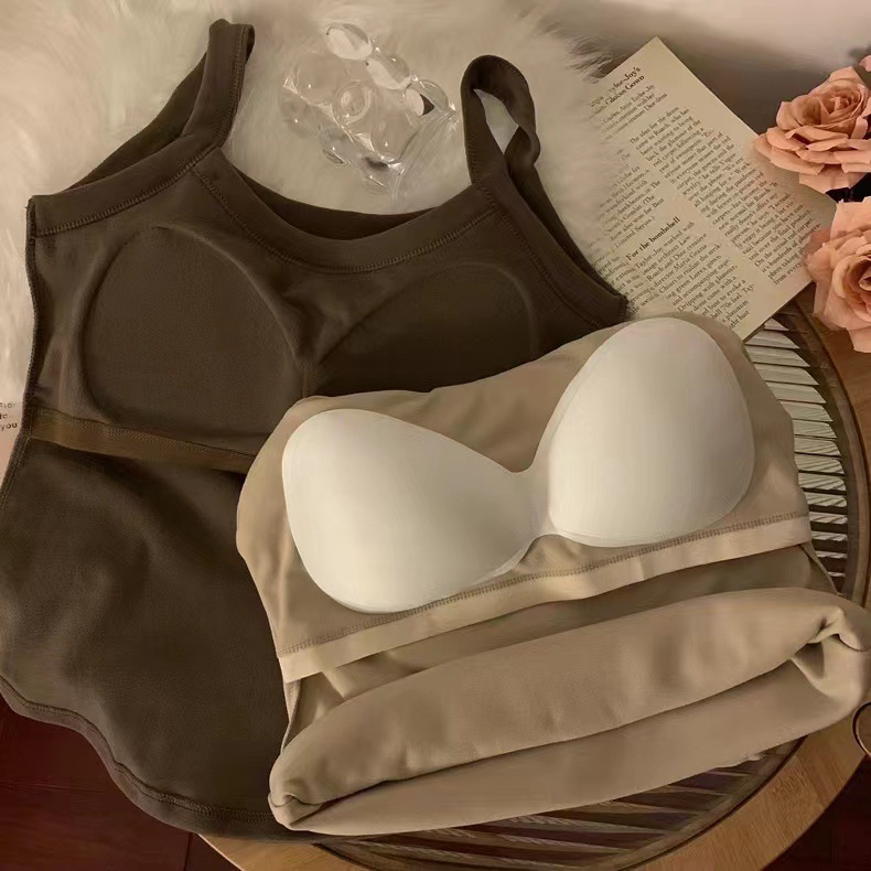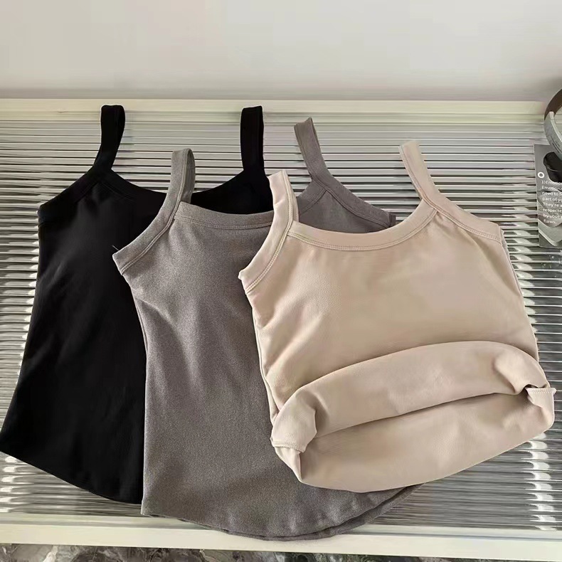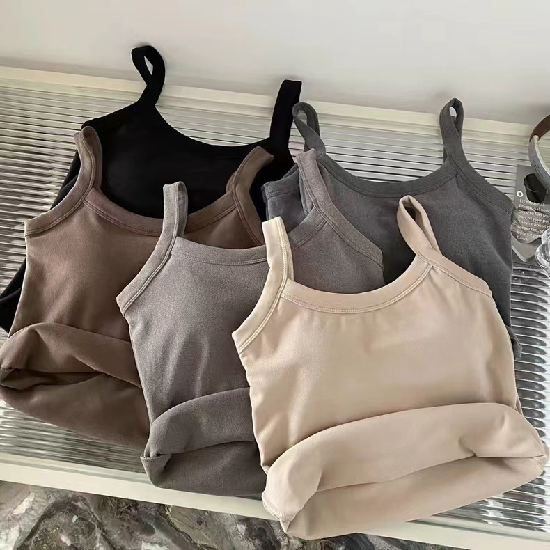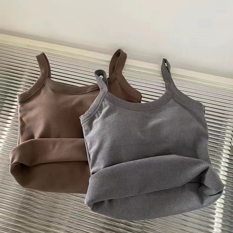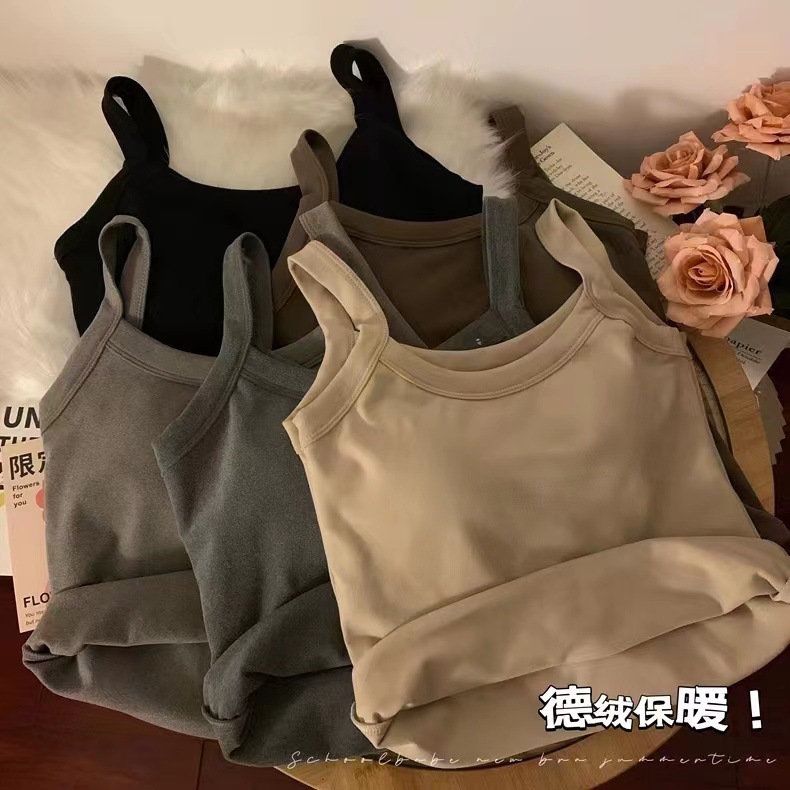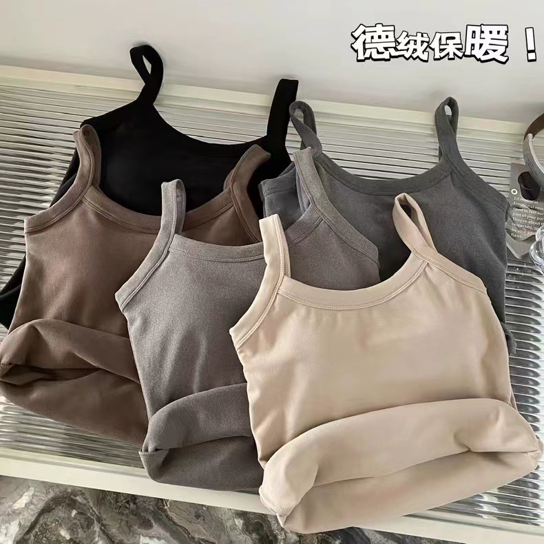 冬季德绒发热保暖内衣女带胸垫内搭长款加绒加厚吊带背心打底上衣