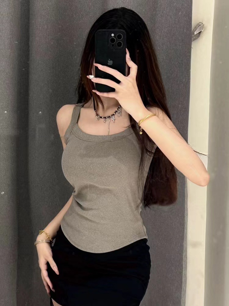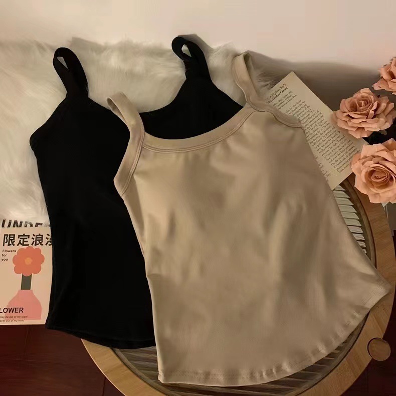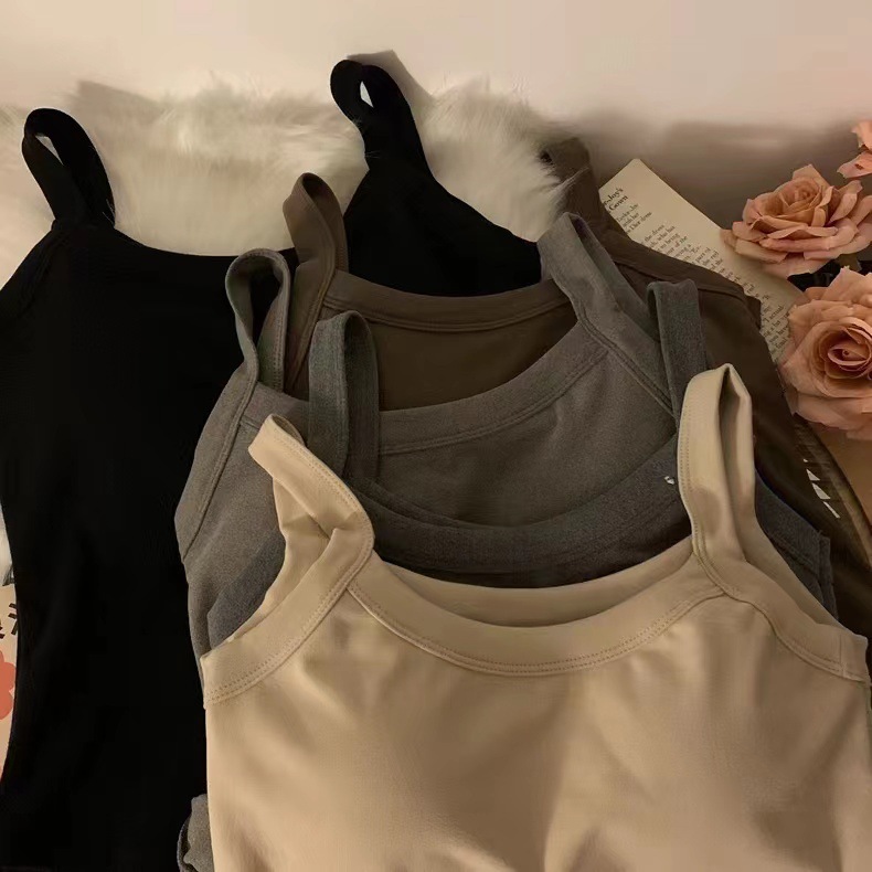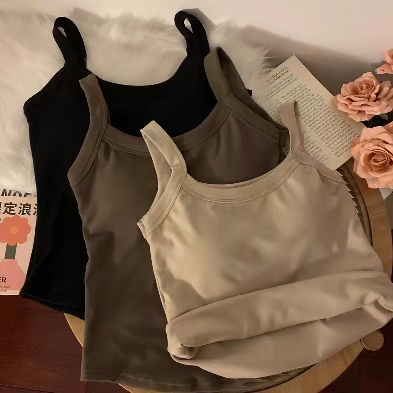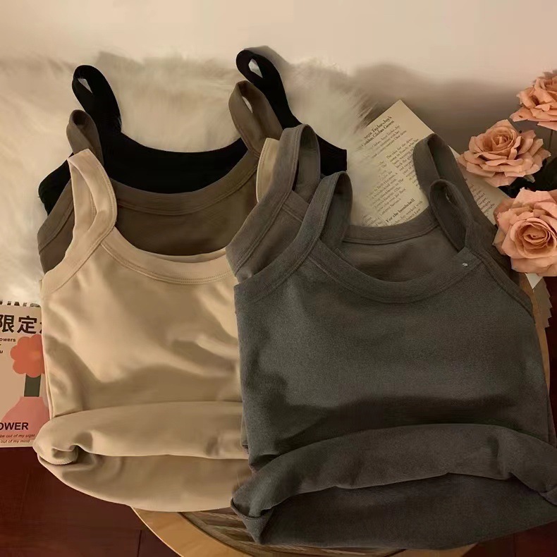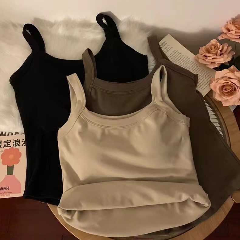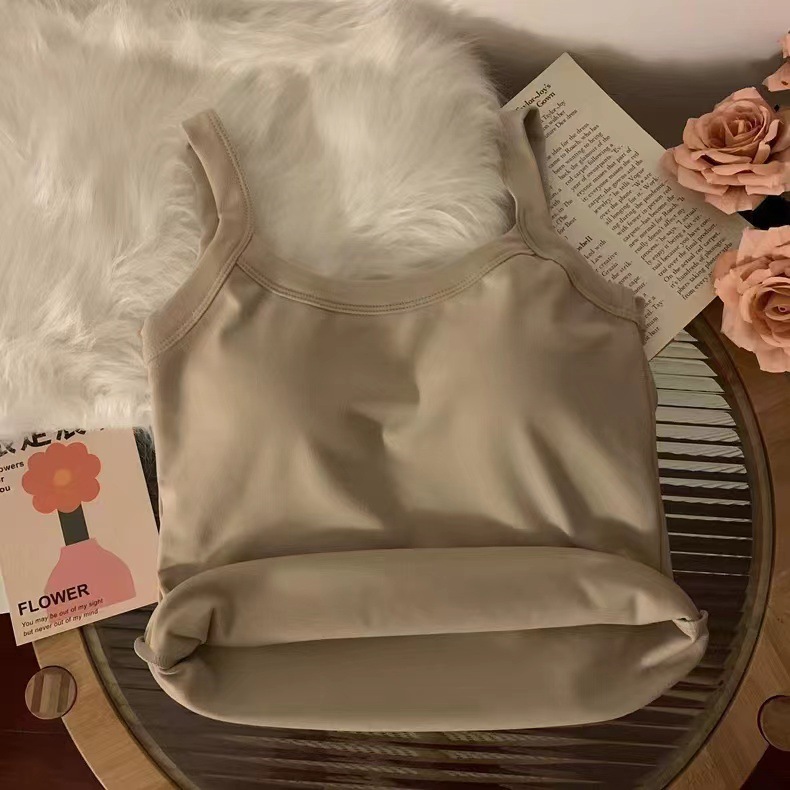 冬季德绒发热保暖内衣女带胸垫内搭长款加绒加厚吊带背心打底上衣