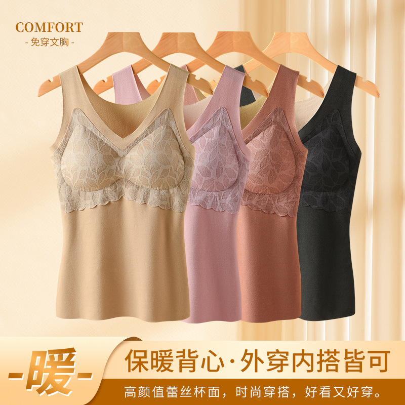 2023加绒加厚保暖背心女无痕可拆卸胸垫百搭吊带打底衫保暖上衣