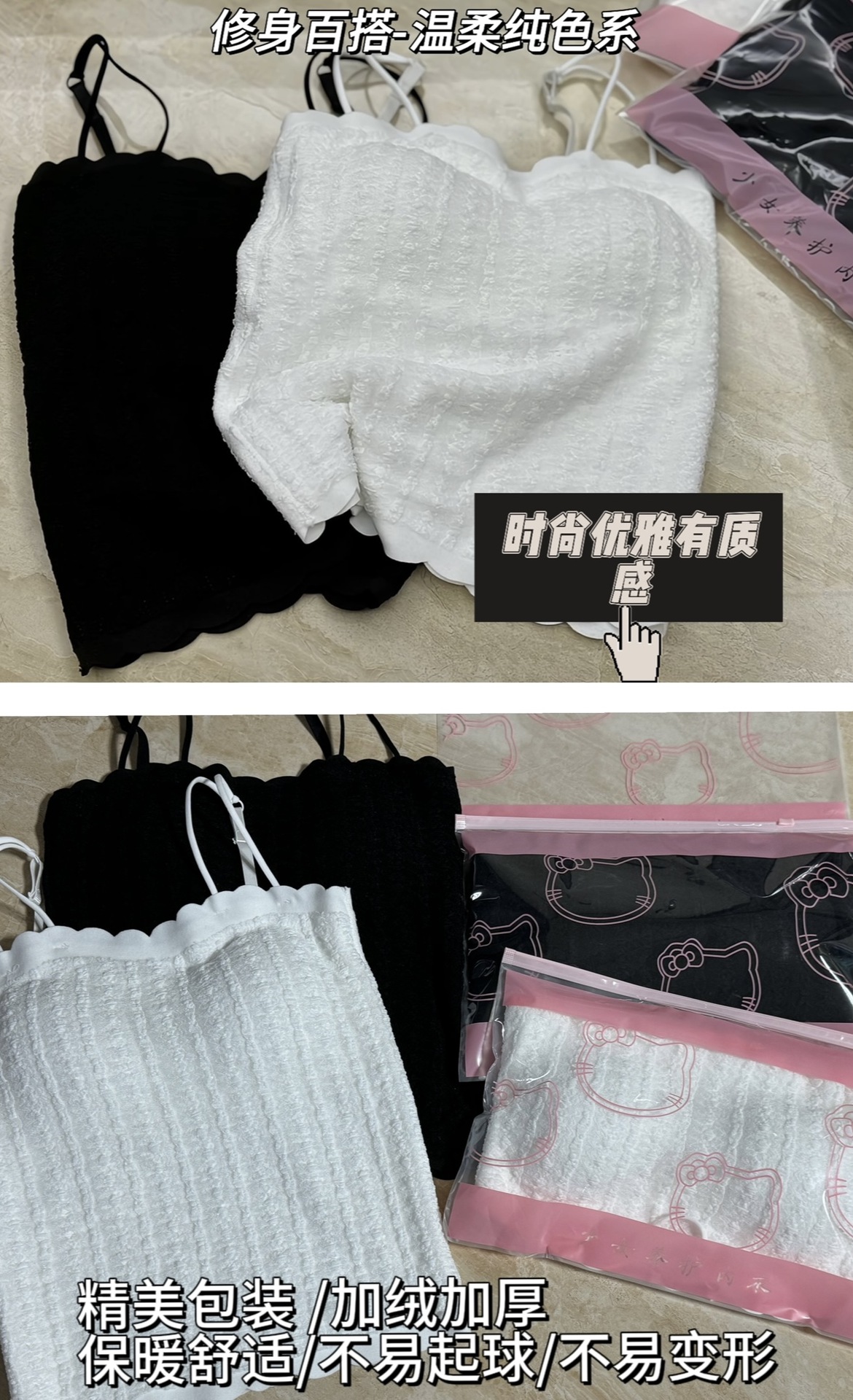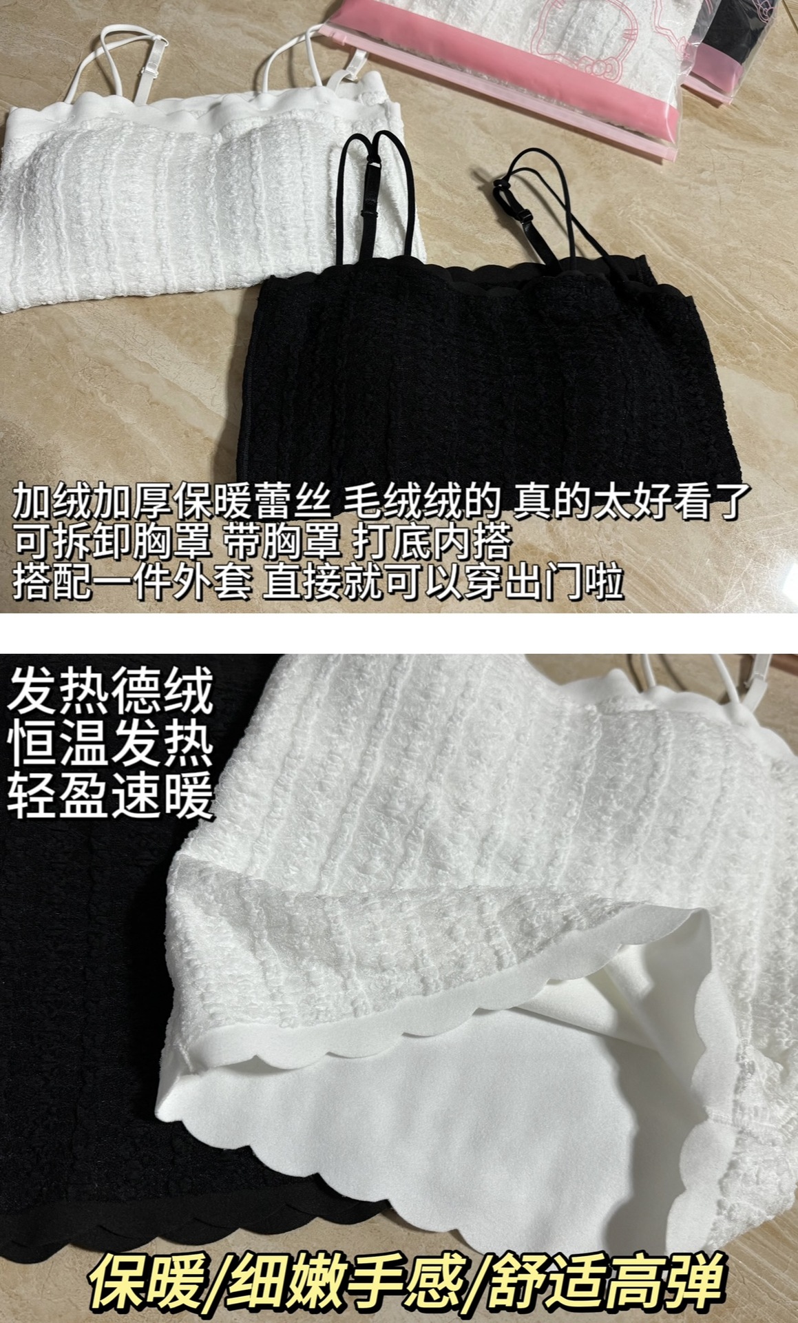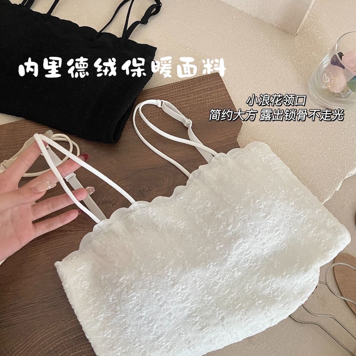 带胸垫保暖背心内衣女秋冬加绒加厚蕾丝修身内搭打底美背吊带上衣