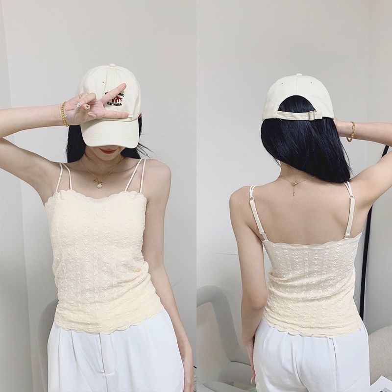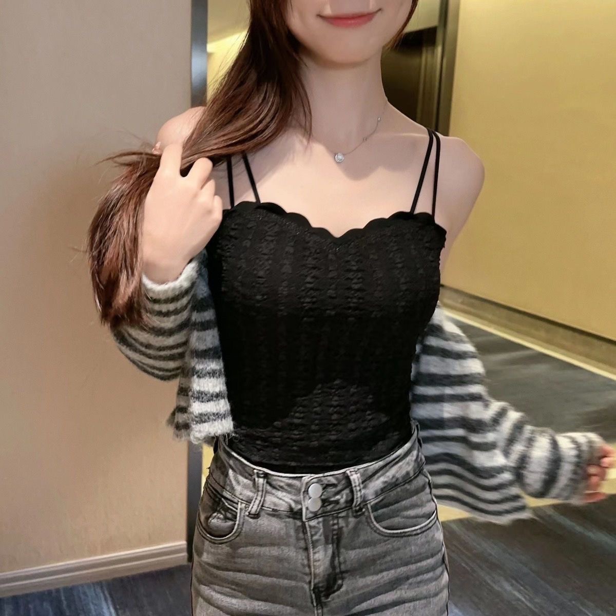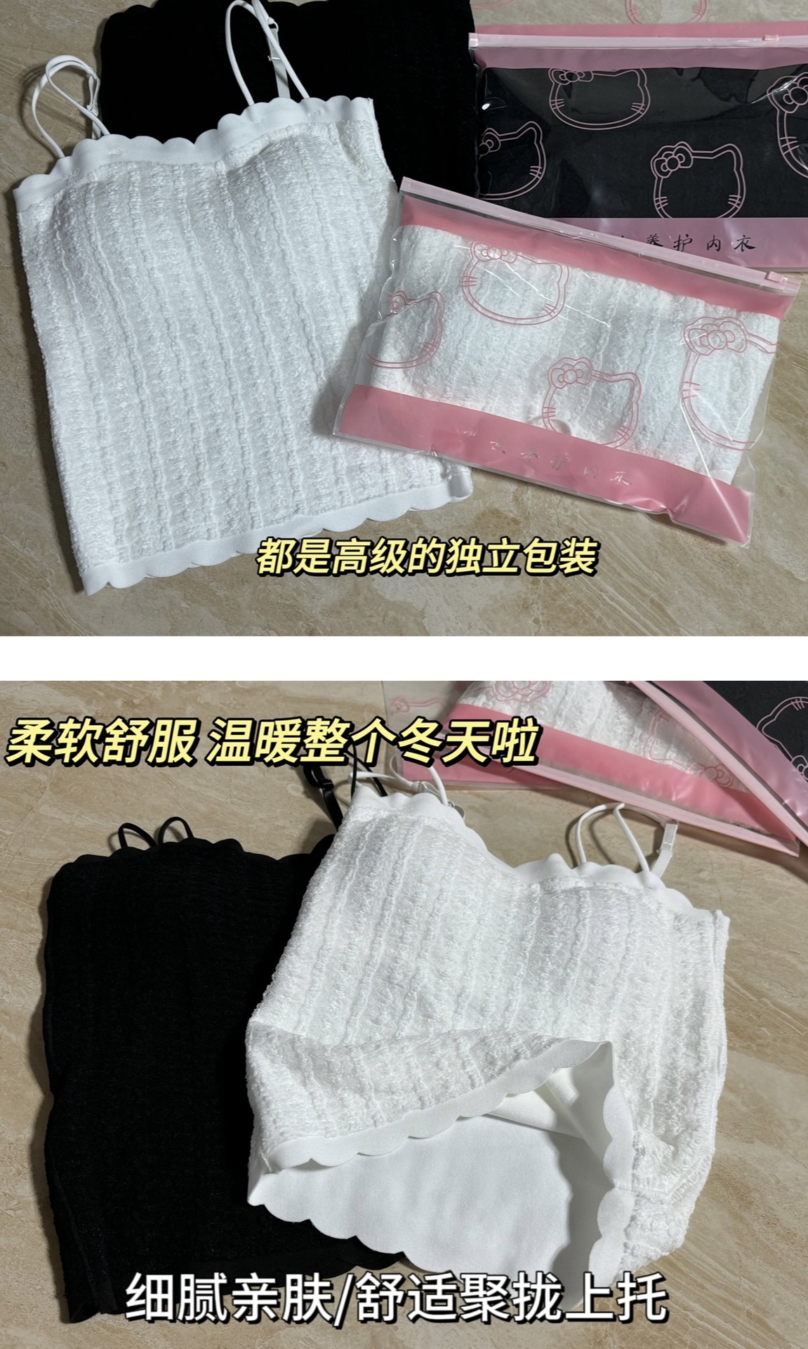 带胸垫保暖背心内衣女秋冬加绒加厚蕾丝修身内搭打底美背吊带上衣