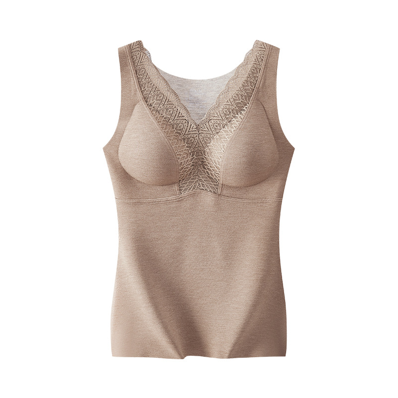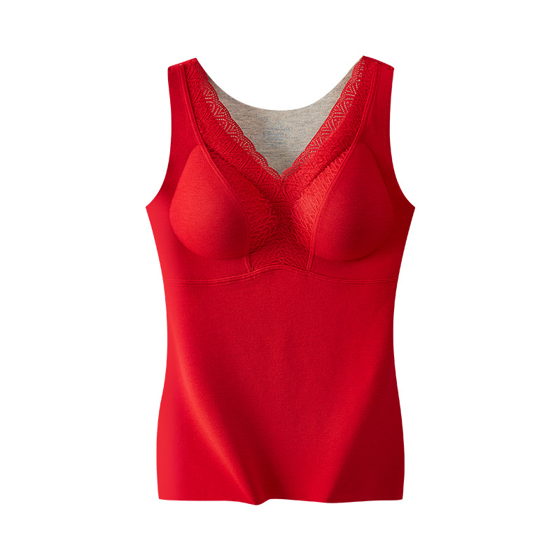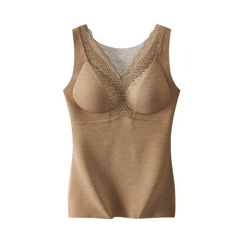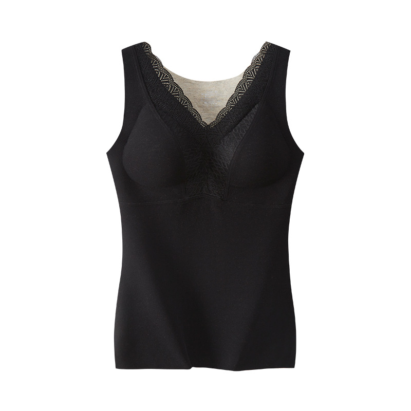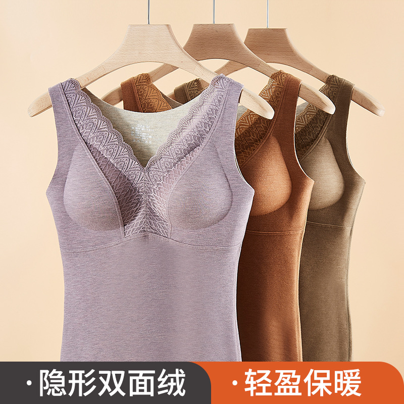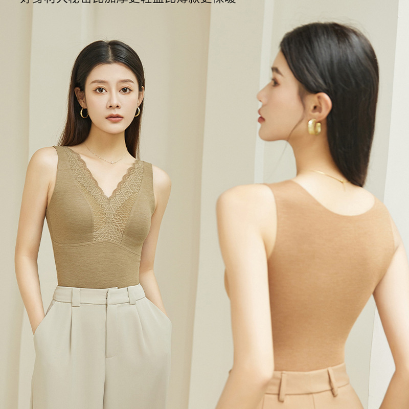 蚕丝羊毛保暖内衣秋冬新款舒适蕾丝无痕固定一体杯文胸女士背心