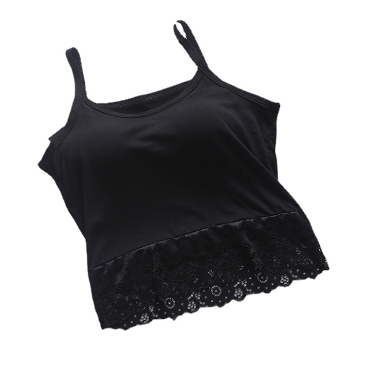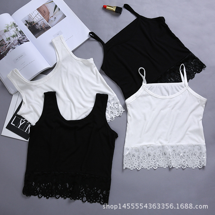 螺纹棉吊带蕾丝背心女夏季好搭短款打底上衣带胸垫可外穿性感美背