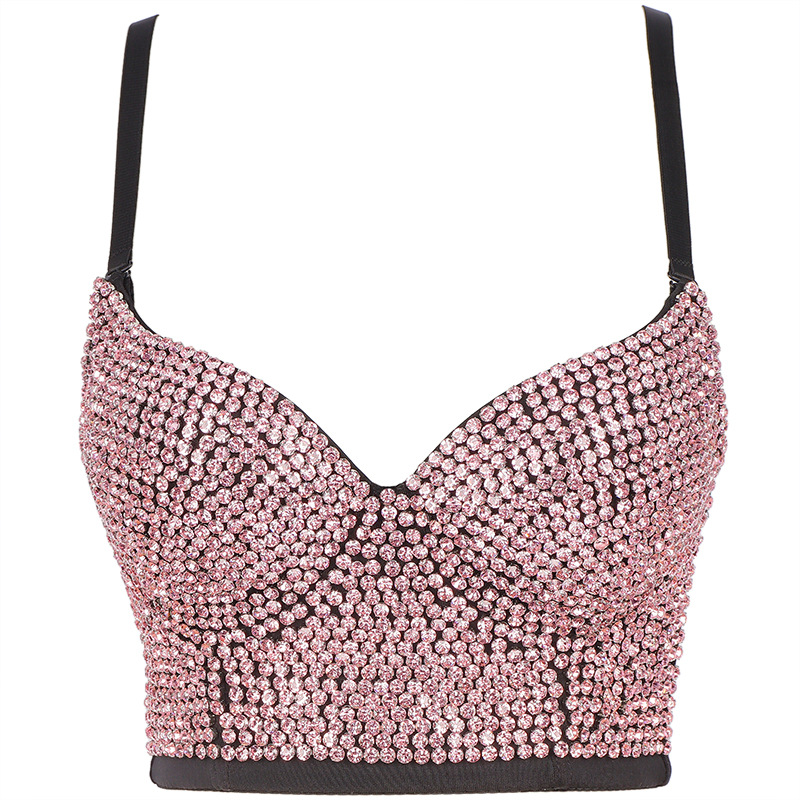 跨境货源钉珠文胸欧美时尚吊带背心外穿亮钻抹胸上衣美背胸衣批发