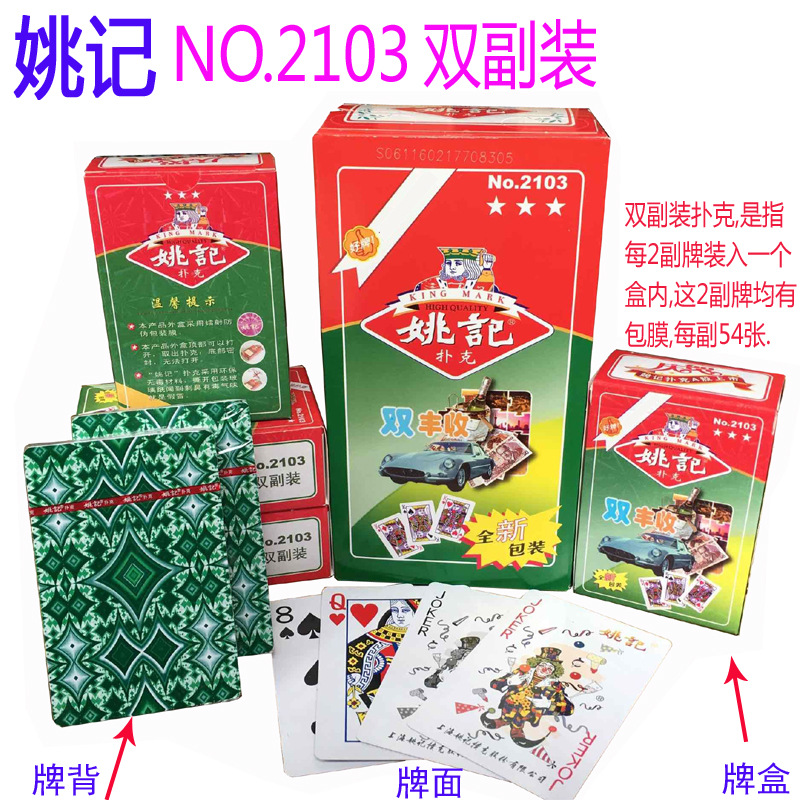 上海姚记扑克牌批发整箱双副装2103/986/茶馆纸牌正品双丰收