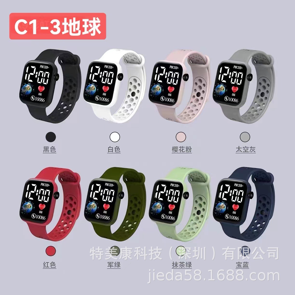 电子手表C1-3地球款网红时尚数字运动学生儿童LED电子手表