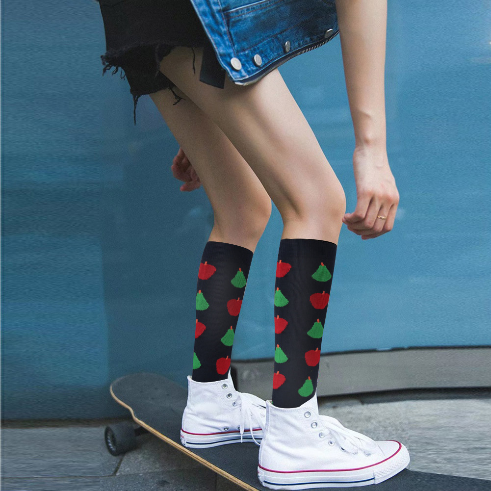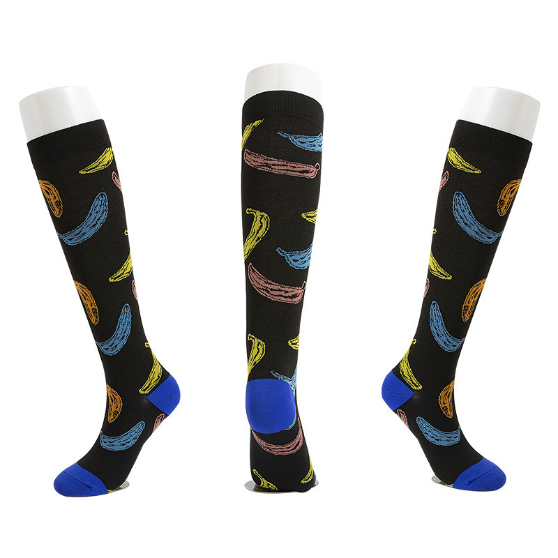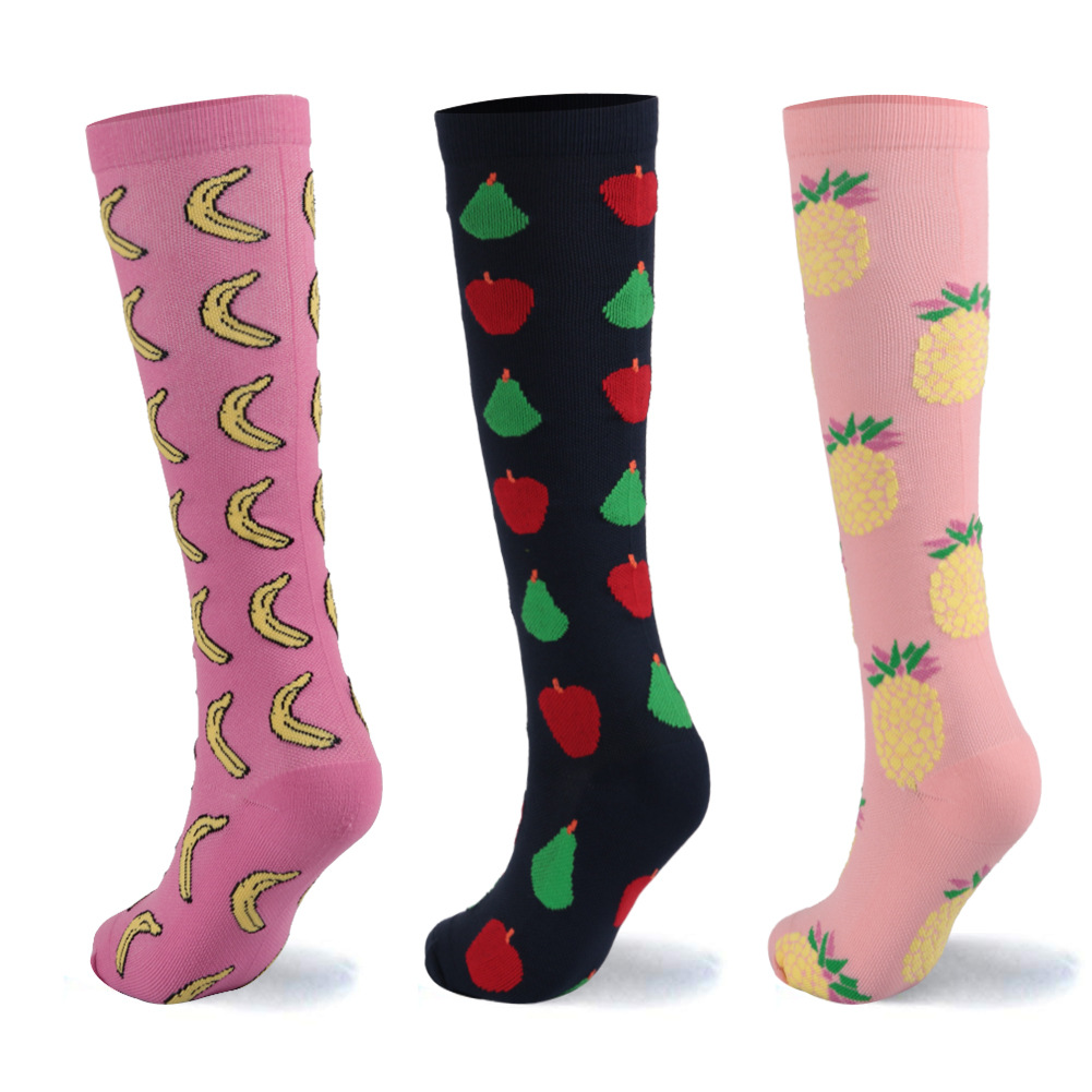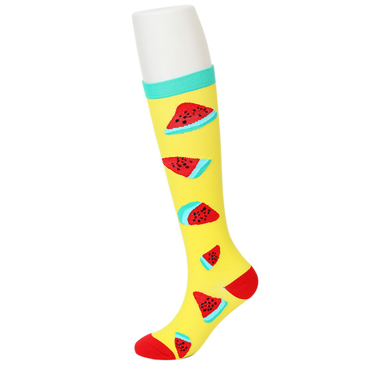 运动袜子提花压缩袜水果休闲小腿袜男女户外运动压力袜批发
