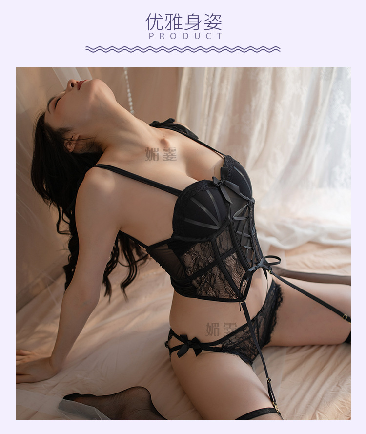 大码性感情趣内衣聚拢钢托带胸垫束身衣蕾丝修身马甲制服诱惑套装