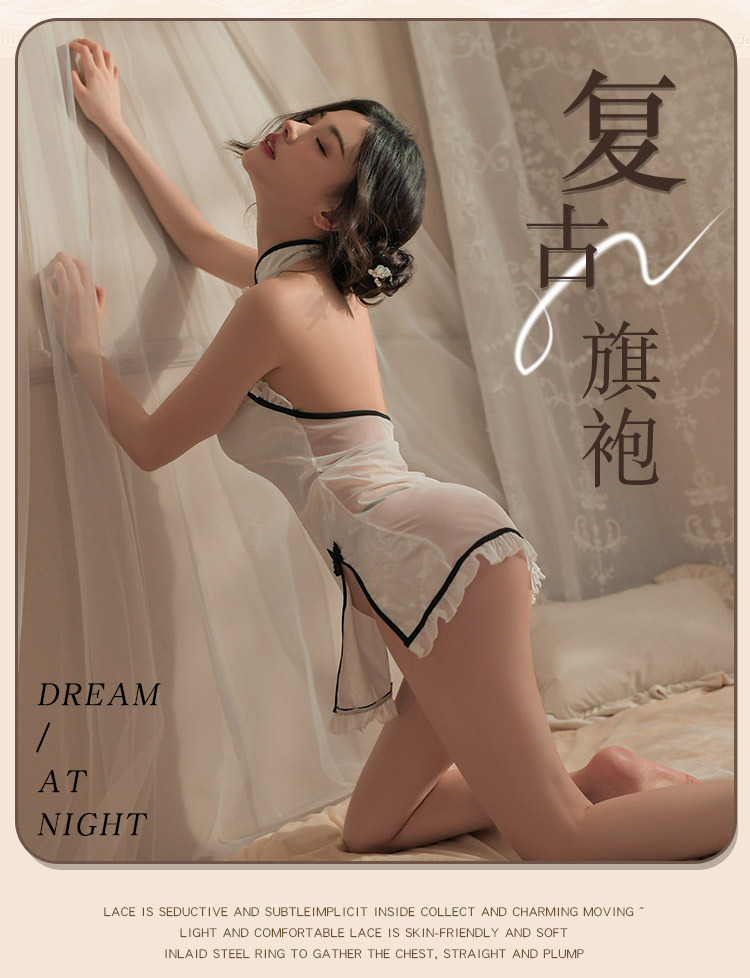 情趣内衣新款性感露背高开叉床上激情免脱透视蕾丝旗袍制服女