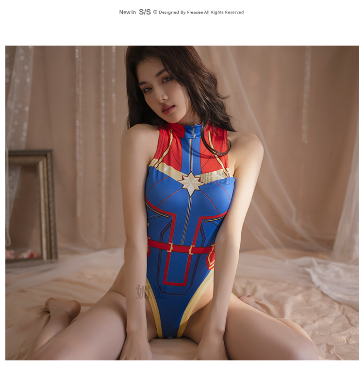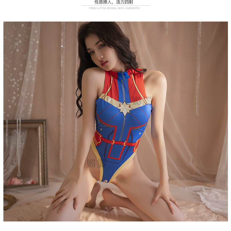 网红拍情趣内衣制服诱惑COSPALY二次元动漫高叉连体衣