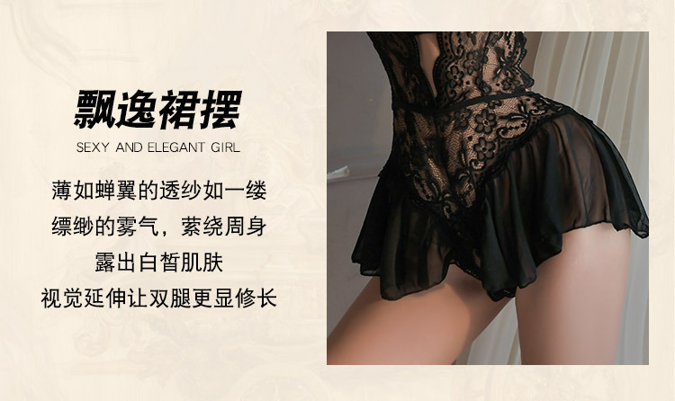 情趣蕾丝开档连体衣内衣性感女挂脖系带睡衣纯欲短裙免脱蕾丝透视