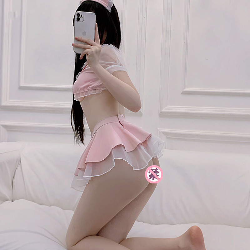 情趣内衣性感镂空露诱惑护士装超短百褶裙床上制服骚套装