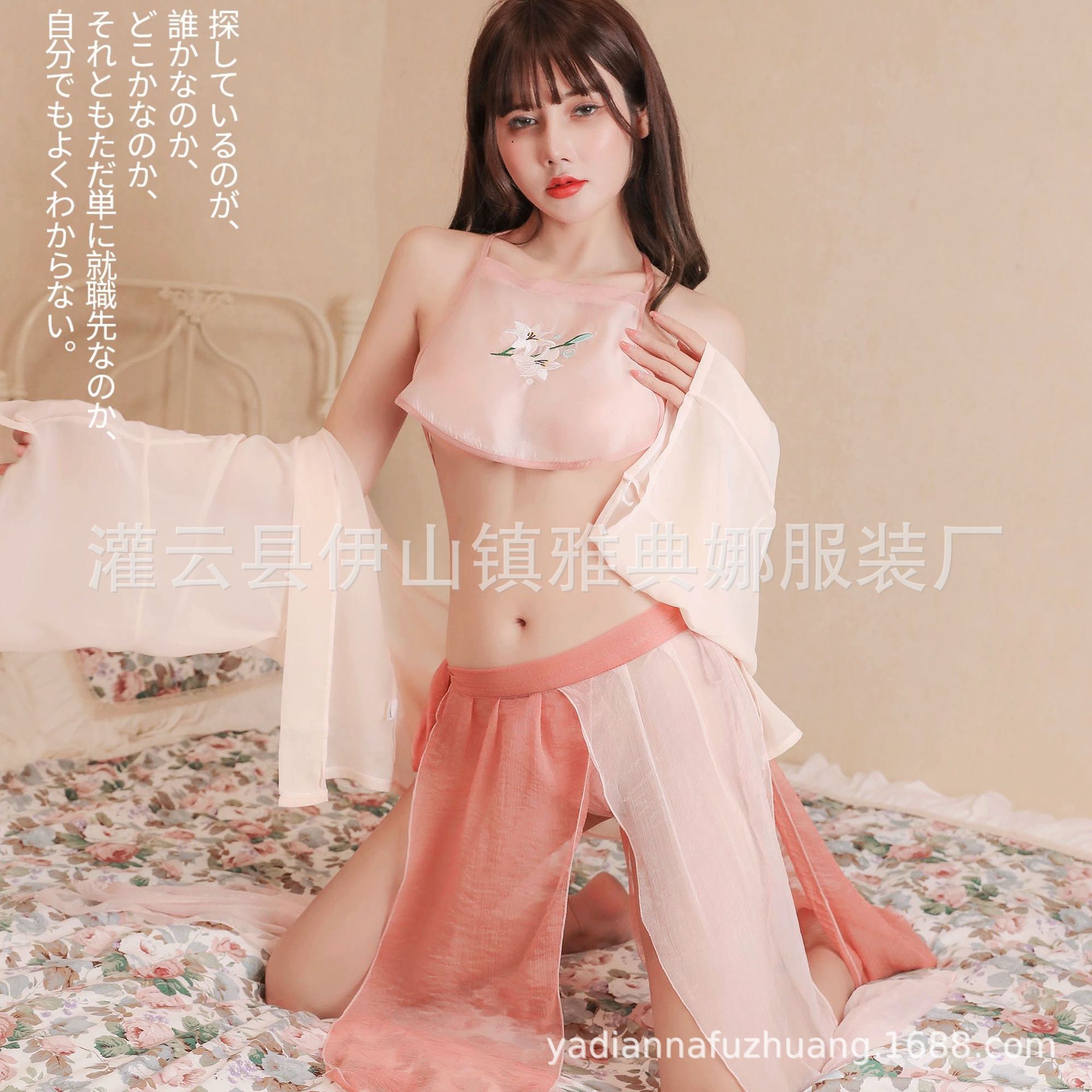 情趣内衣性感肚兜网纱透视诱惑开叉长裙汉服制服套装代发