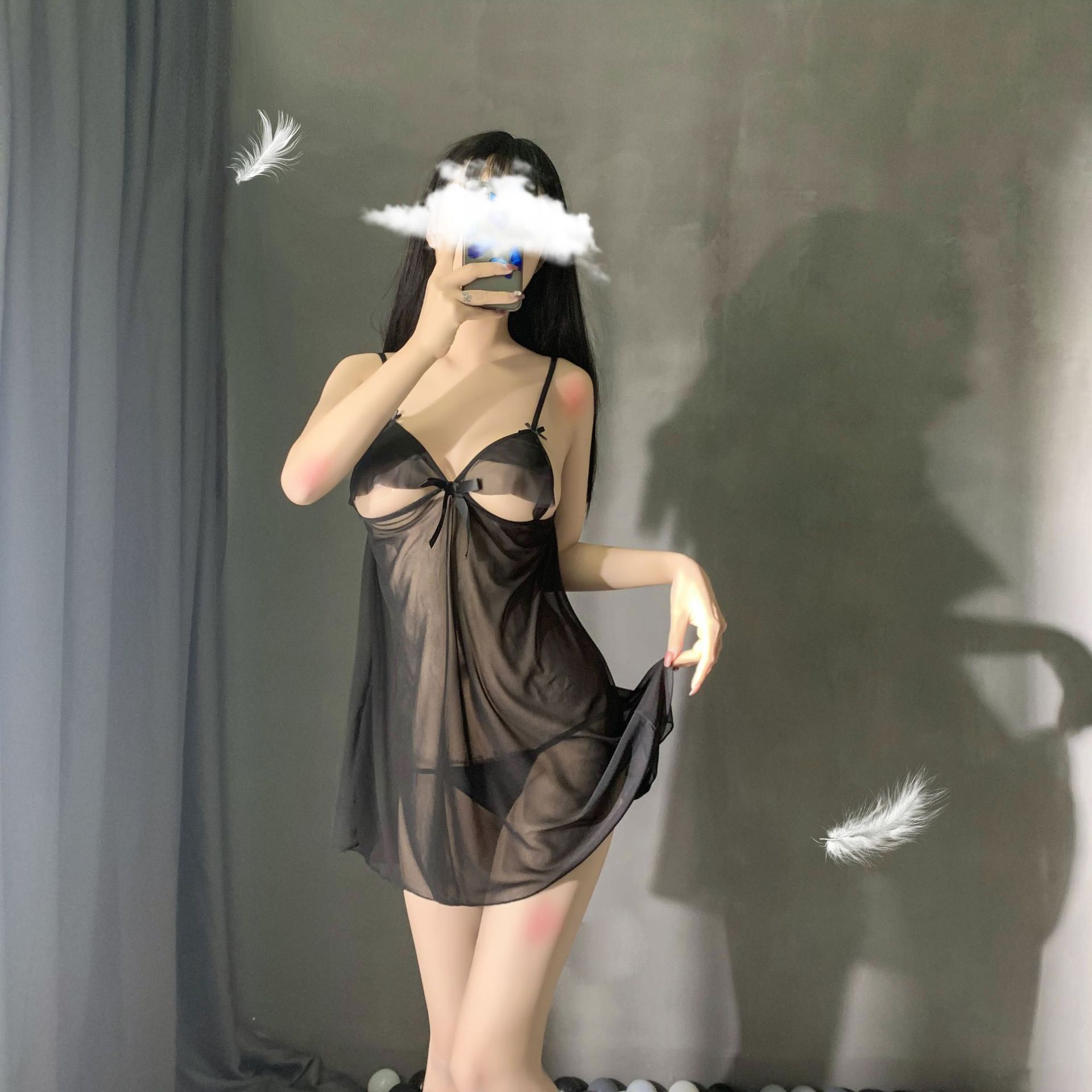 情趣内衣女式吊带睡裙大码系带性感睡衣网纱透视诱惑套装