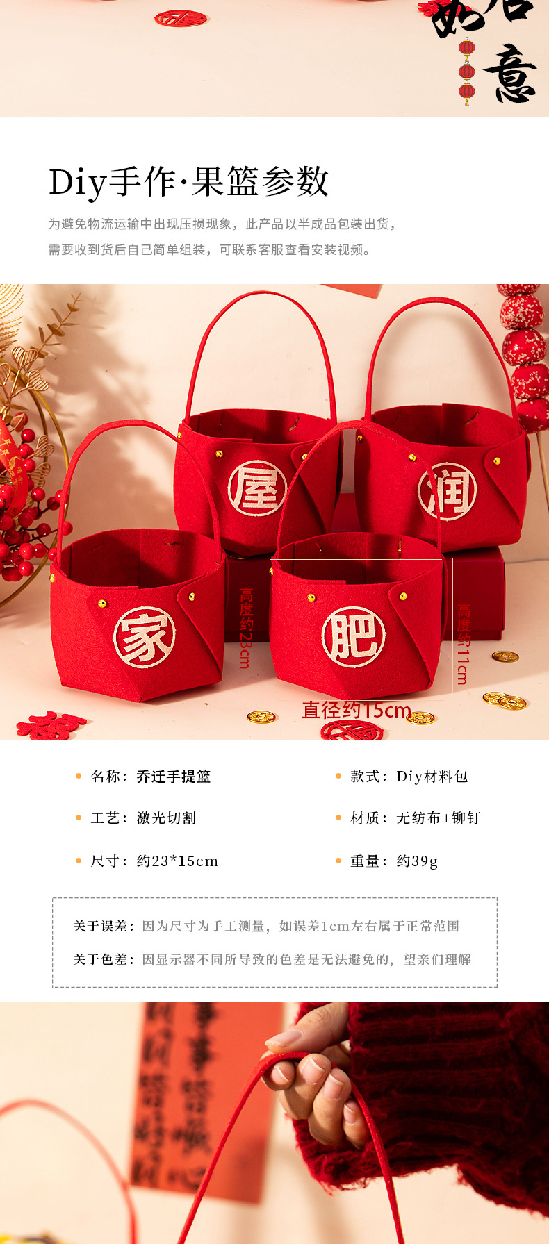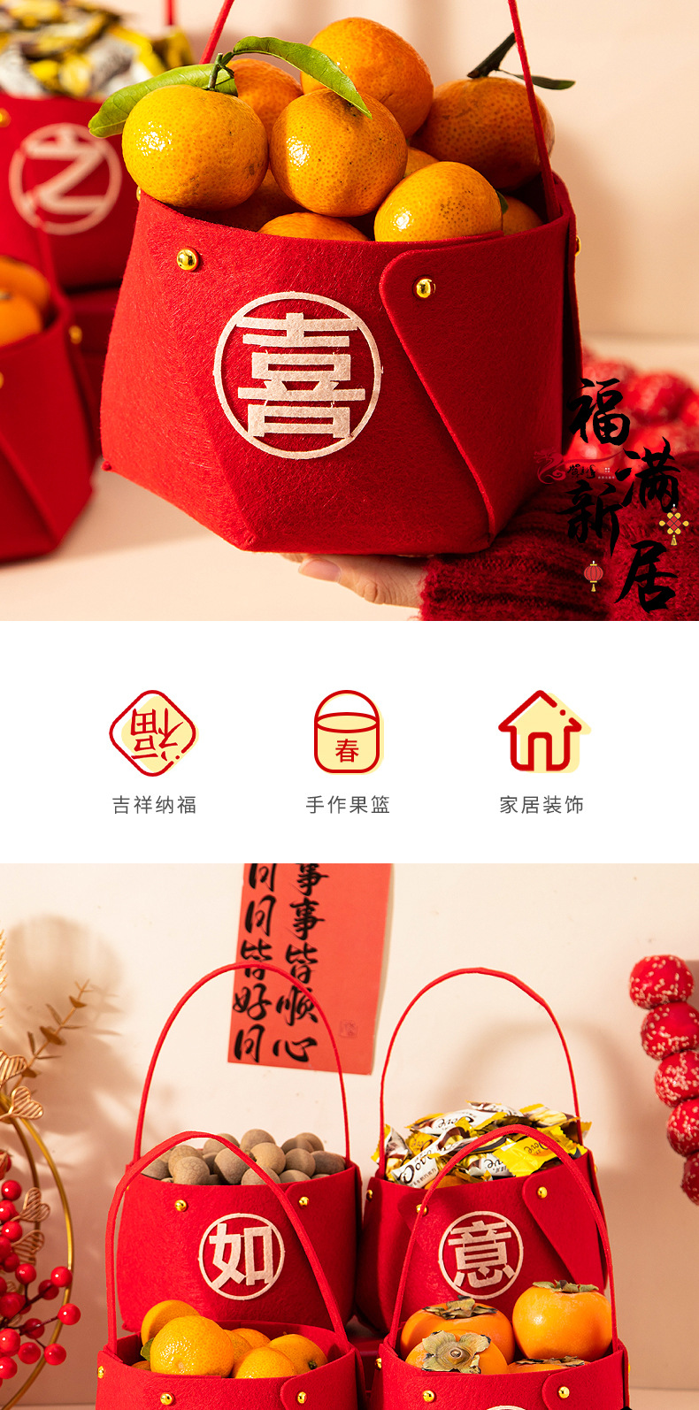 乔迁之喜新居小提篮礼品搬家新房子入宅布置装饰用品入伙仪式摆件