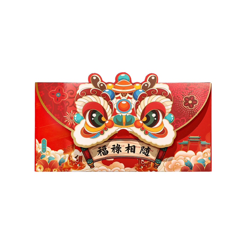 龙年红包国潮醒狮个性卡通烫金红包袋创意春节利是封新年红包批发