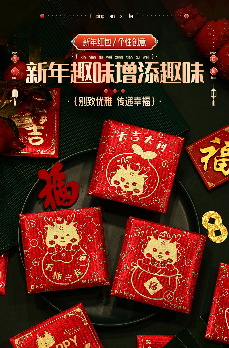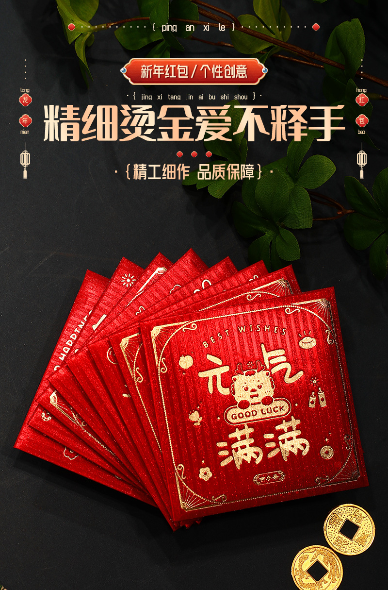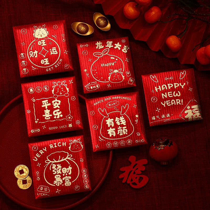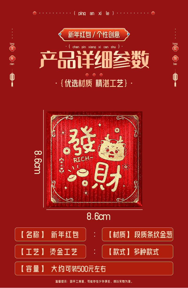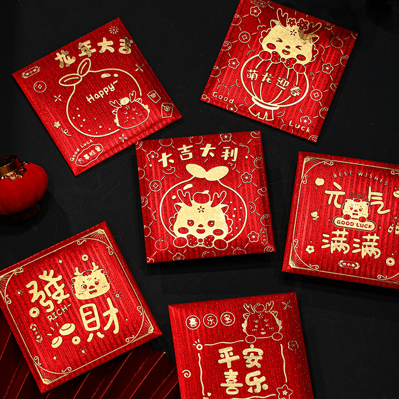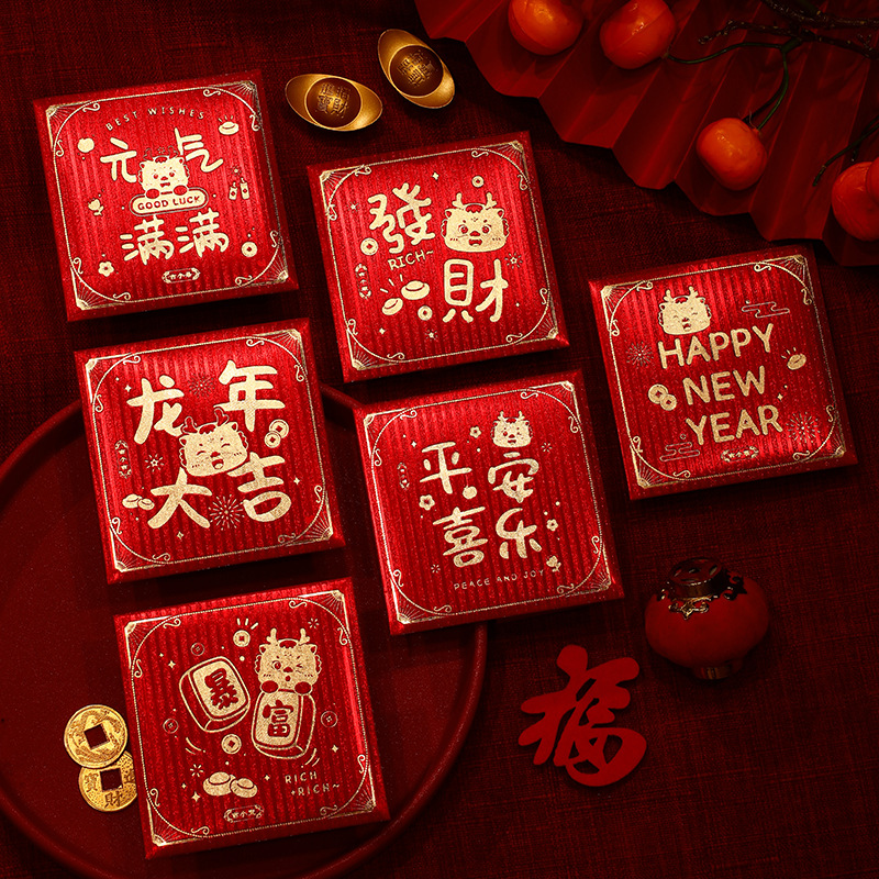 烫金小红包龙年红包创意新年红包压岁包卡通红包批发方形利是封