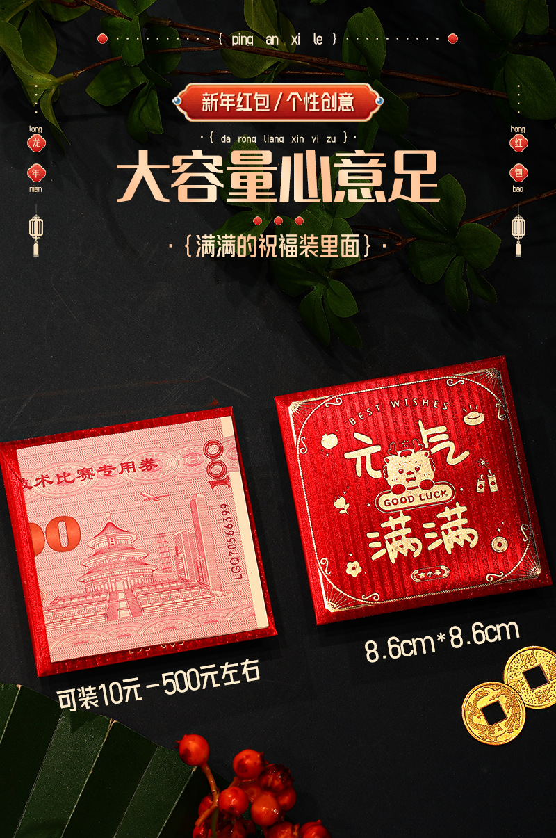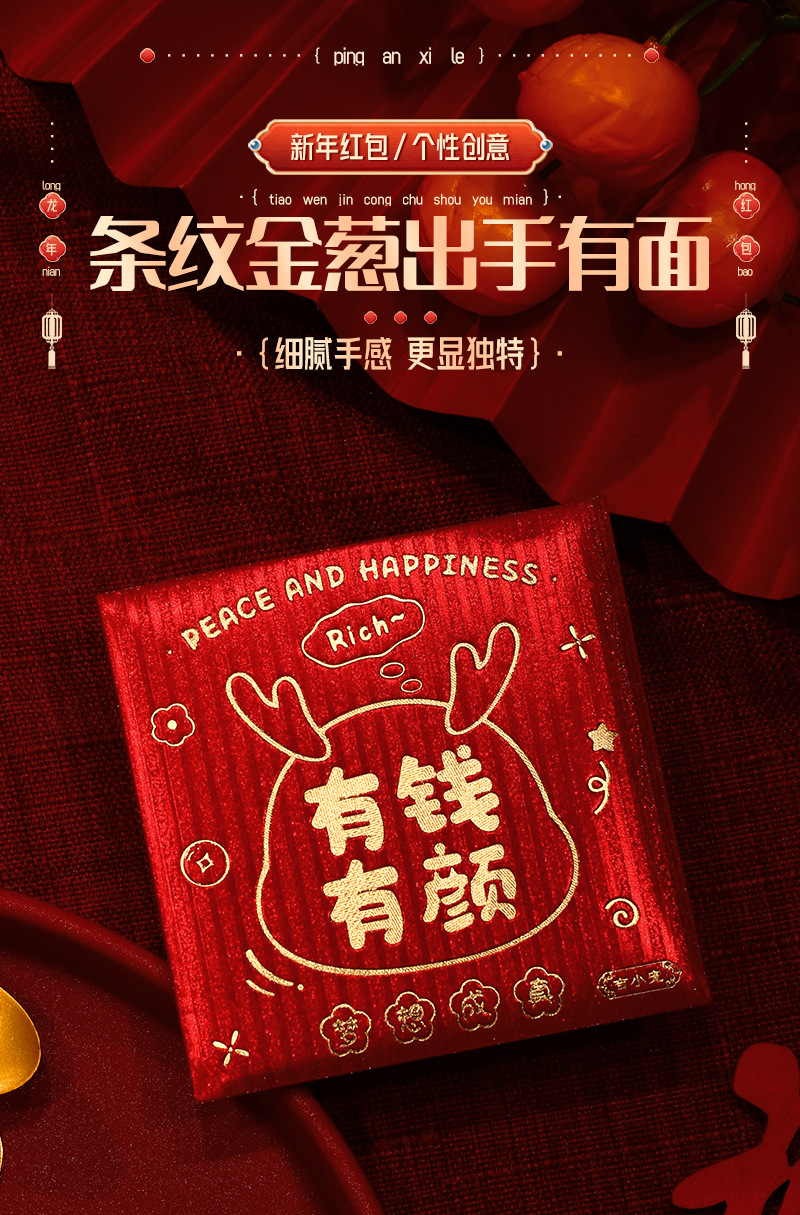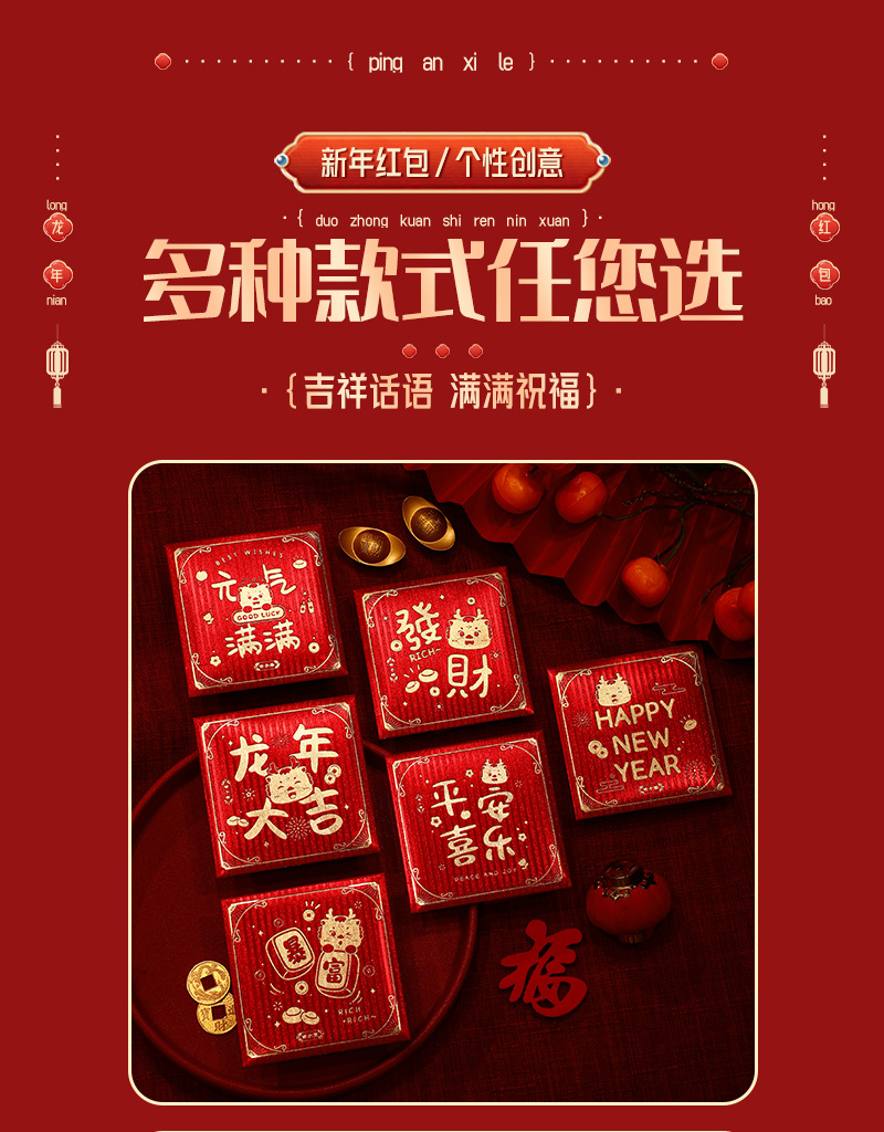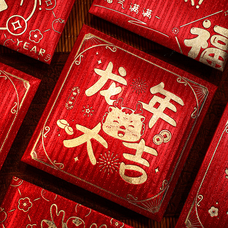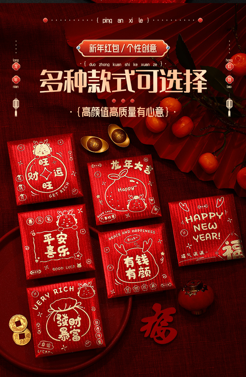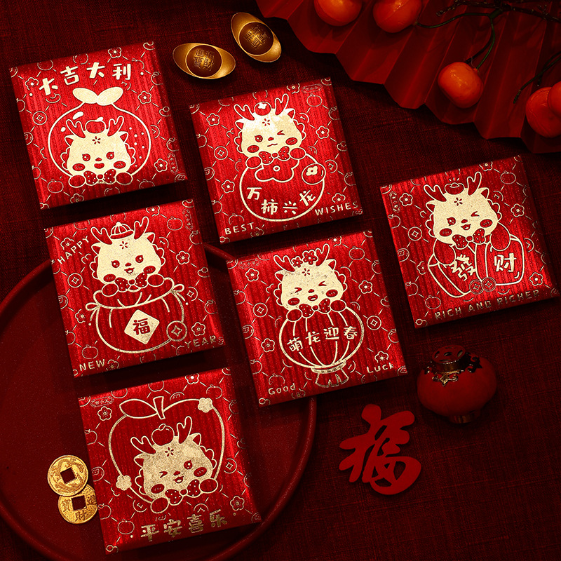 烫金小红包龙年红包创意新年红包压岁包卡通红包批发方形利是封