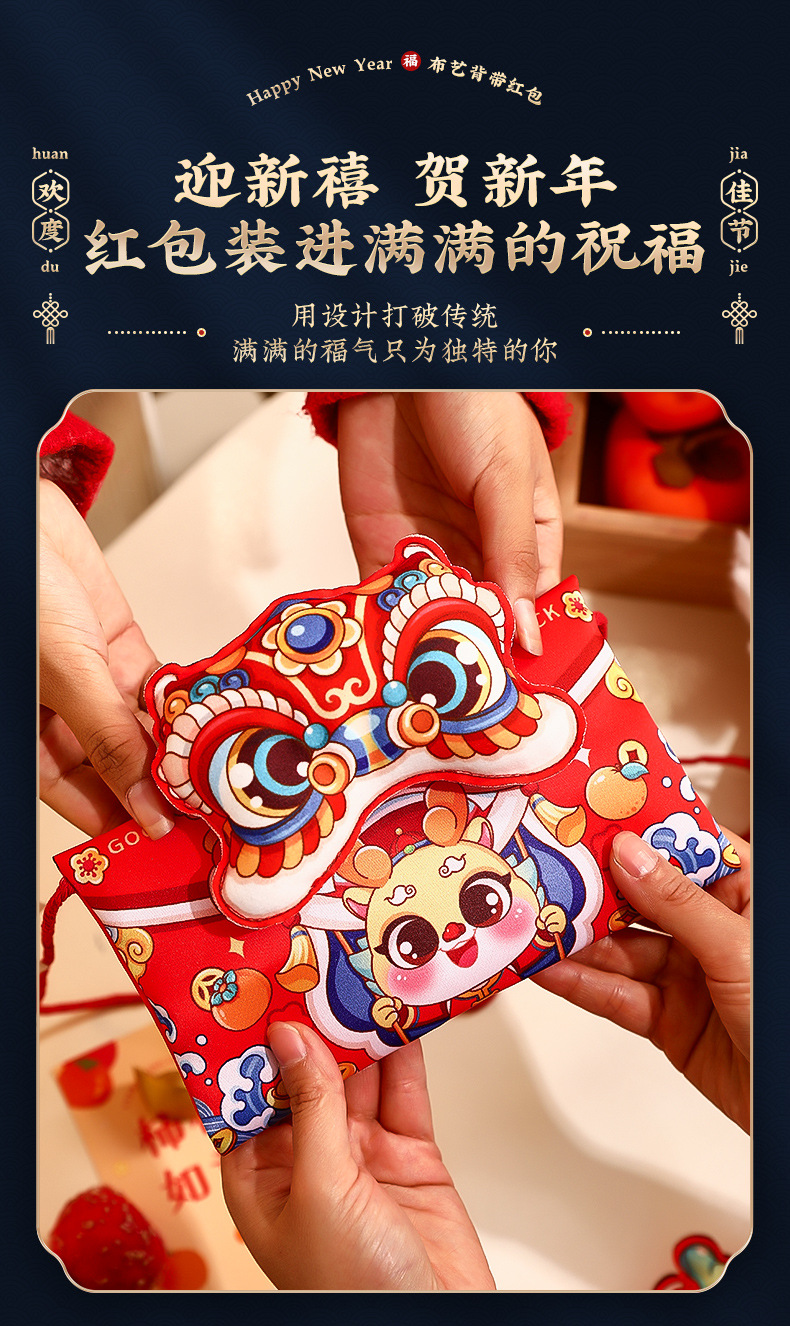 | dragon year cartoon cloth red envelope [pinch will ring]](龙年卡通布艺红包【捏捏会响】) | USD $1.3 | 6742 piece available |