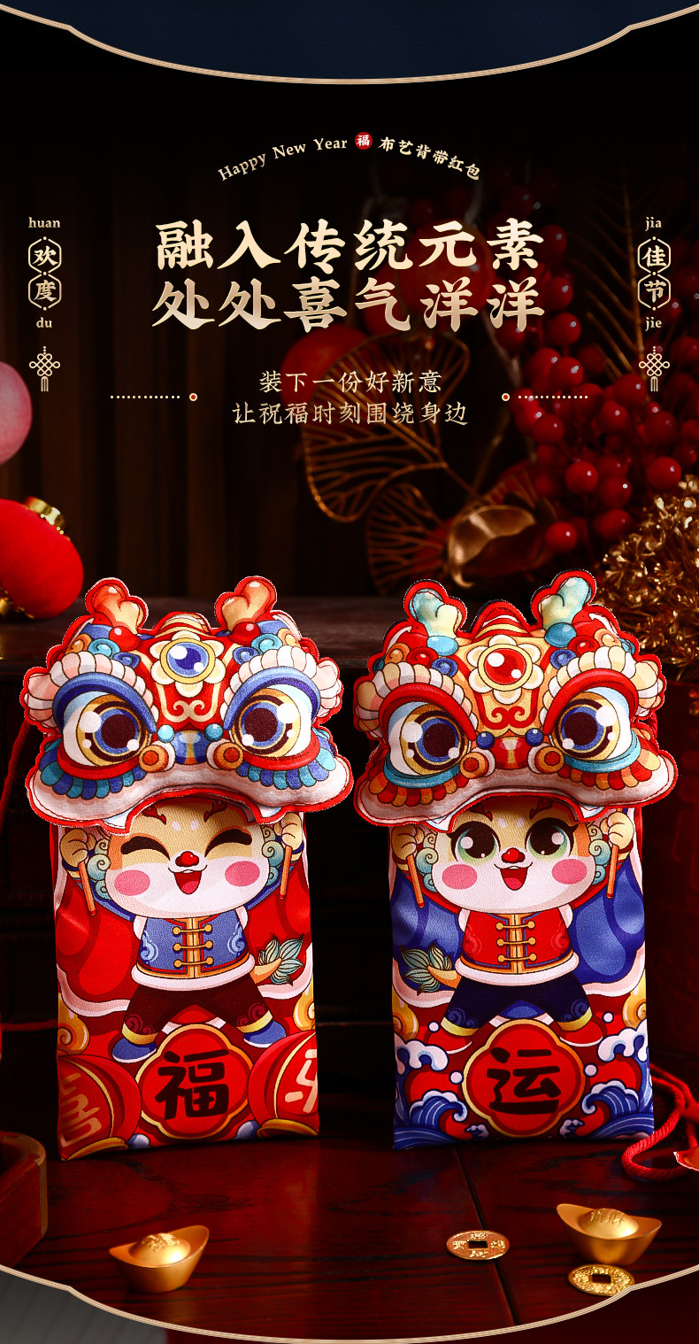 2024龙年新款过年布艺红包袋批发创意春节新年儿童压岁钱包利是封