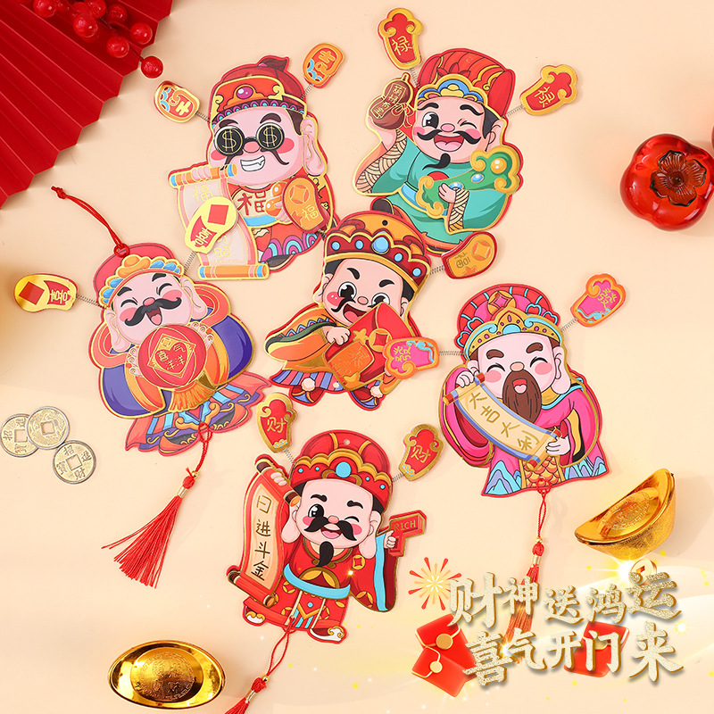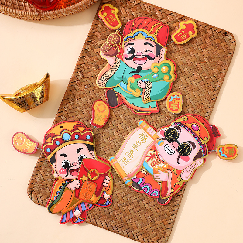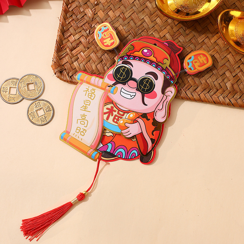 龙年新款喜庆国潮卡通摇头财神红包磁吸冰箱贴车载绿植挂件挂饰