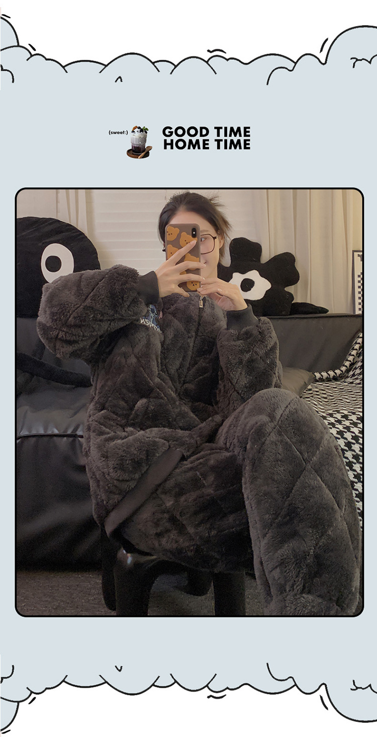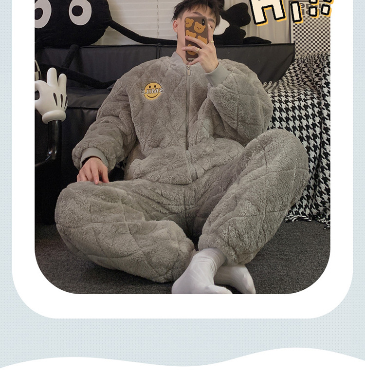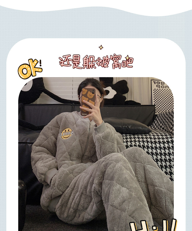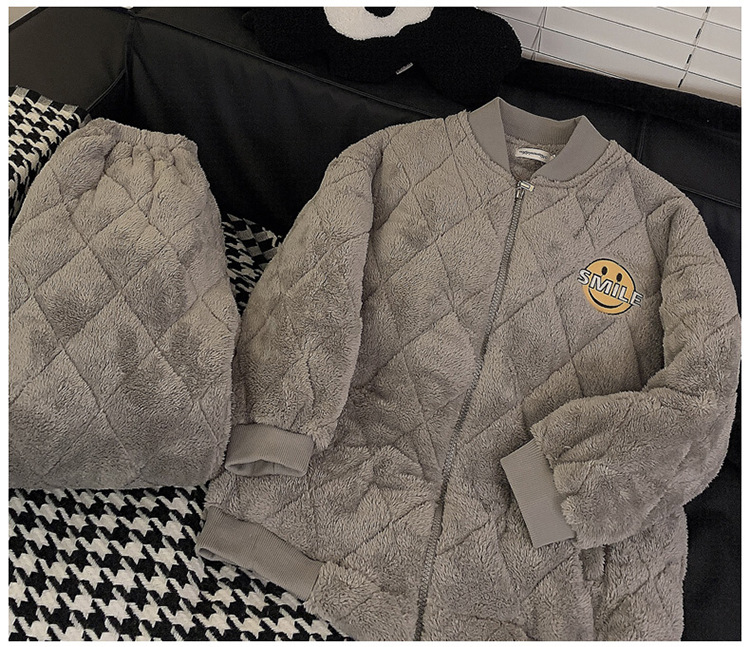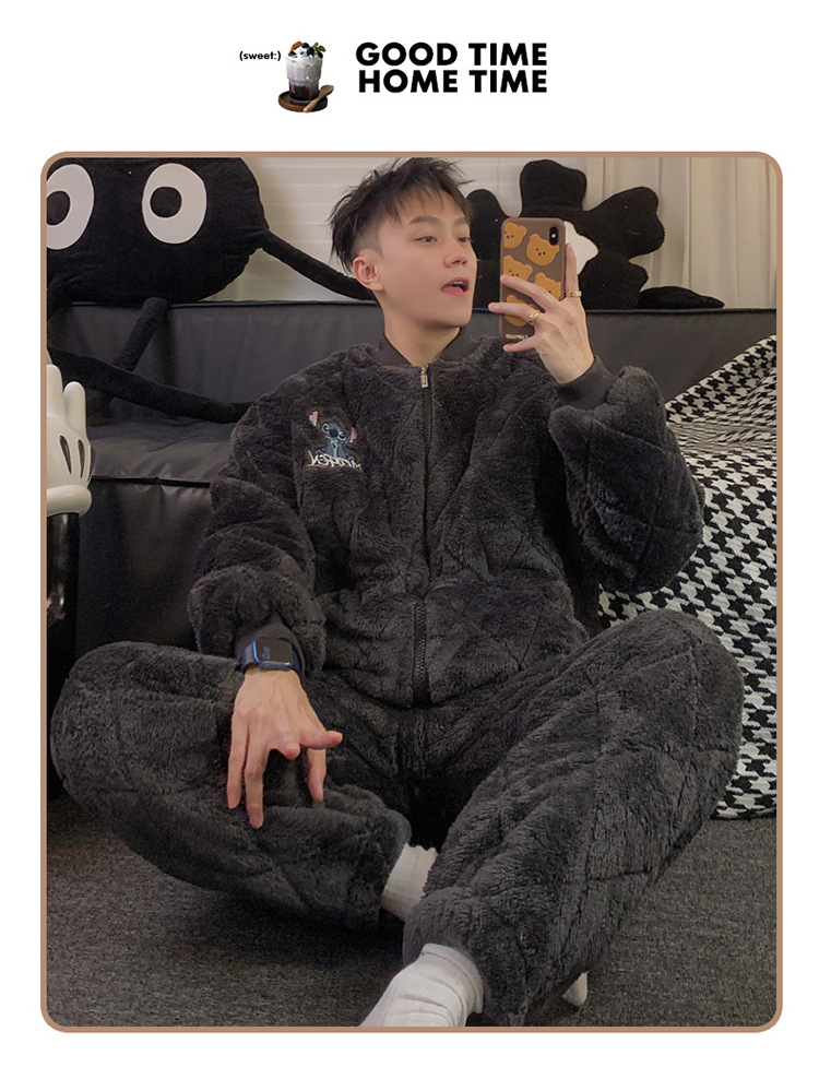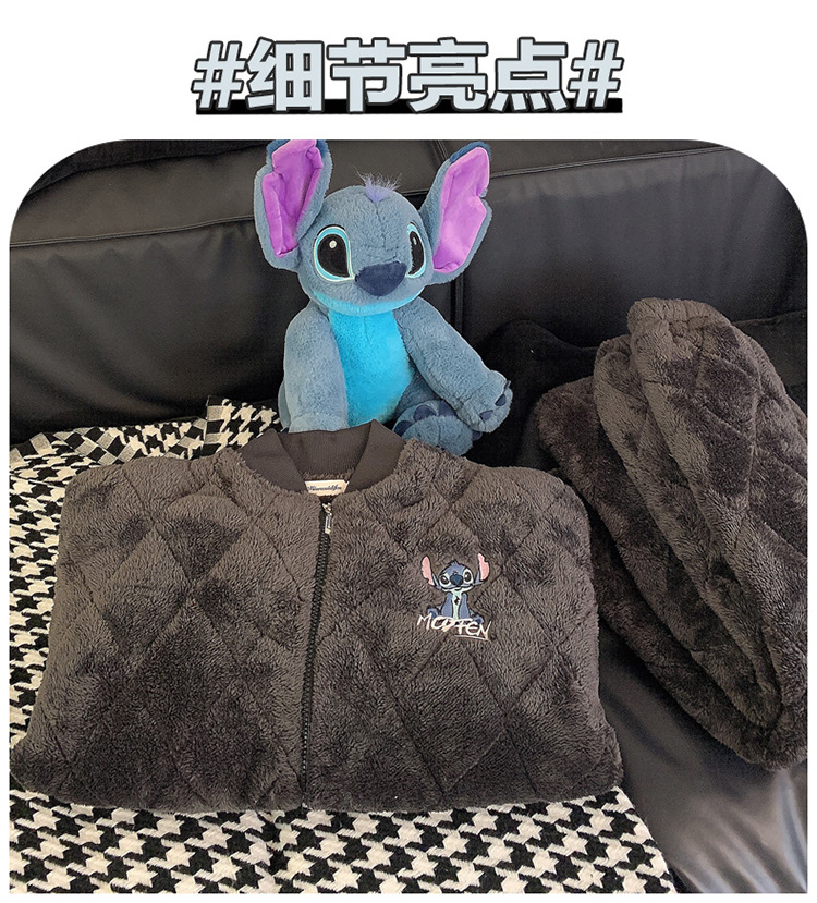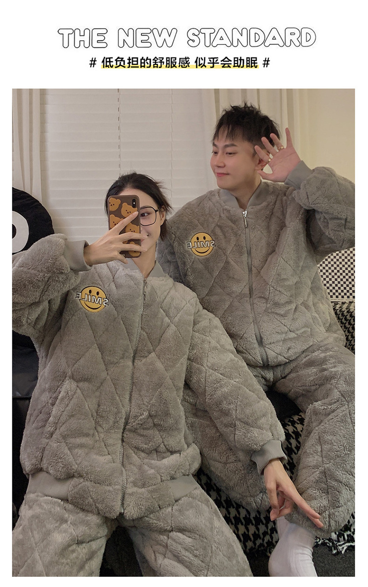 珊瑚绒情侣睡衣女秋冬季三层夹棉加绒加厚卡通ins男士家居服套装
