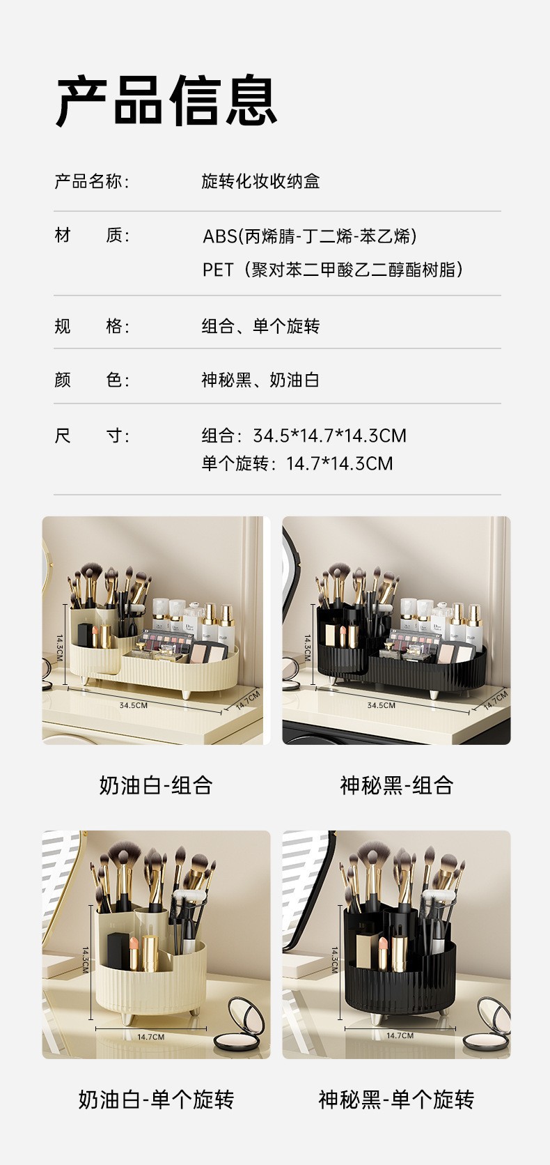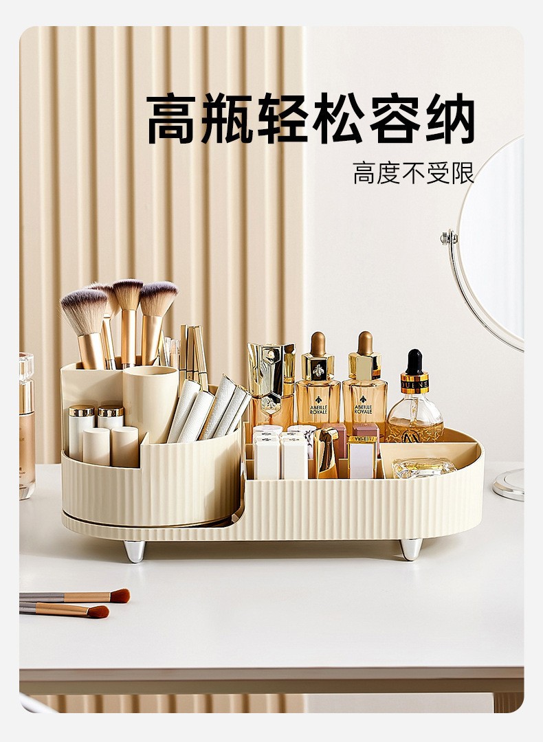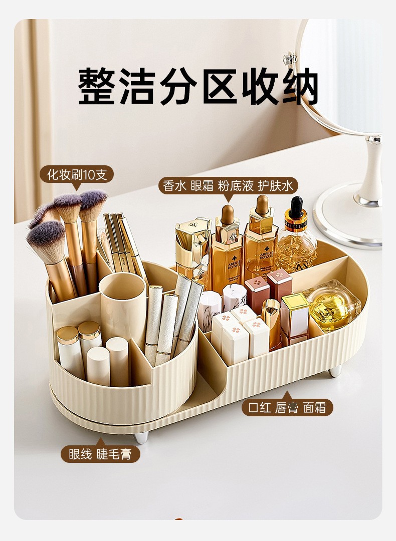 免打孔化妆品护肤品化妆刷桌面分格大容量置物架旋转化妆收纳盒