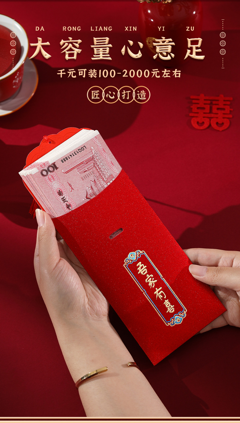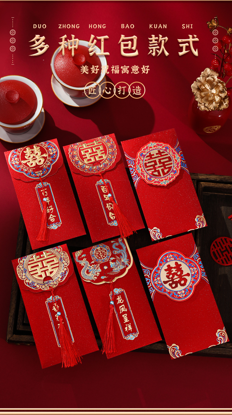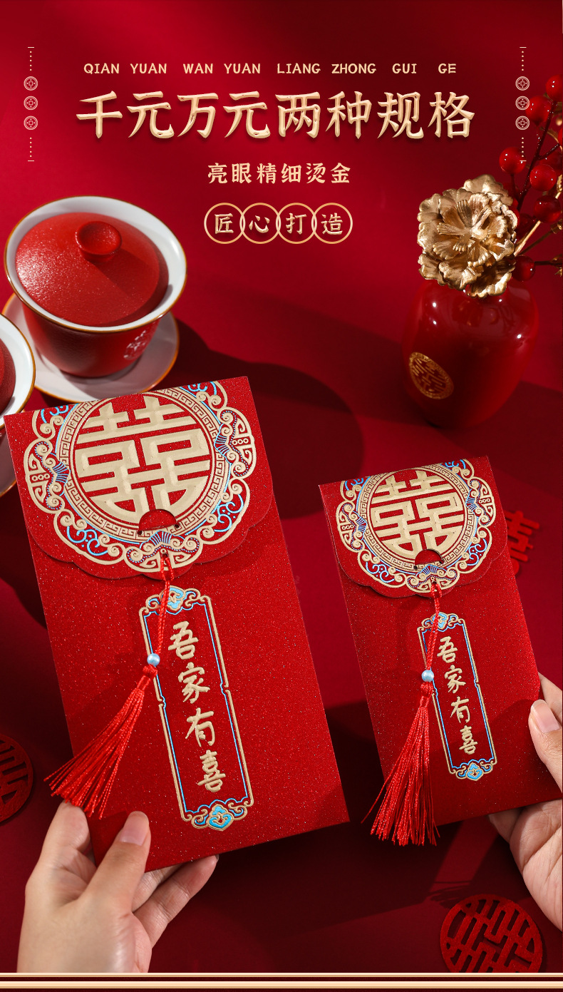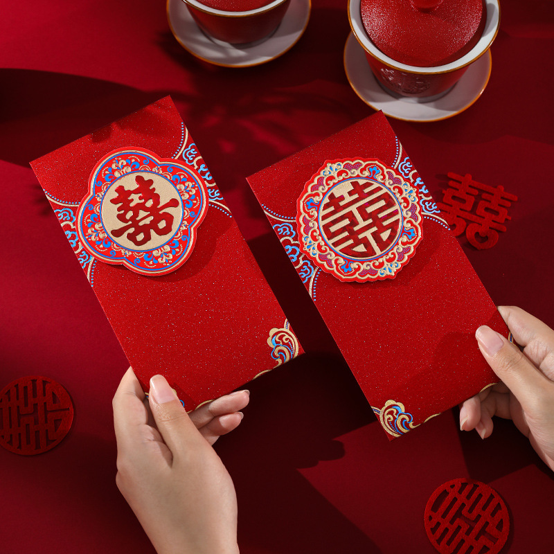 新款结婚改口万元红包婚庆婚礼烫金红包创意立体贴片红包批发