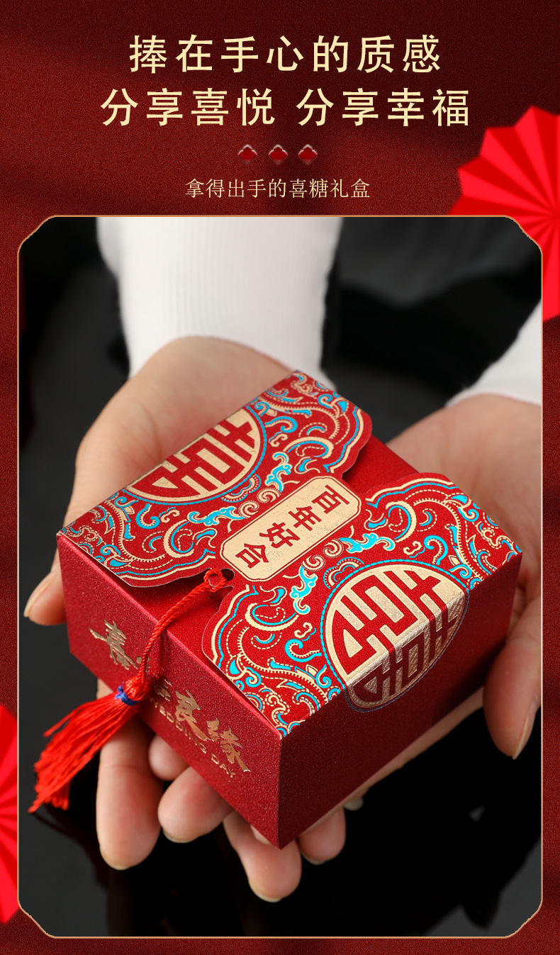 新款婚庆中式喜糖盒结婚糖盒中国风糖果盒婚礼方形手提糖果盒空盒